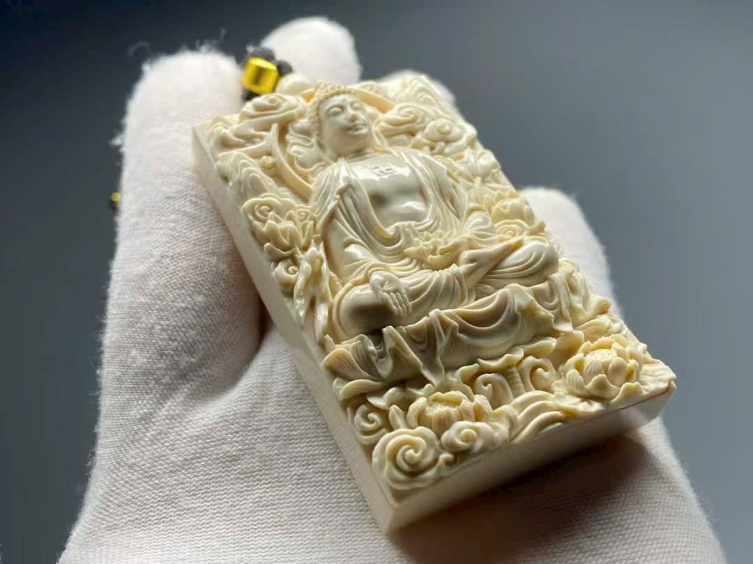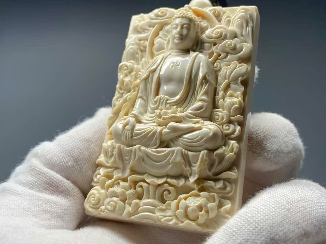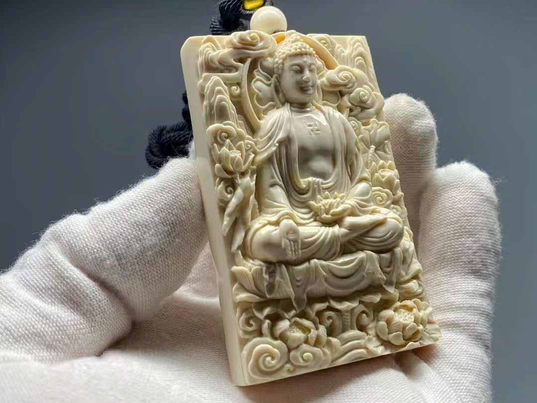 Hình tượng Đức A Di Đà trang nghiêm uy nghi, tỏa ra hào quang từ bi. Y phục Phật buông nhẹ ôm dáng, thân thái nhu hòa thanh nhã. Ngài ngồi kết già trên tòa sen, chân trần an nhiên, thể hiện trọn vẹn vẻ đẹp thuần tịnh và thiền ý.
