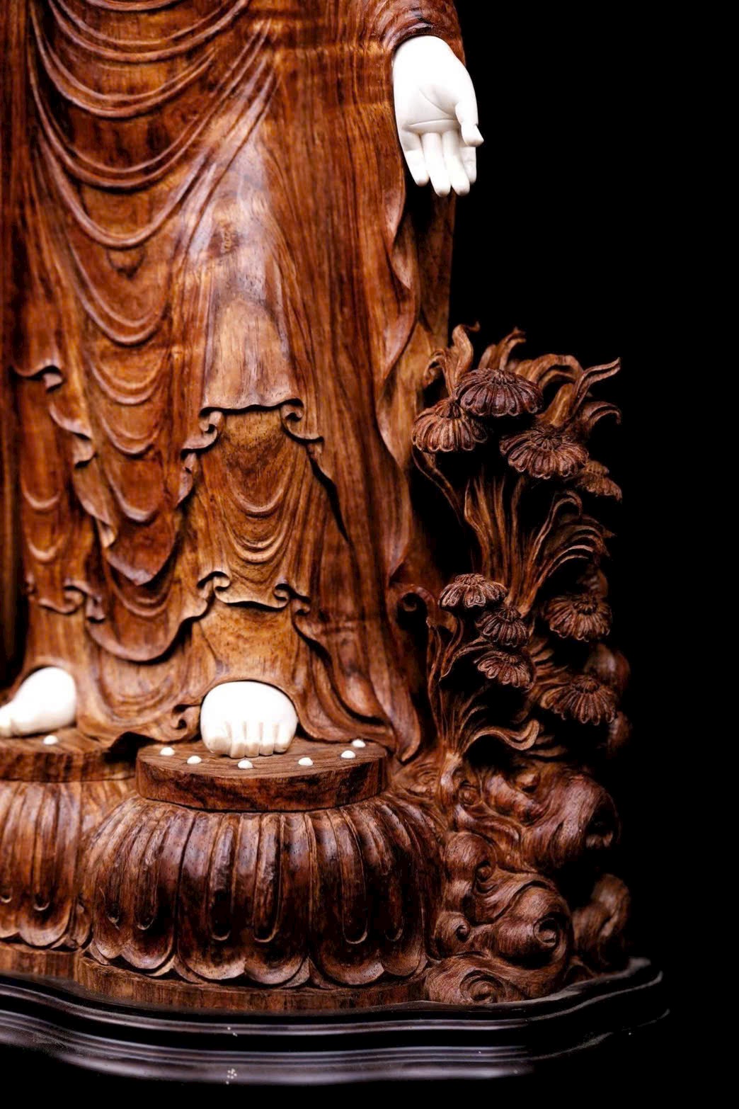 Tượng được chế tác từ khối gỗ nguyên, cắt tỉa tinh xảo.