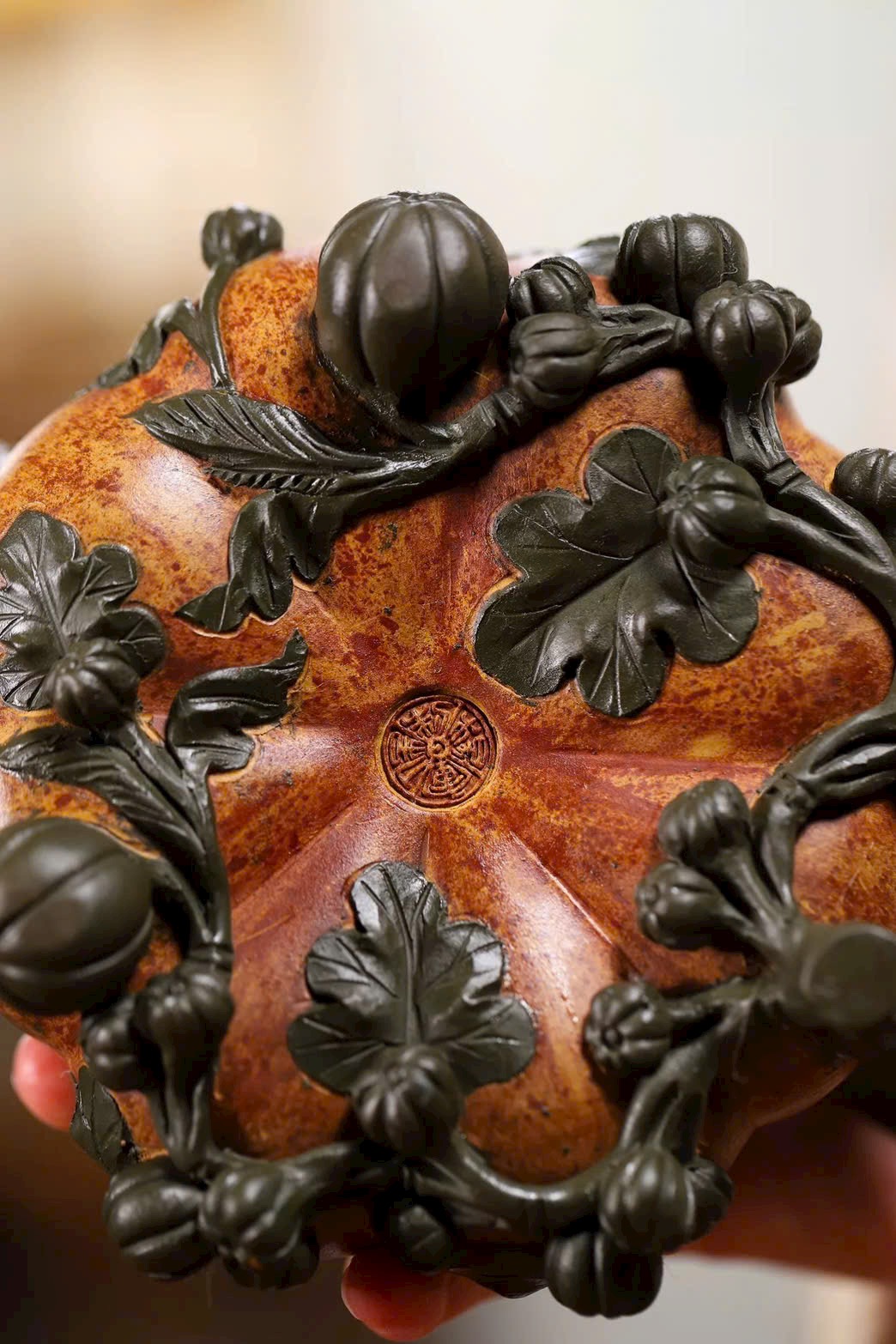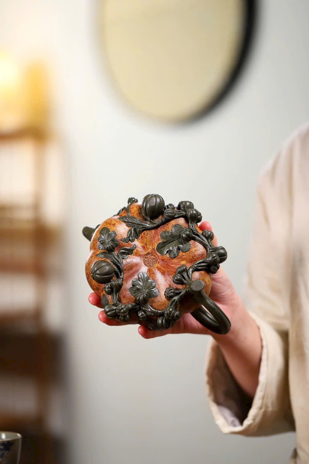 Ấm bí ngô “Đa tử đa phúc” – hiệu ứng màu thủy mặc chuyển sắc