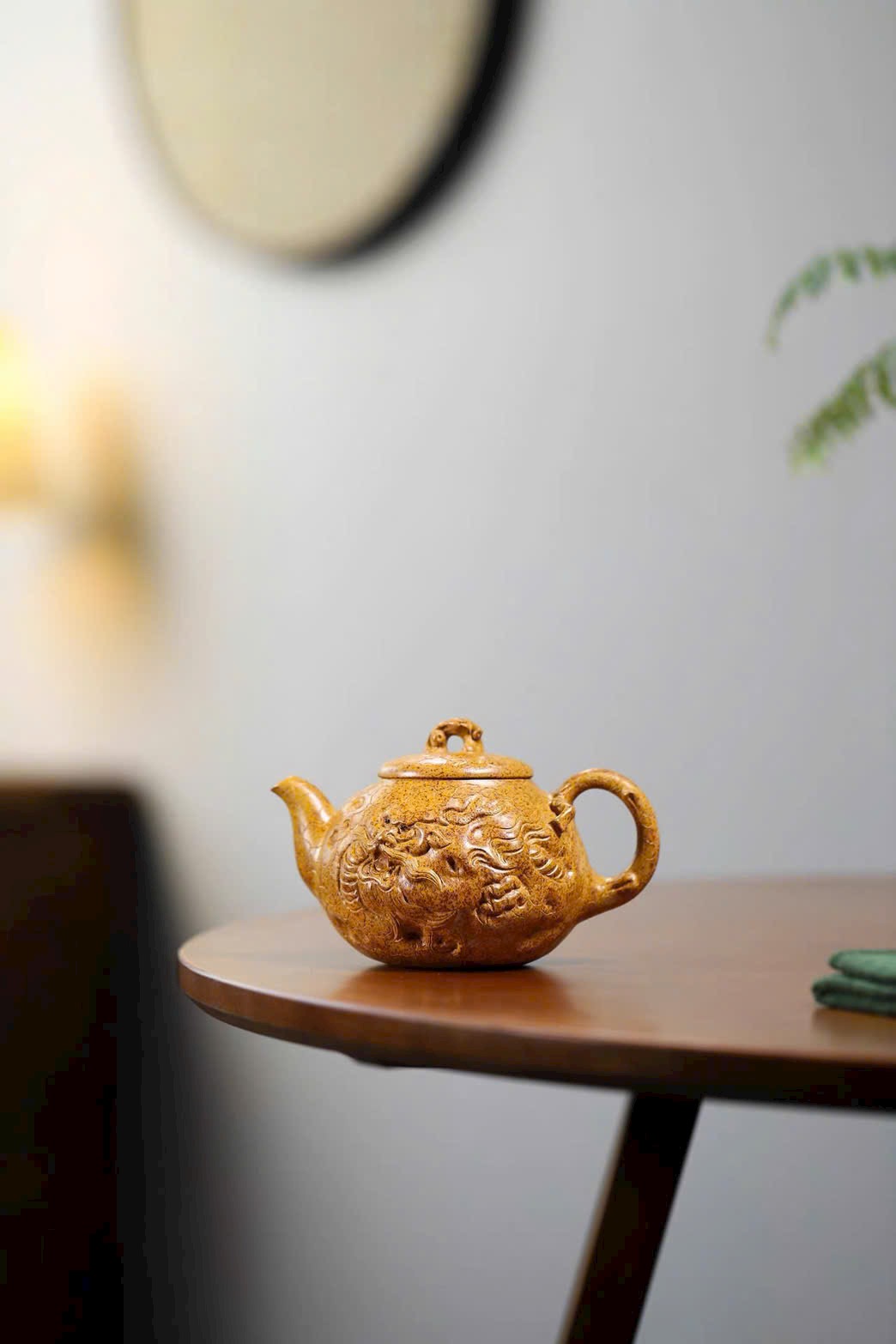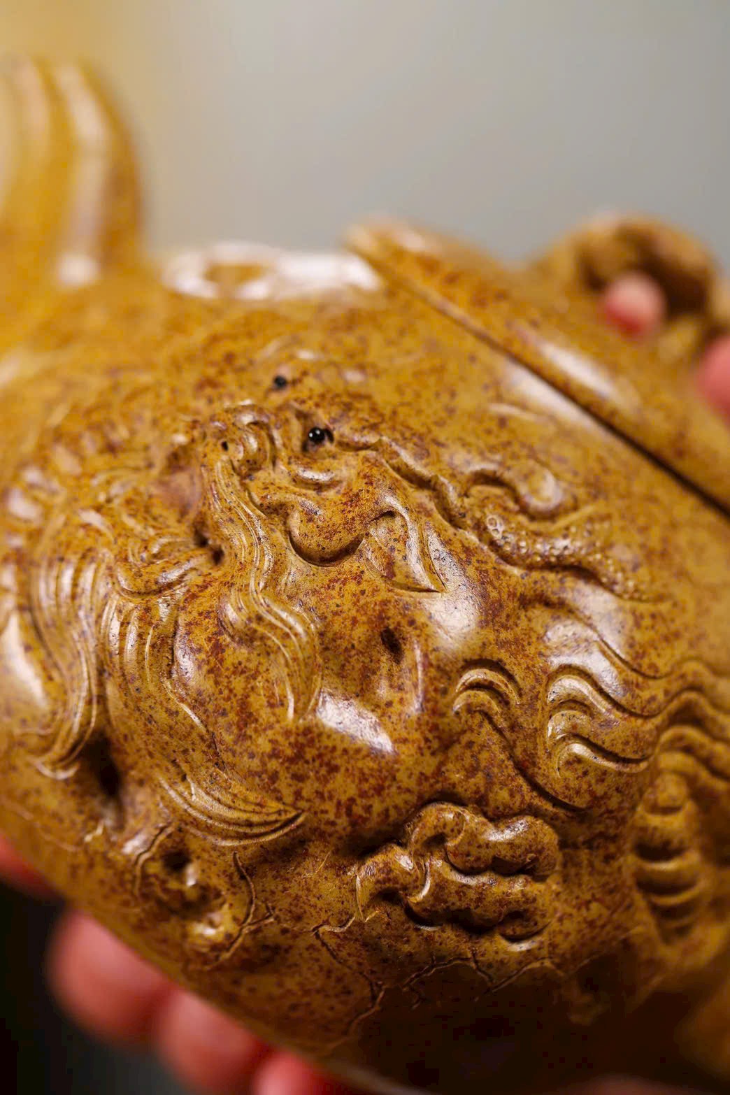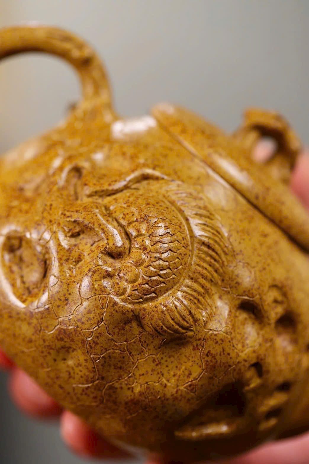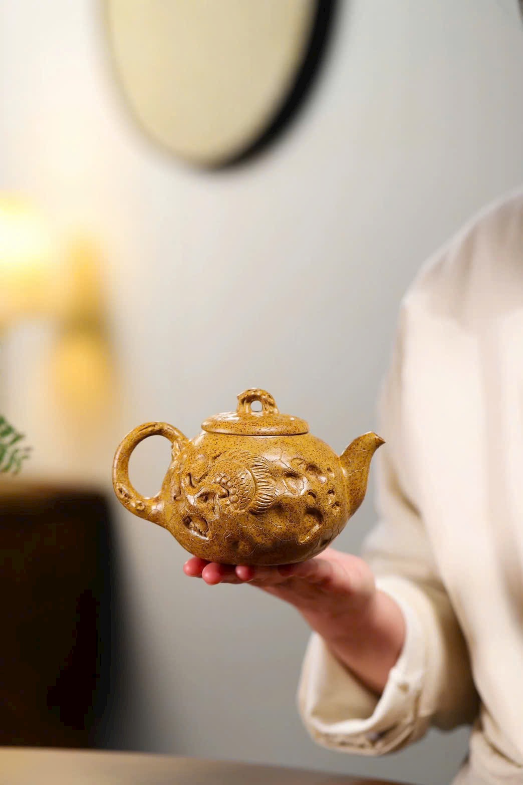 Thân ấm có hình rồng ẩn hiện, tạo nên nét đặc sắc riêng, là một mẫu ấm rất đáng chú ý.
