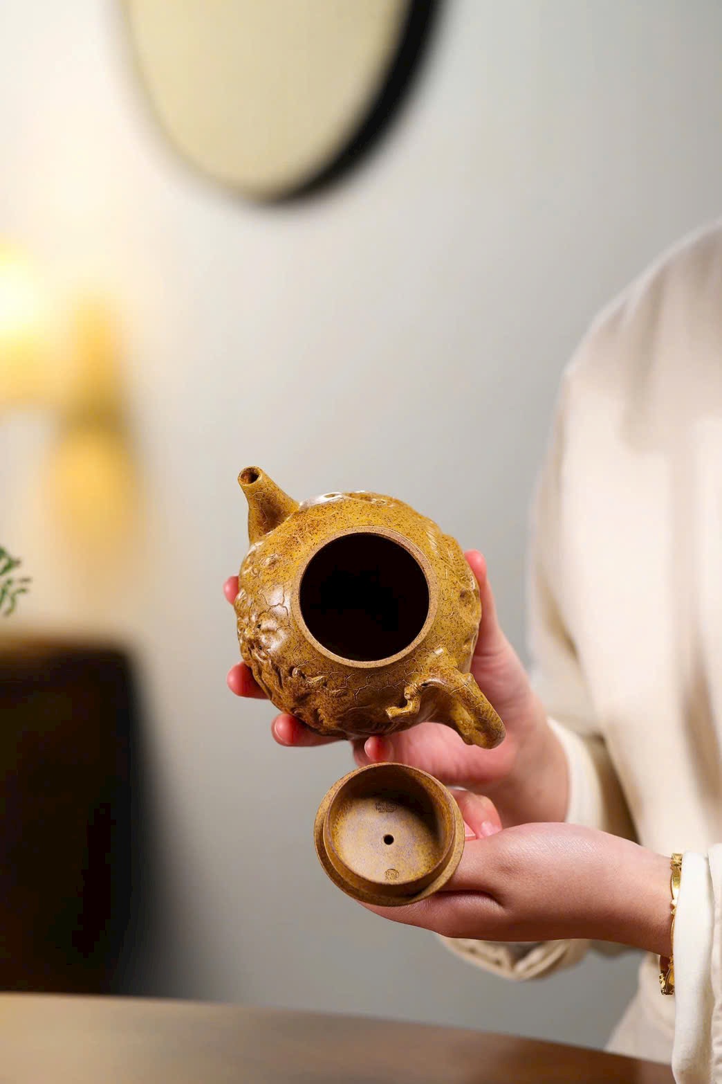 Ấm được chế tác hoàn toàn thủ công, đi kèm chứng thư, túi gấm và hộp gấm, hoàn thiện tinh xảo.