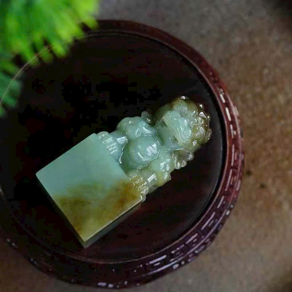 Ấn chương chế tác từ ngọc Hòa Điền tự nhiên, sắc ngọc ấm mượt, độ dầu cao.