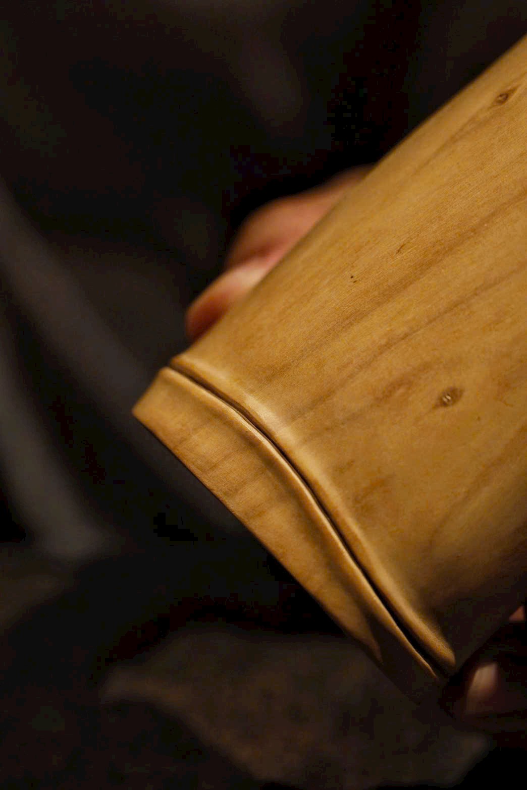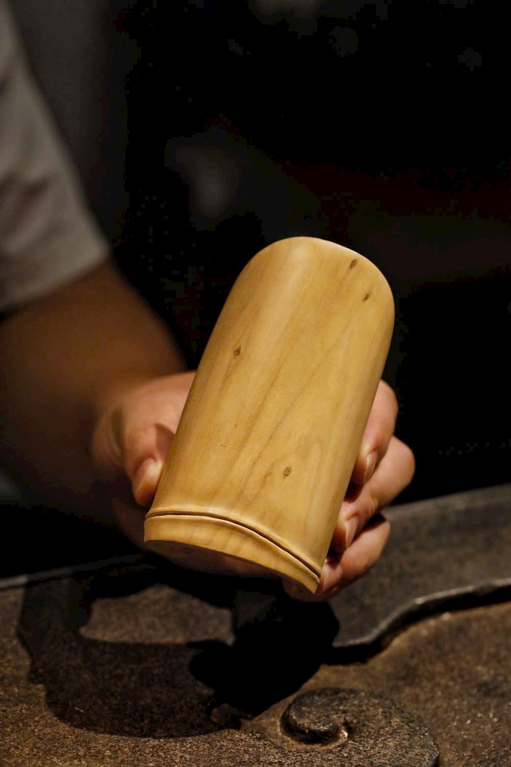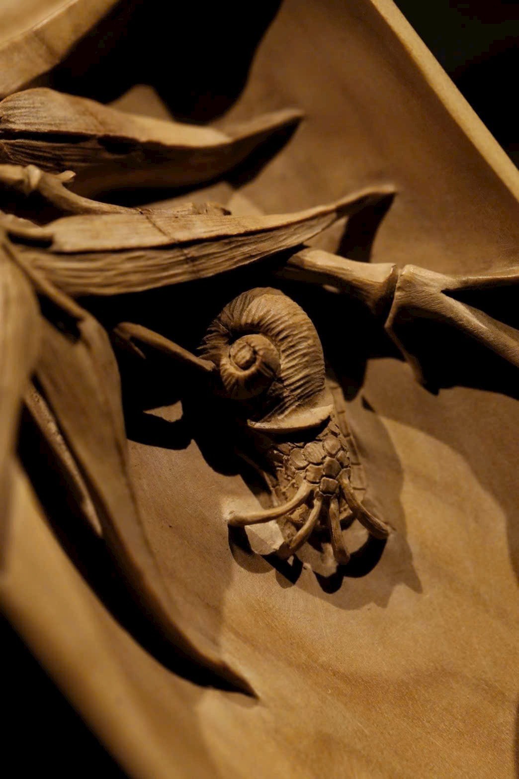Trà tắc được chạm khắc tinh xảo, tạo hình cành trúc vươn dài, chú ốc nhỏ an cư trên đó, đường dao tỉ mỉ tinh vi. Khi lấy trà, hương gỗ quyện cùng hương trà, là món trà cụ nhỏ bé mà thanh nhã, gợi nên phong vị tao nhã trong nghệ sự thưởng trà.