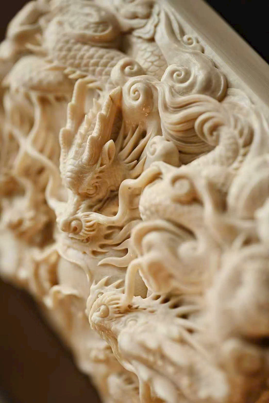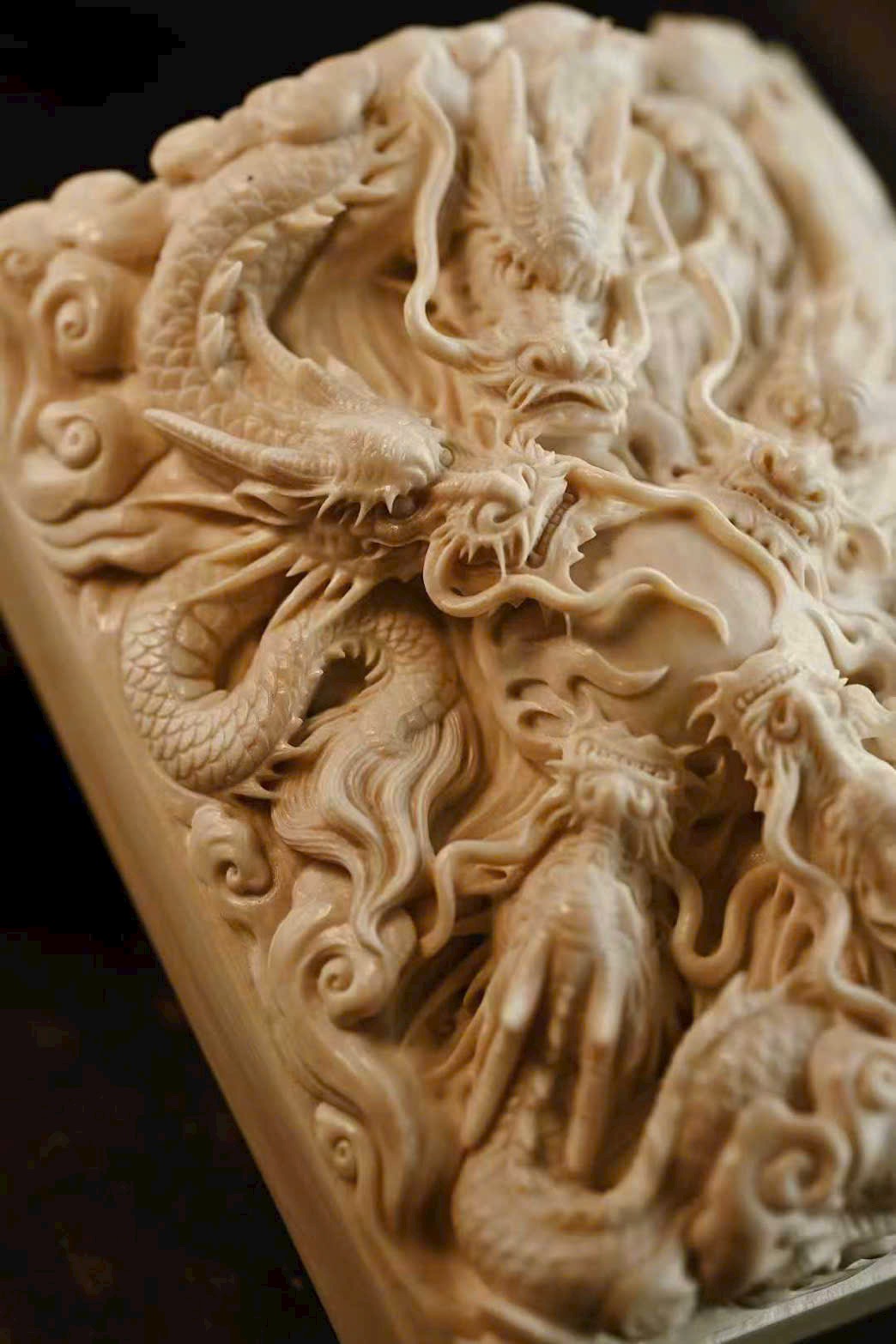 Tạo hình vuông vức, mộc mạc mà khí thế. Chạm khắc mây rồng uy vũ hiên ngang, vảy rồng tầng lớp chồng xếp, sống lưng rồng dựng đứng như gai nhọn, thân hình uốn lượn đầy sức căng. Rồng tung mình đón gió, mắt trợn gầm vang, râu tóc tung bay, thần thái sinh động; móng vuốt giương oai, khí thế hùng vĩ.