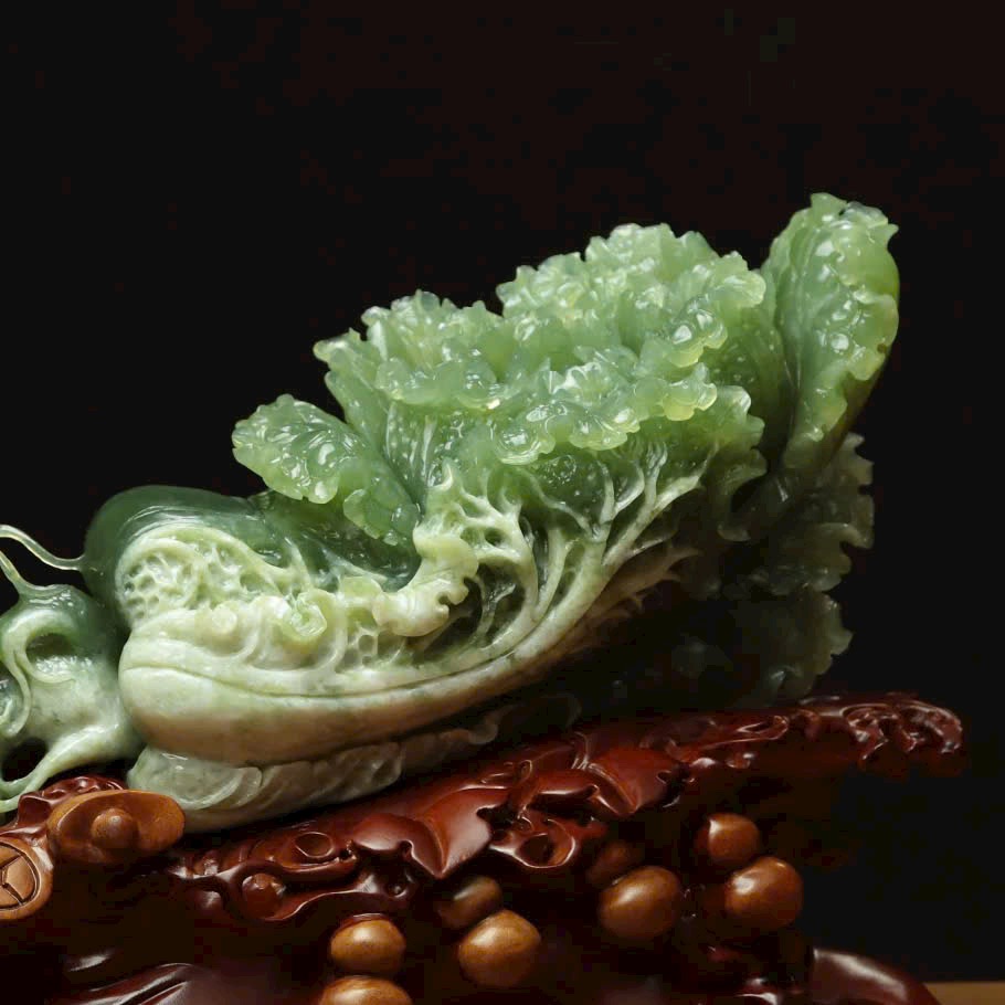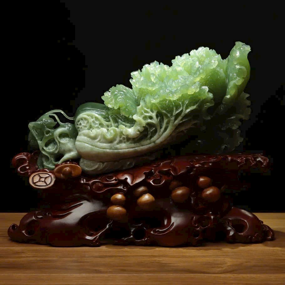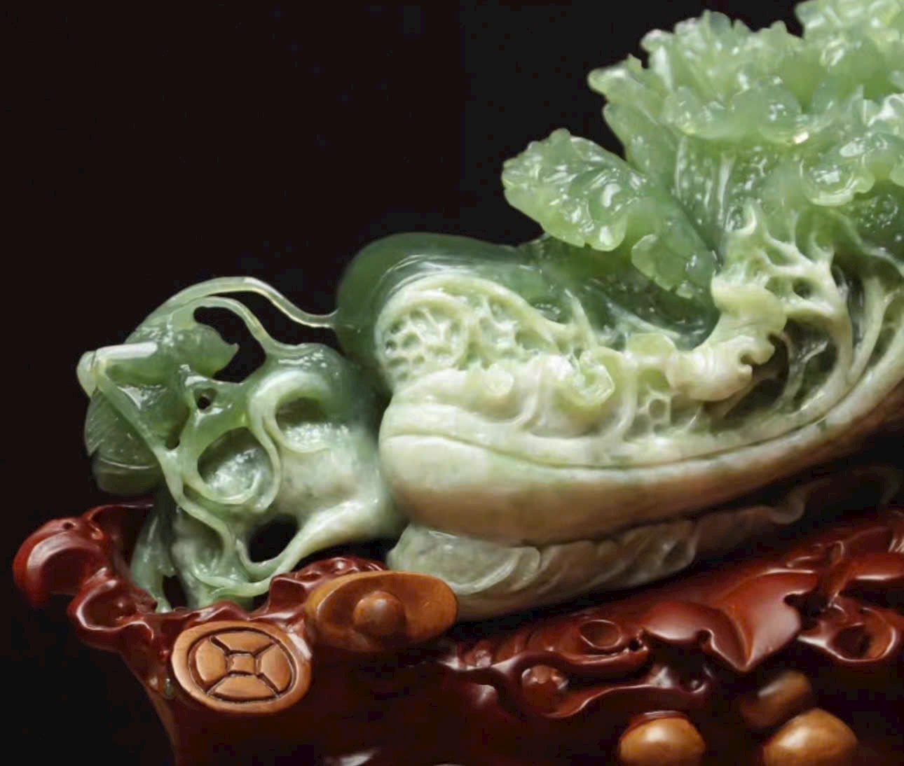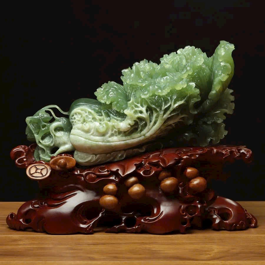 - Chạm khắc nguyên khối (nguyên thạch không ghép nối), giữ nguyên sắc xanh nguyên bản của ngọc