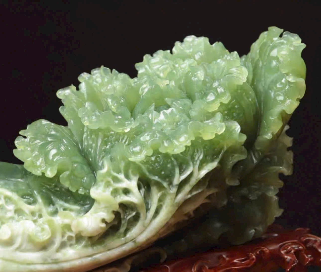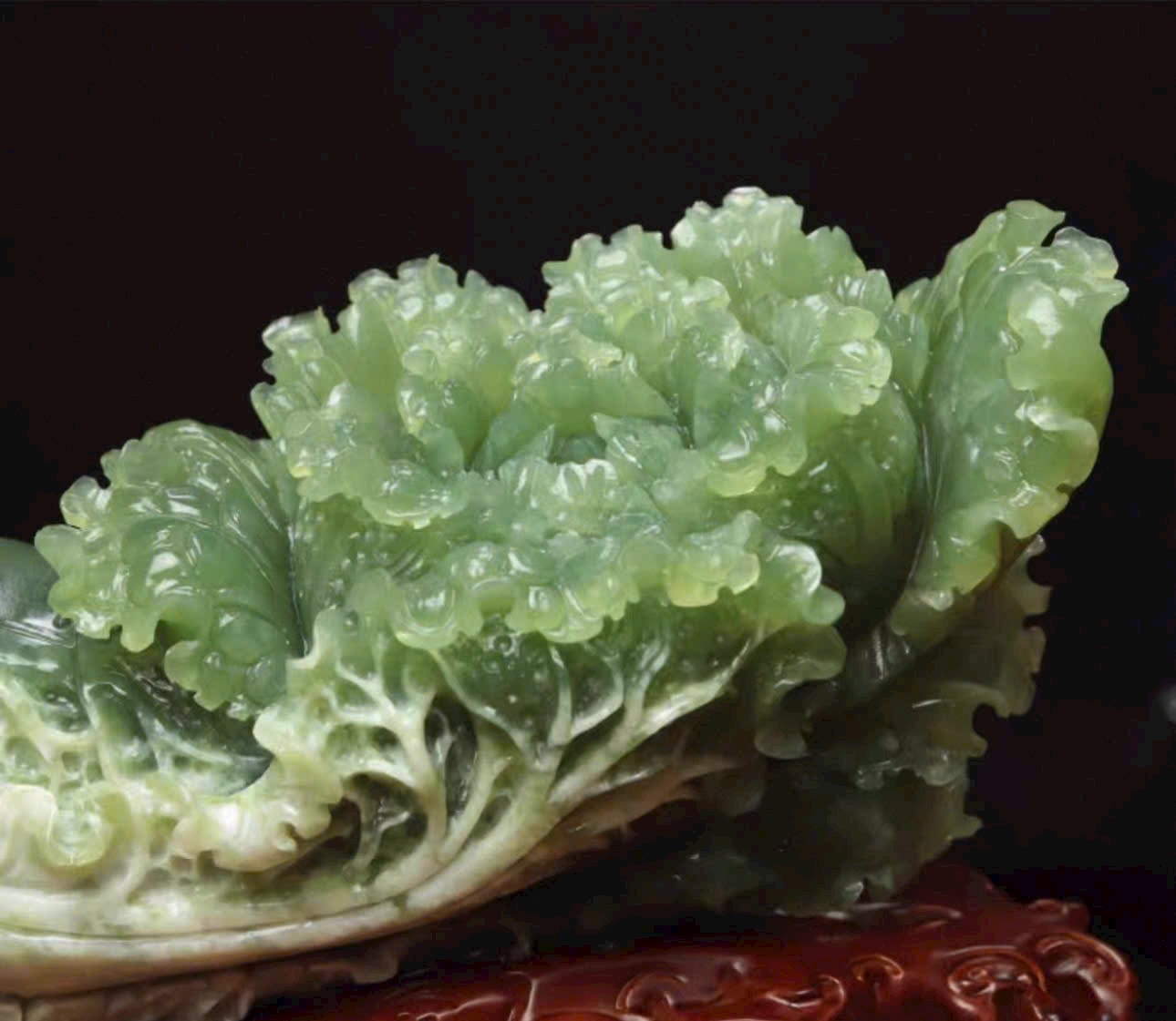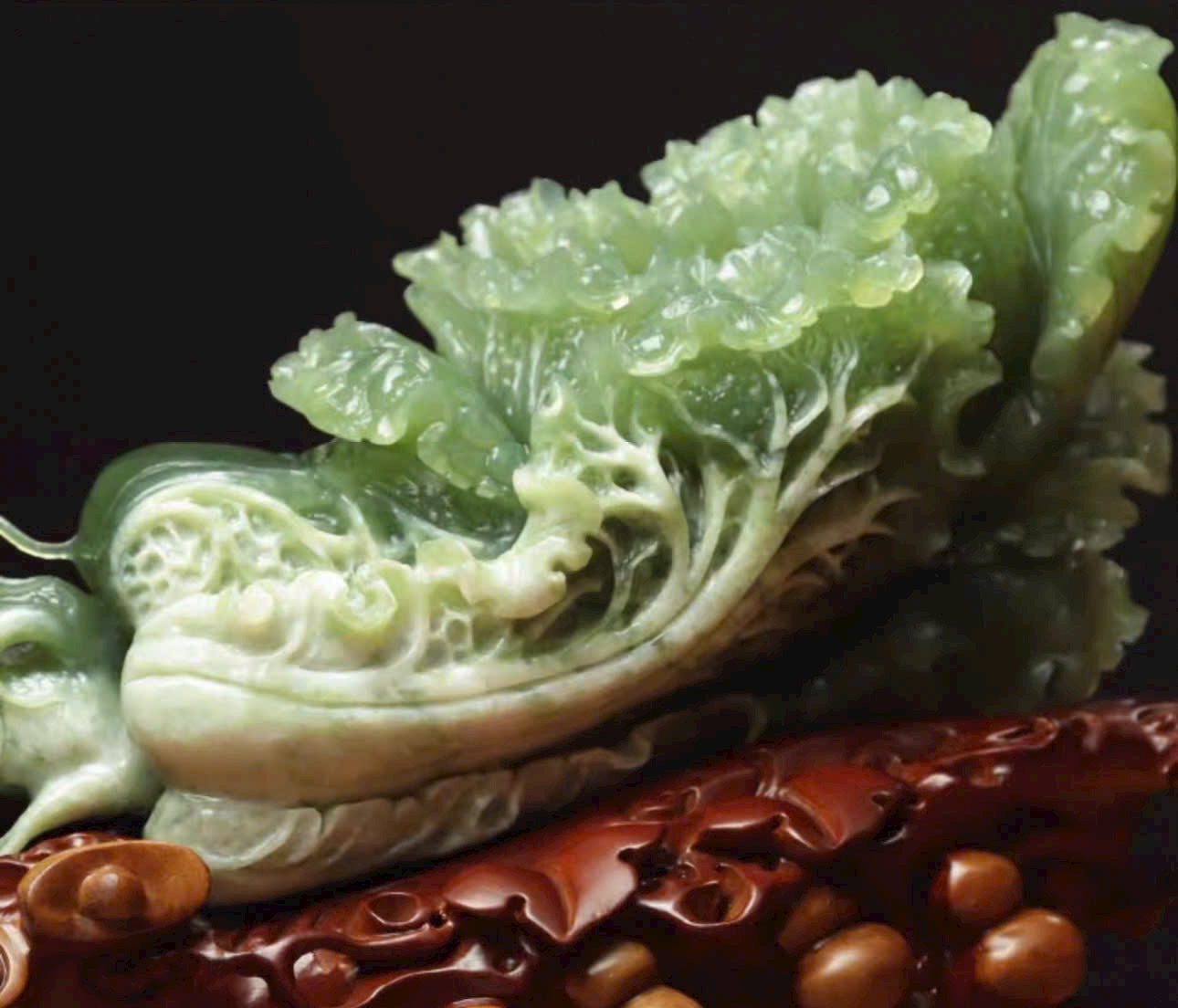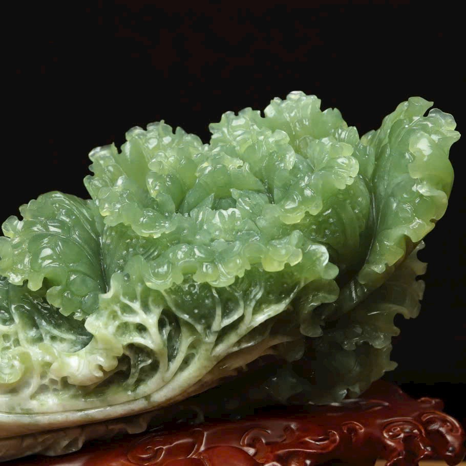 - Chạm khắc nguyên khối (nguyên thạch không ghép nối), giữ nguyên sắc xanh nguyên bản của ngọc