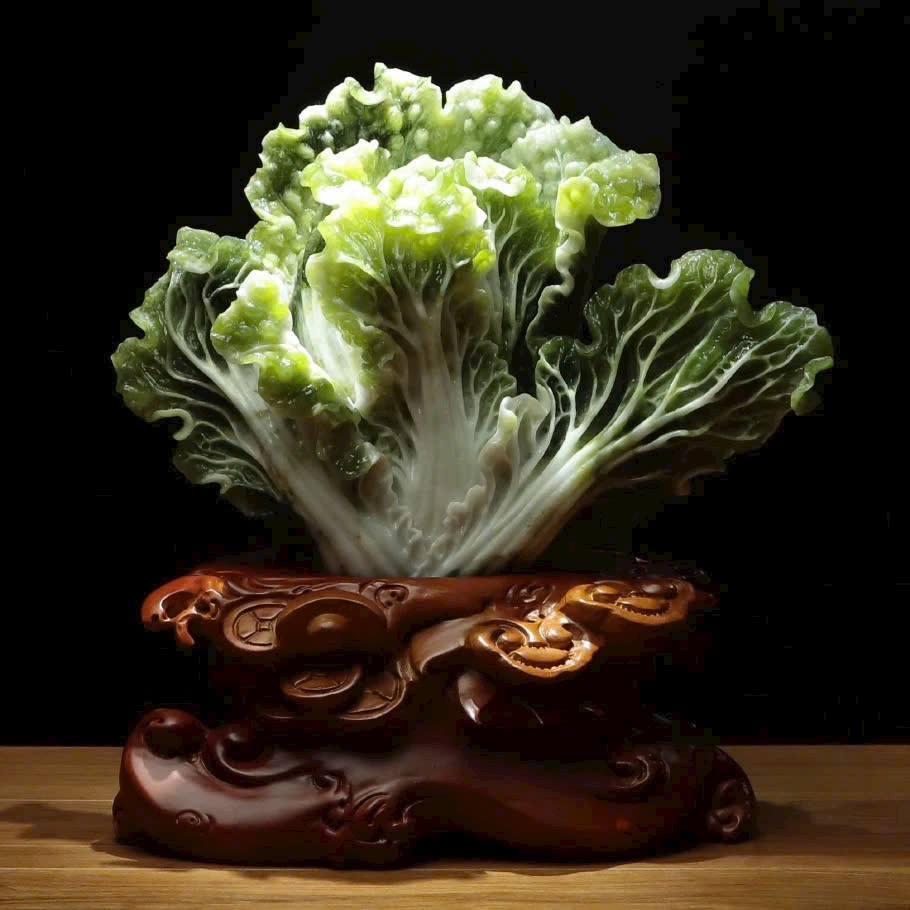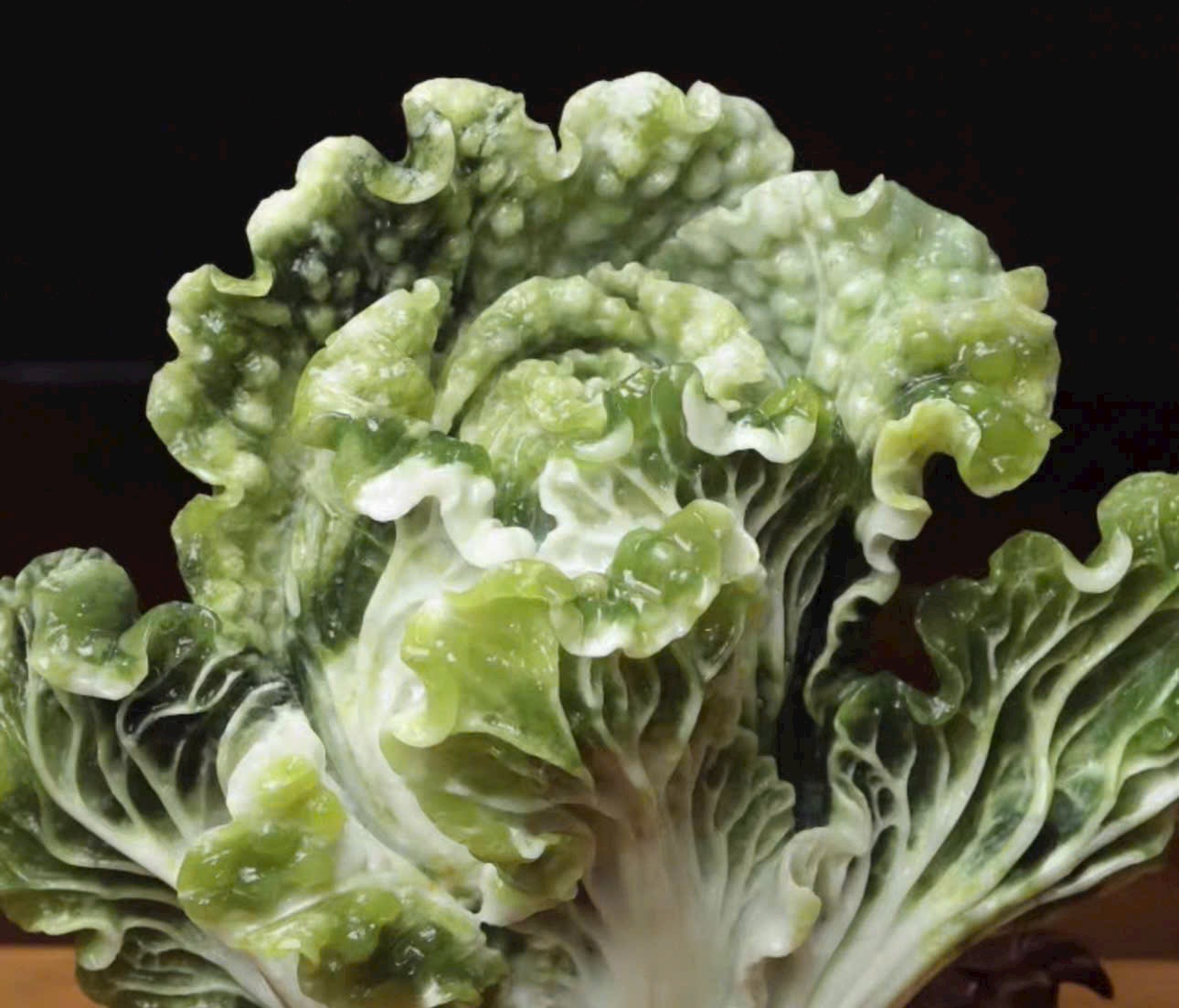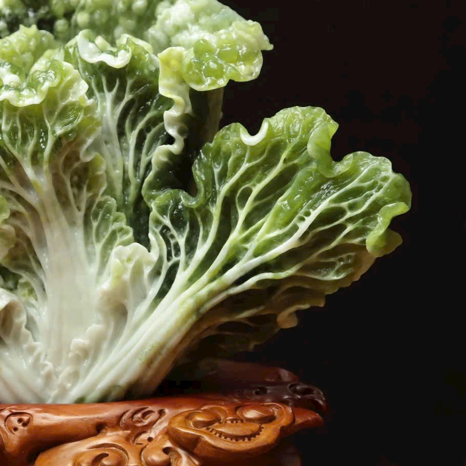 - Chạm khắc nguyên khối (nguyên thạch không ghép nối), giữ nguyên sắc xanh nguyên bản của ngọc