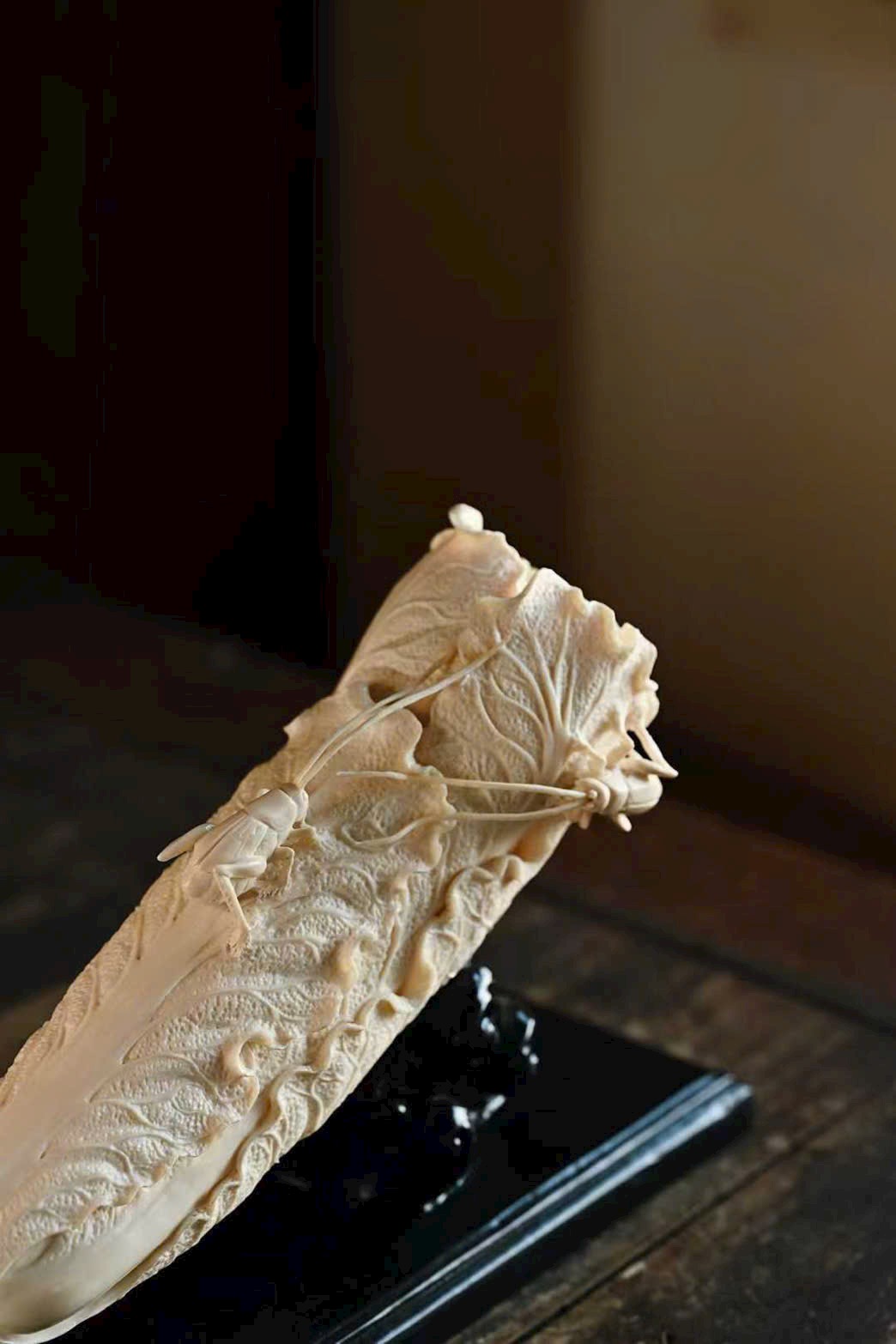 Lá cải xếp lớp sinh động, tự nhiên như mọc thật, kèm hình ve sầu tăng thêm khí chất thiên nhiên. “Bạch thái” đồng âm “bách tài” – biểu tượng tài lộc, thích hợp làm quà tặng hoặc trưng bày.