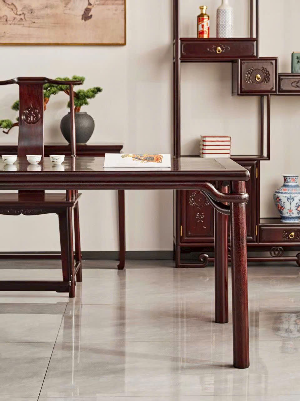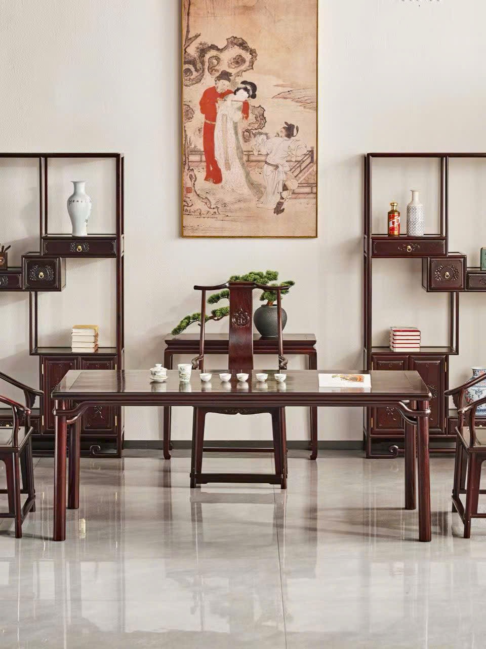 Tổng thể cân đối, sang trọng, vừa tiếp khách vừa thưởng trà, tôn lên phong vị cổ điển và đẳng cấp gia chủ.