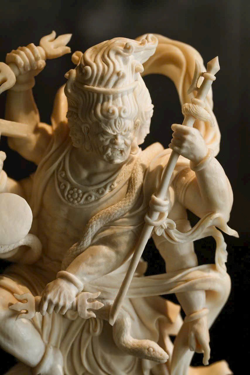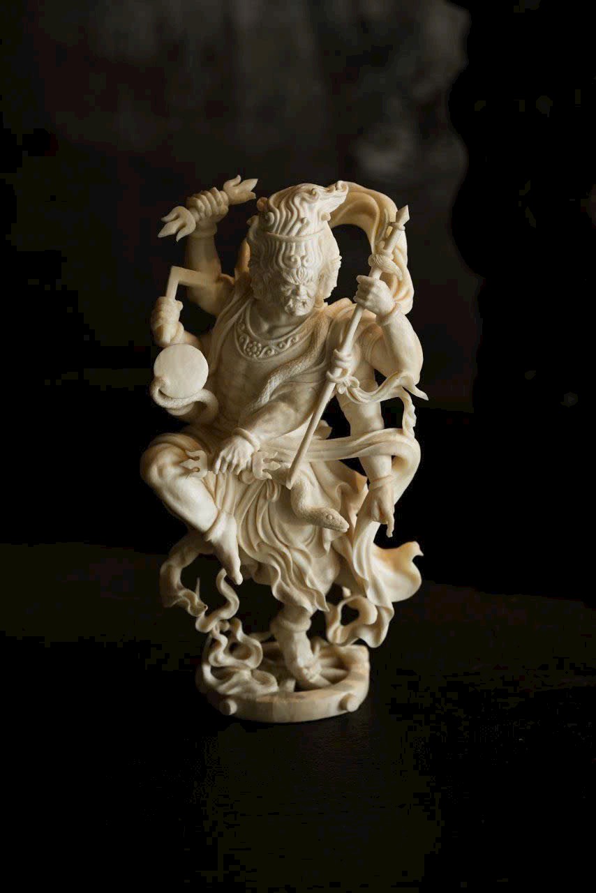 Bất Động Minh Vương – vị Hộ Pháp Kim Cang của Đại Nhật Như Lai, được chế tác hoàn toàn thủ công tinh xảo. Gương mặt nộ mục hàng ma, thần thái uy mãnh và cương nghị, biểu lộ sức mạnh bất động, vô úy, trong hung tướng ẩn chứa tâm từ bi và trí tuệ quang minh.