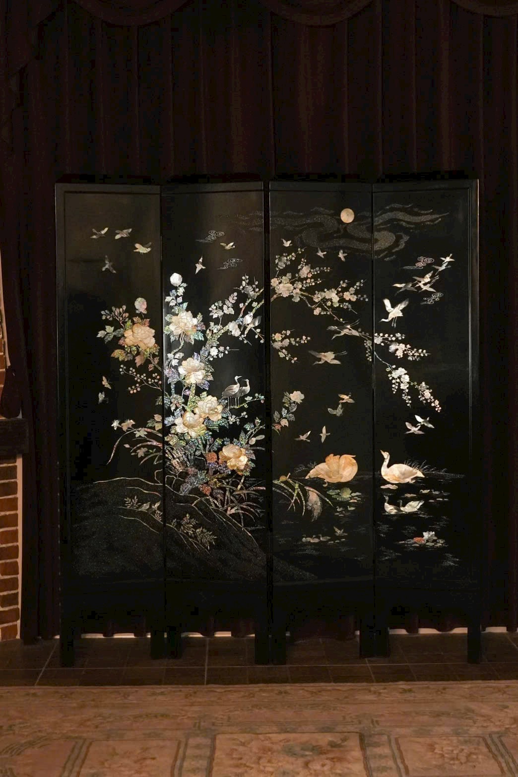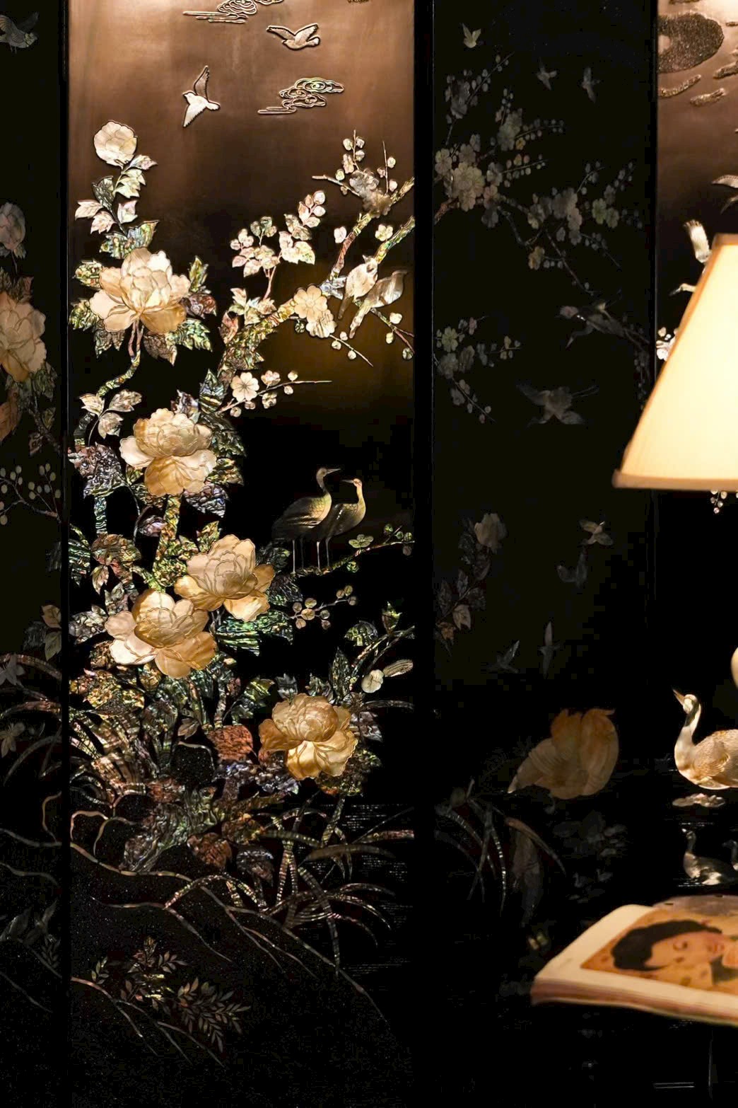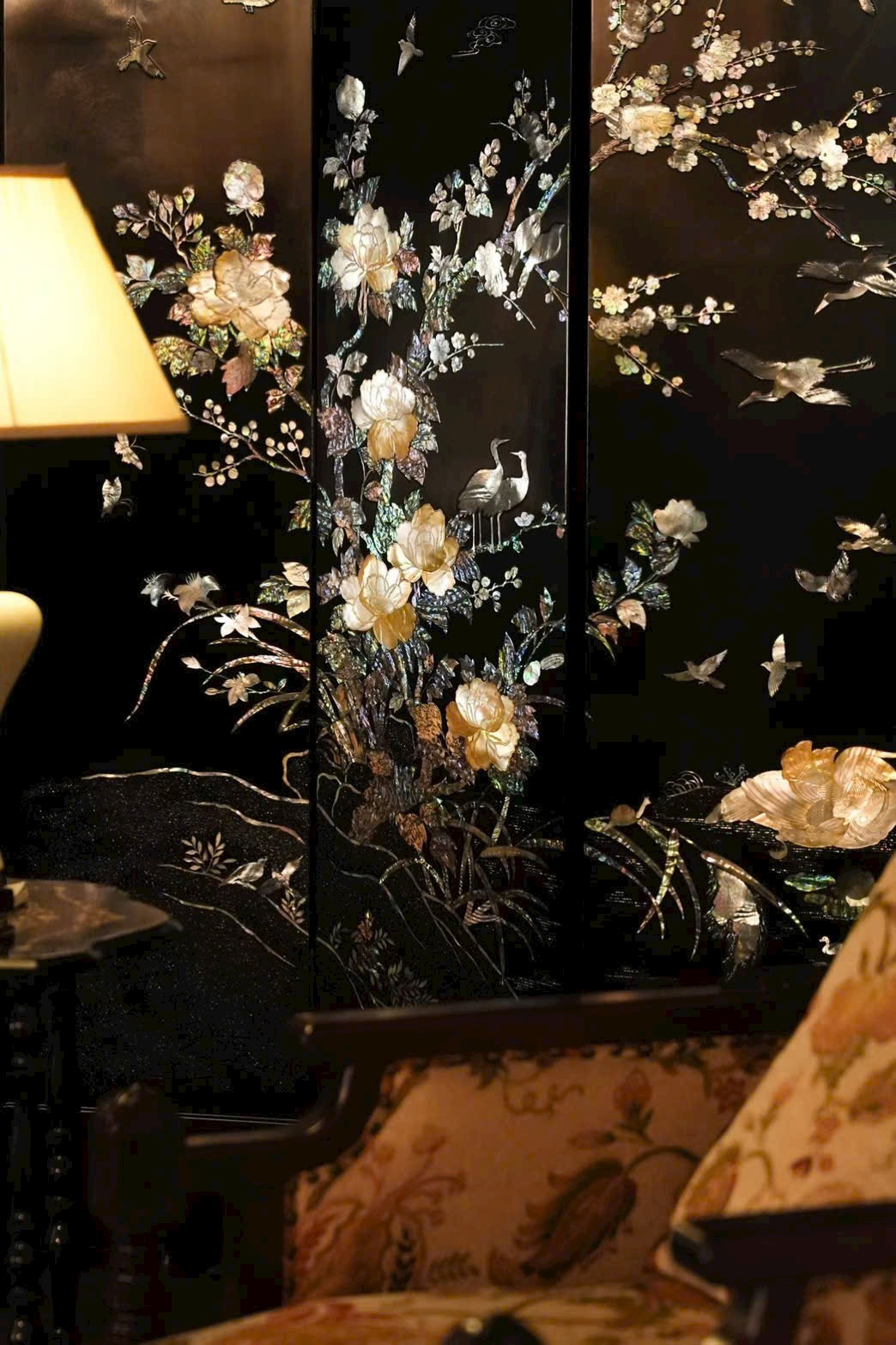 • Phong cách: bình phong sơn mài khảm ốc kiểu Thanh – điểm ốc