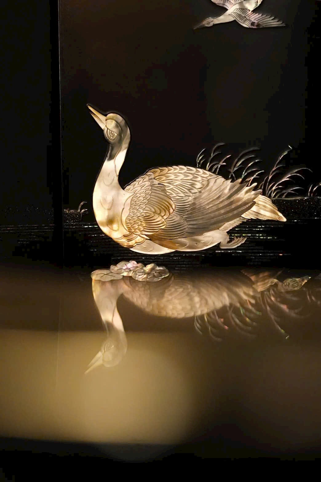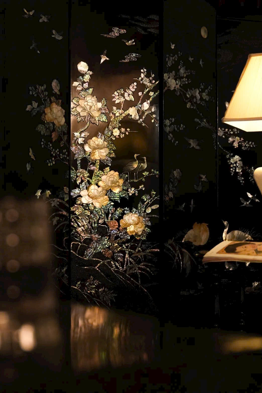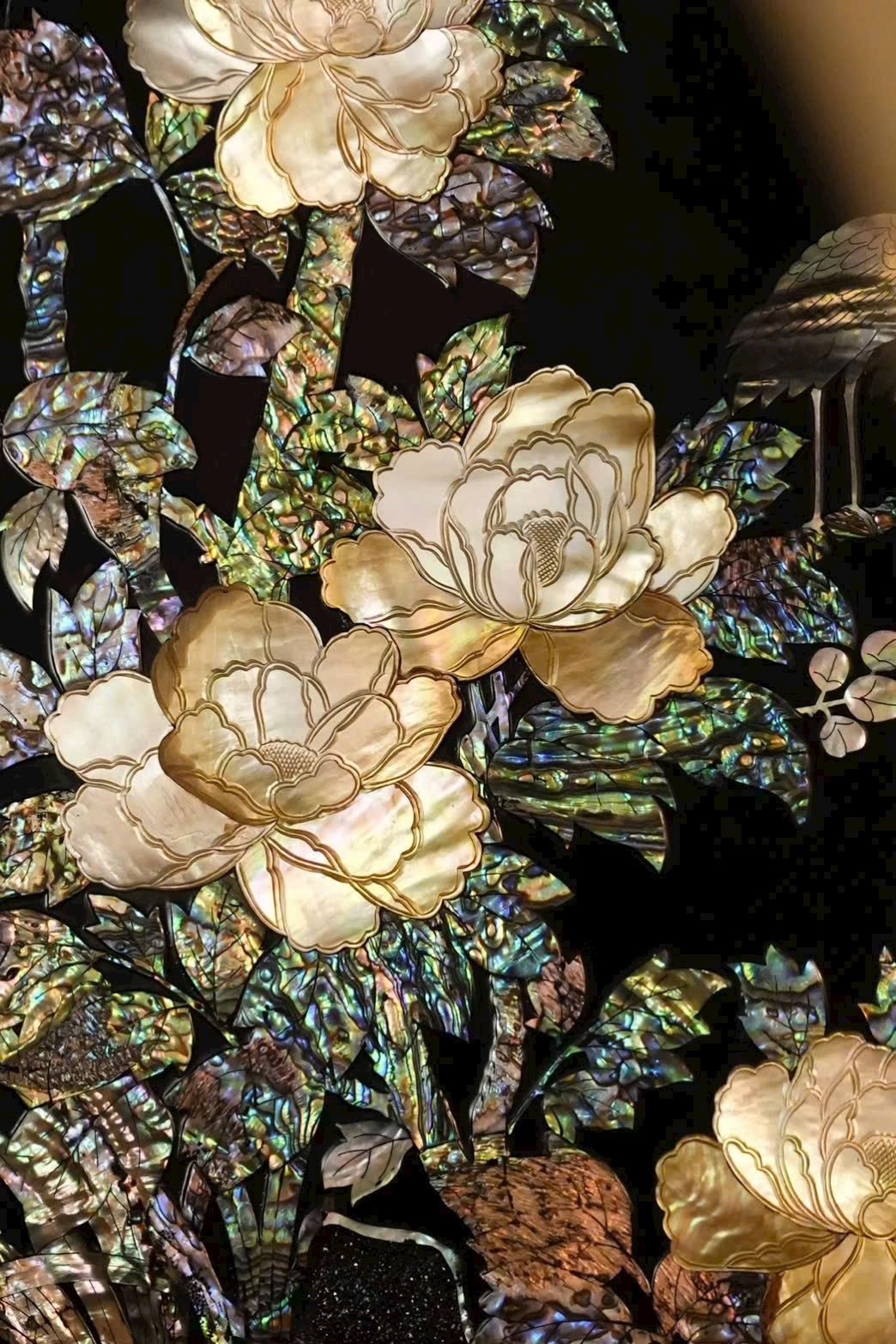 • Phong cách: bình phong sơn mài khảm ốc kiểu Thanh – điểm ốc