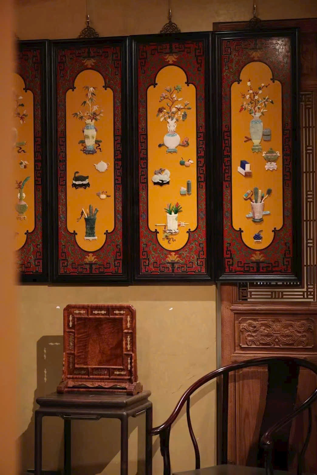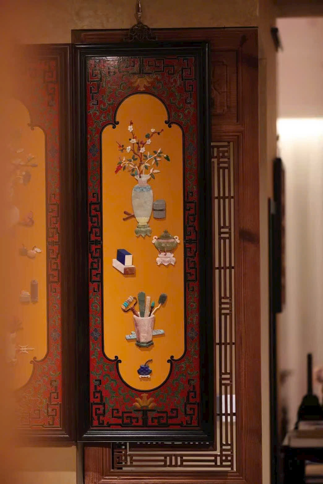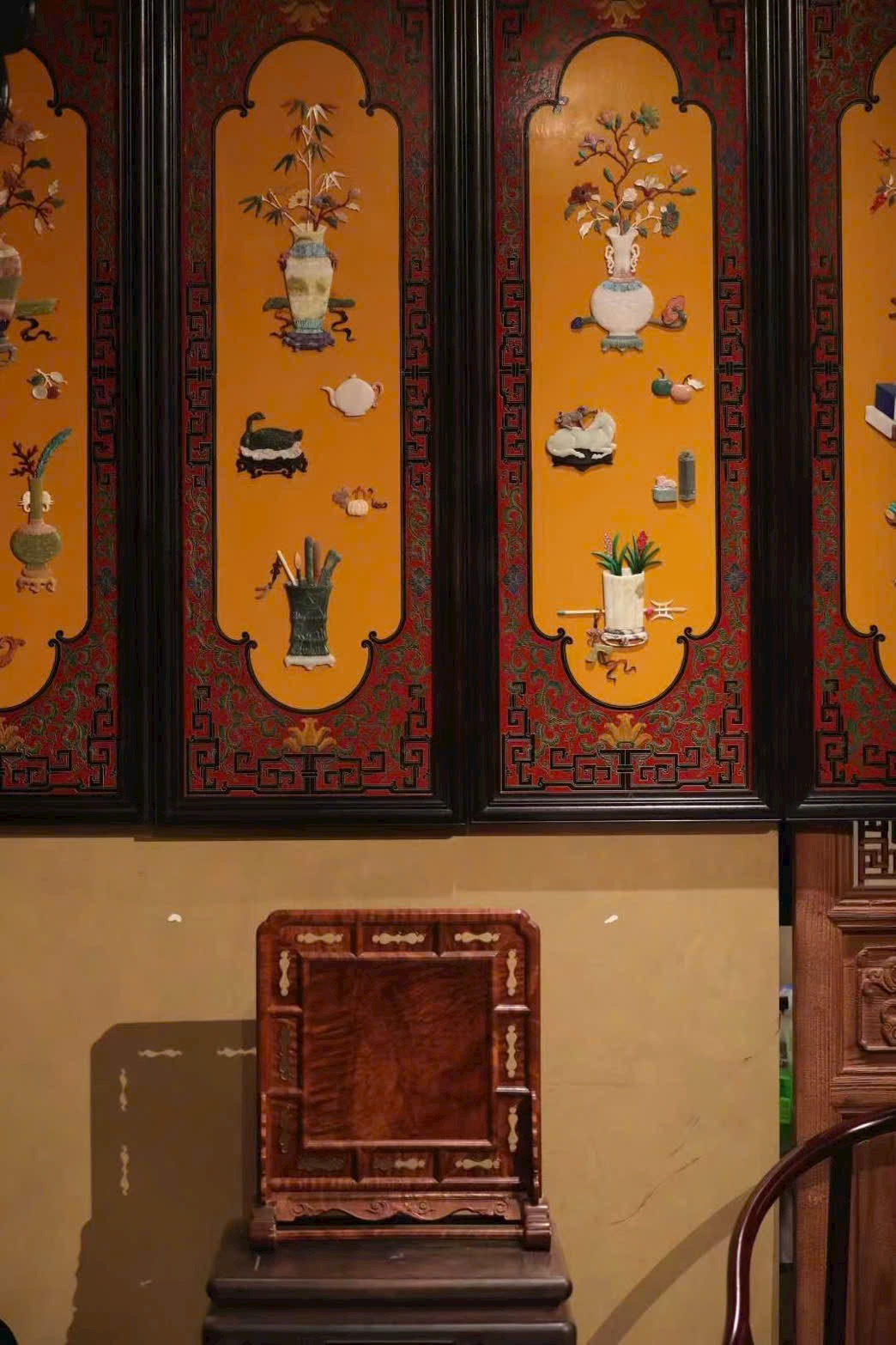 Mặt bình phong sơn mài tinh tế, lớp sơn mịn sâu, họa tiết bách bảo rực rỡ mà hài hòa, sắc độ đậm nhạt cân xứng, rất hợp không gian phòng khách hoặc thư phòng.