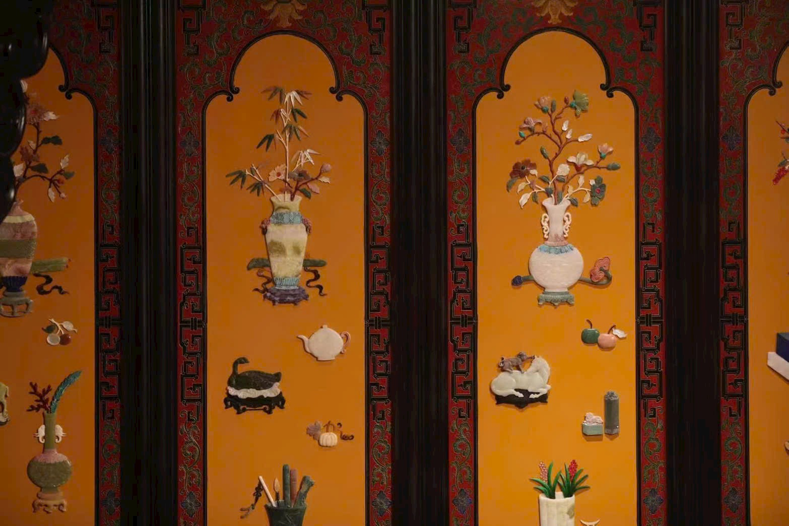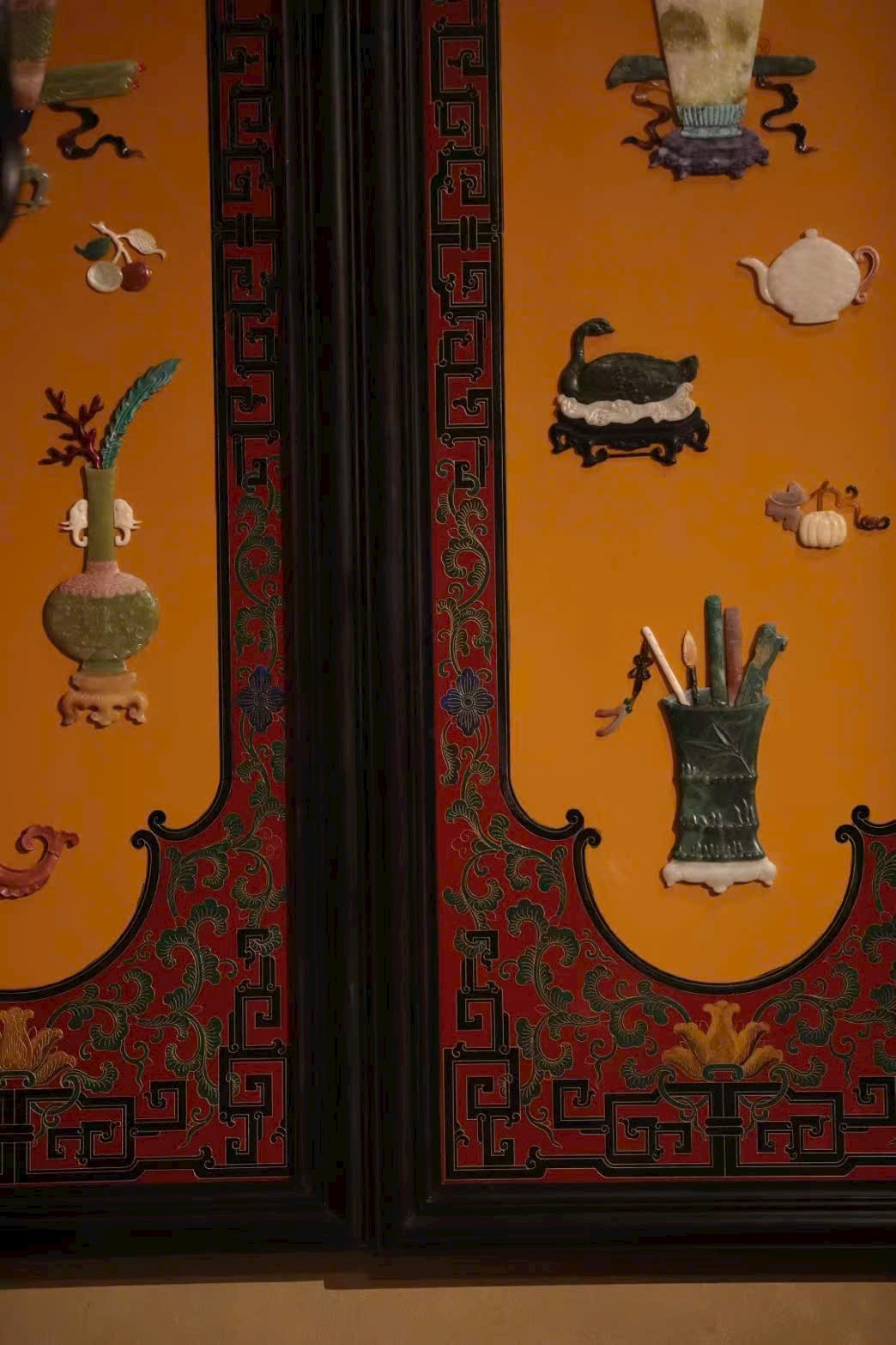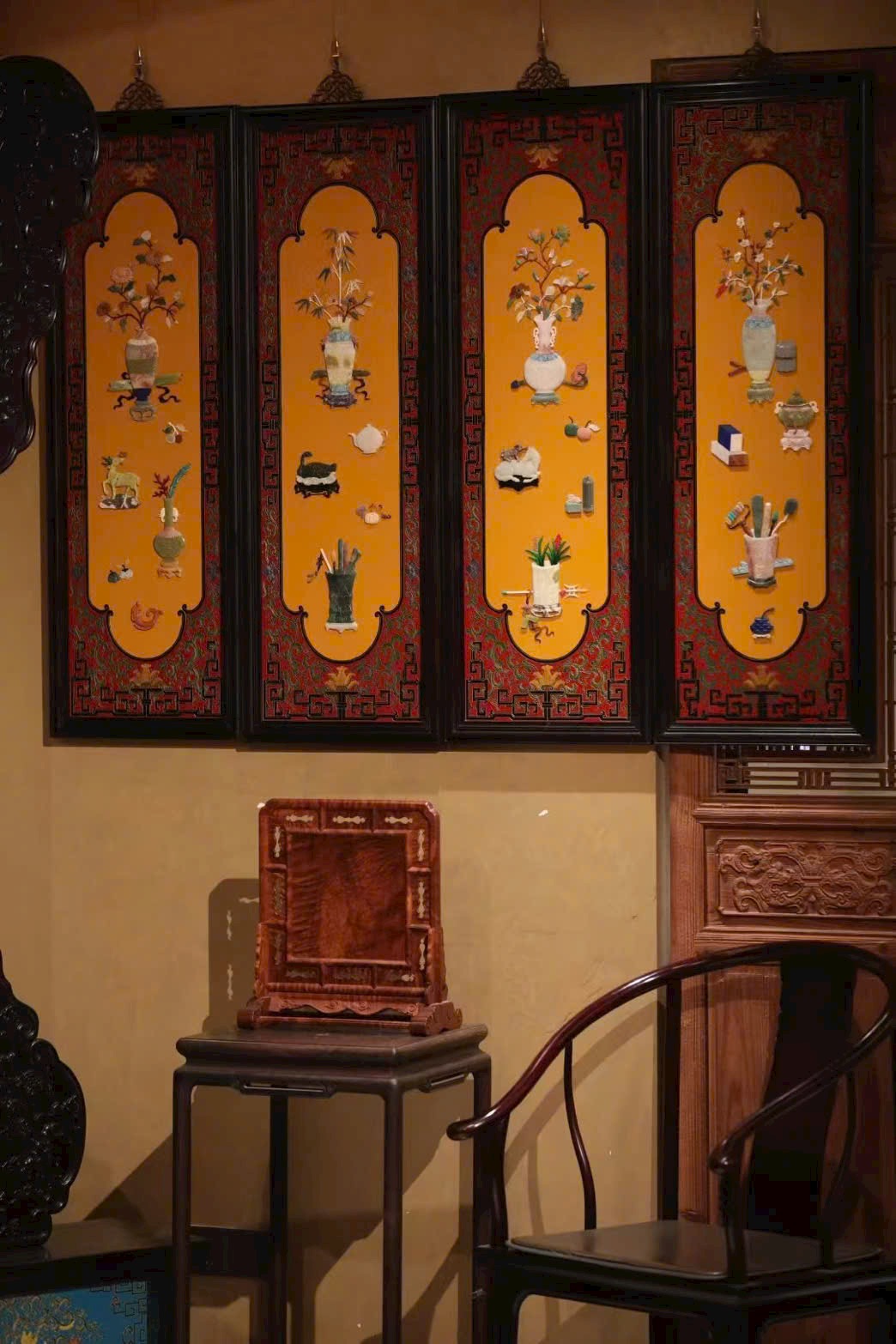 Mặt bình phong sơn mài tinh tế, lớp sơn mịn sâu, họa tiết bách bảo rực rỡ mà hài hòa, sắc độ đậm nhạt cân xứng, rất hợp không gian phòng khách hoặc thư phòng.
