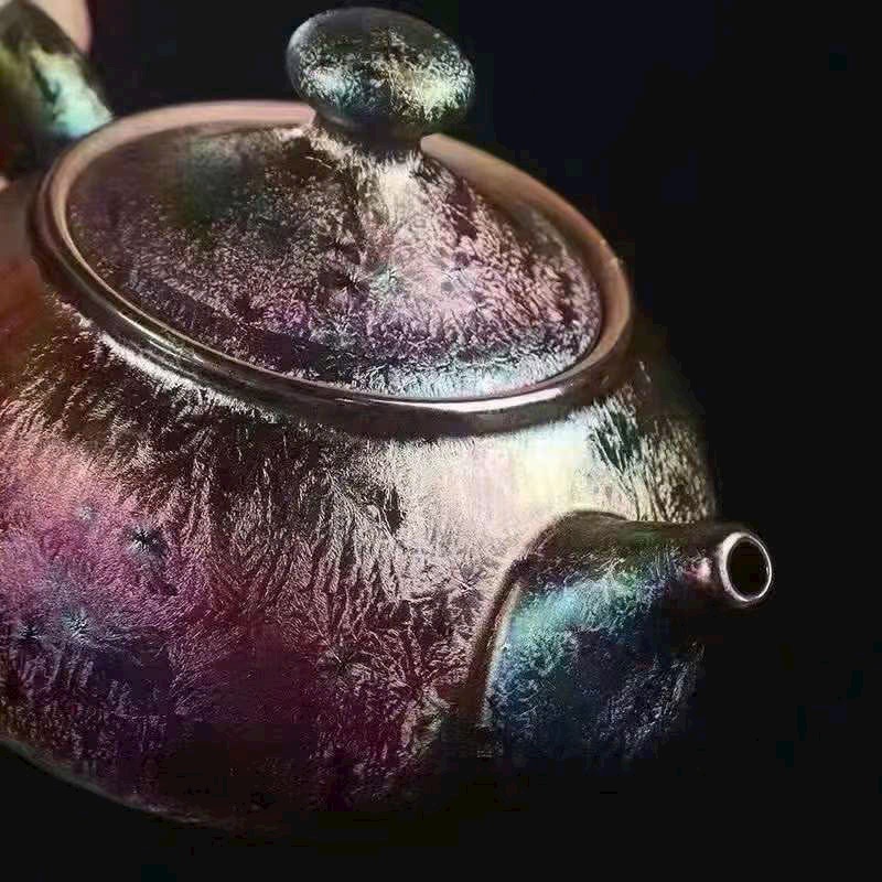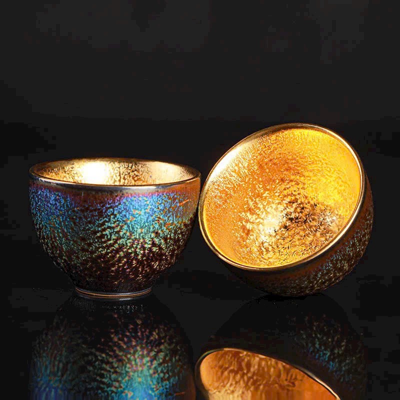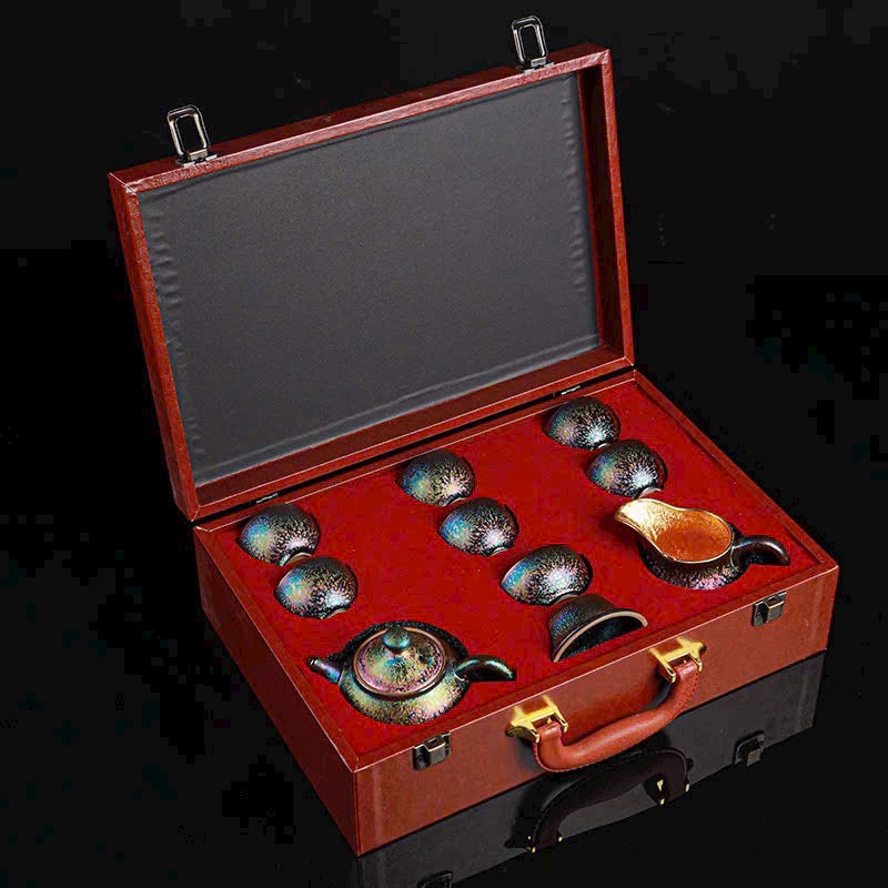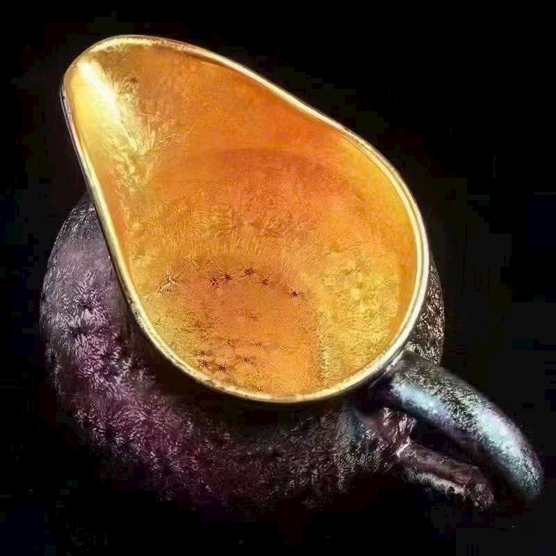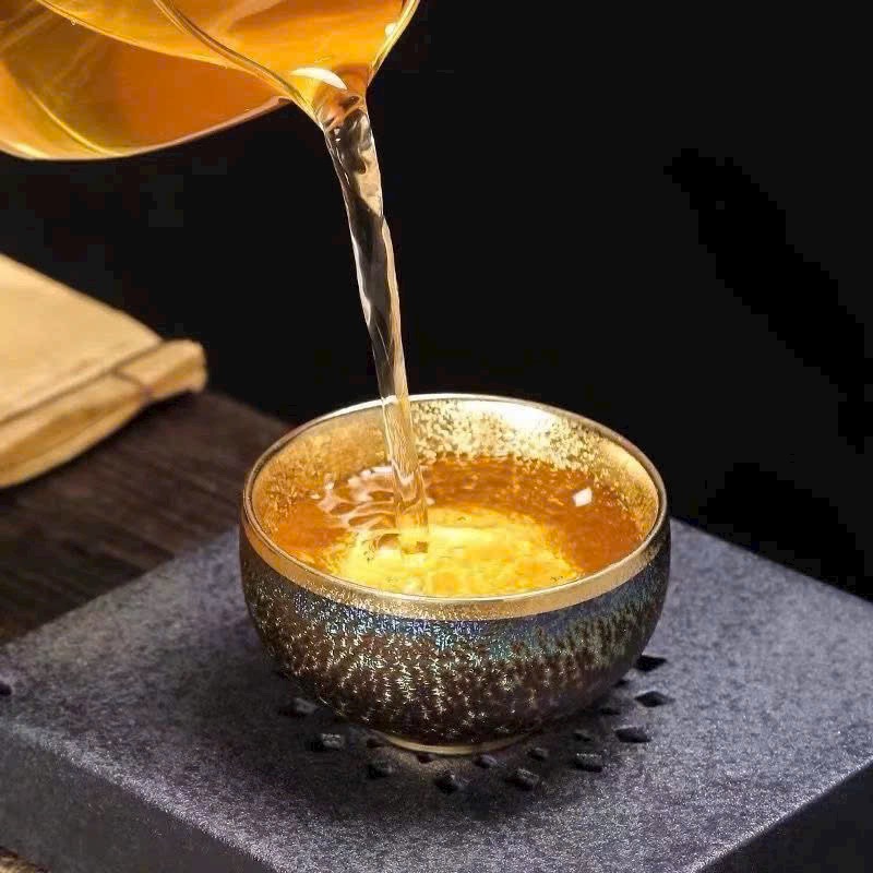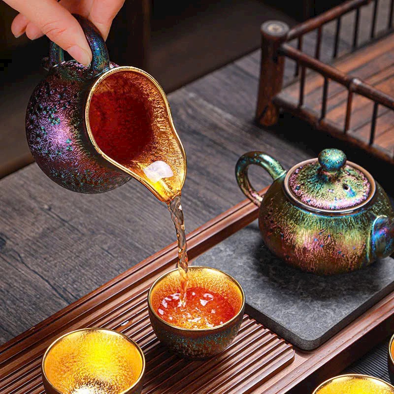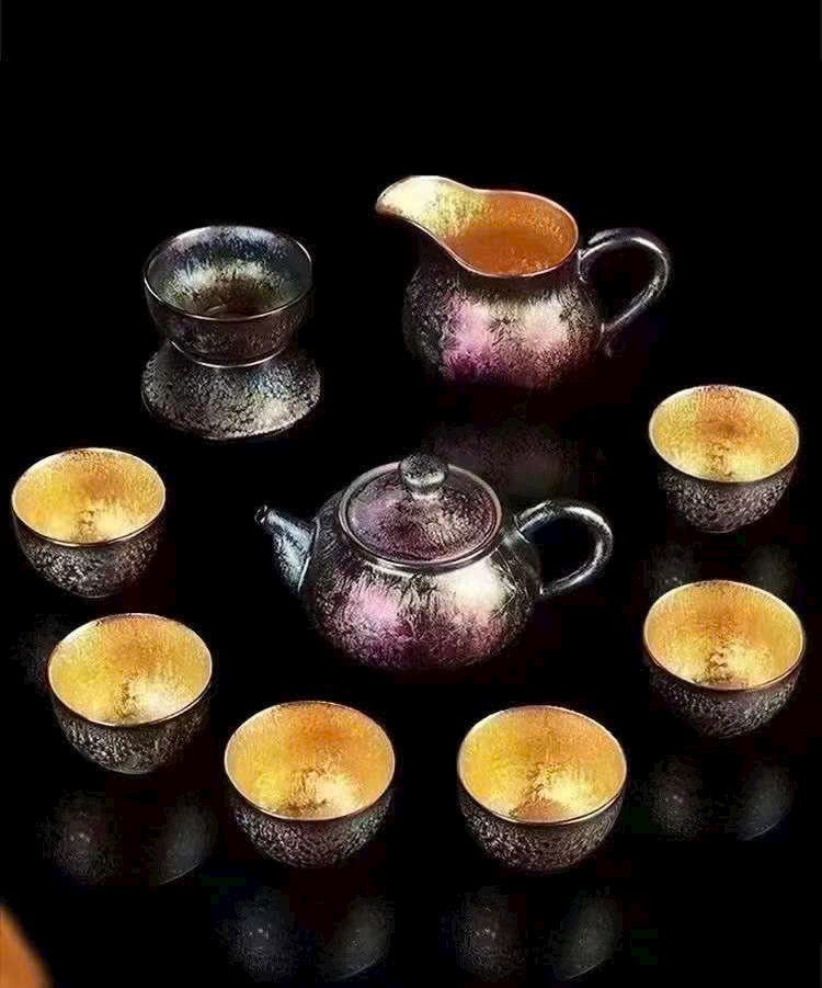 🌿 Bộ Ấm Chén Thiên Mục Khổng Tước dát vàng 24K