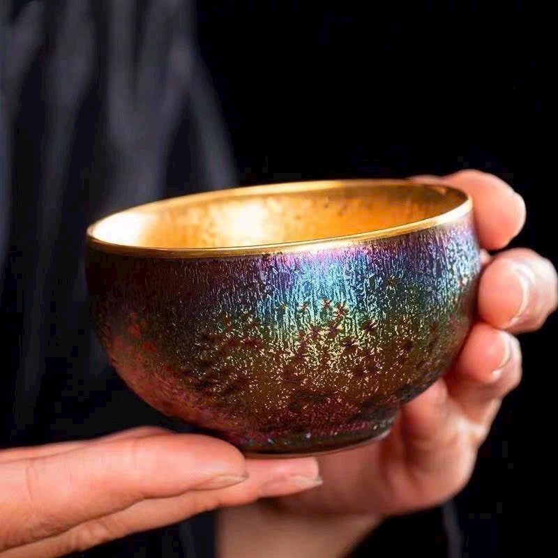 - Chất Liệu: Sứ Thiên Mục Khổng Tước dát vàng 24K