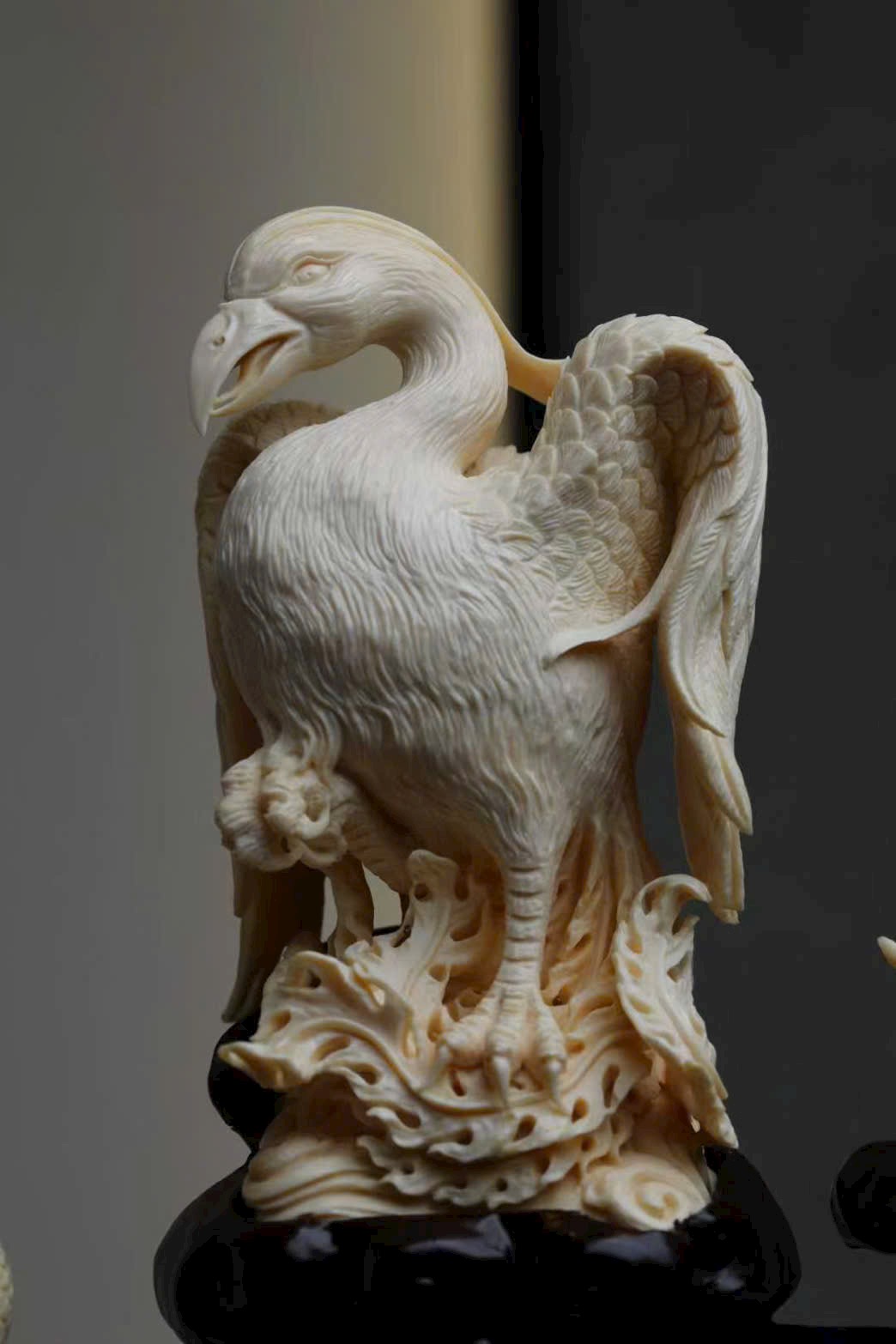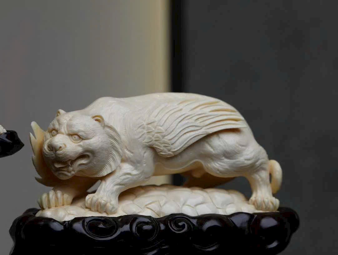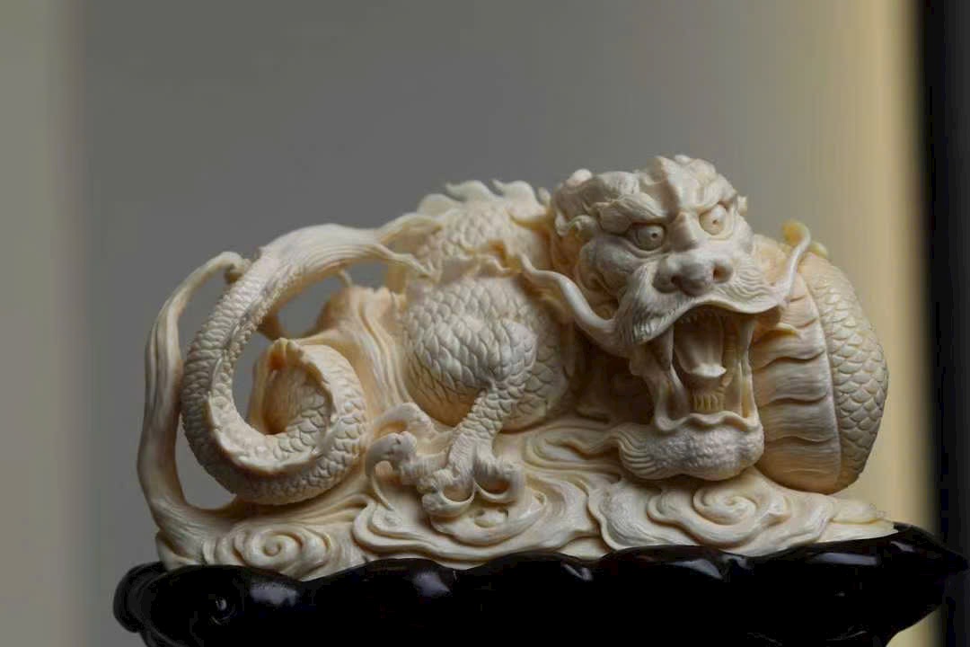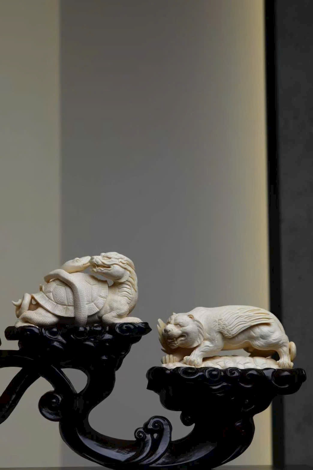 Tuyển chọn ng.à ma mút thượng phẩm, chất liệu bạch băng mãn văn, trong sáng tinh khiết. Toàn bộ tác phẩm được thiết kế dựa trên tư tưởng Âm Dương học “Trời tròn – Đất vuông”, hàm chứa triết lý sâu xa. Tác phẩm hoàn toàn thủ công tinh chạm tròn tượng, khắc họa sinh động Tứ Linh Thánh Thú – Thanh Long, Bạch Hổ, Chu Tước, Huyền Vũ, thần thái sống động như linh vật hiện hình.