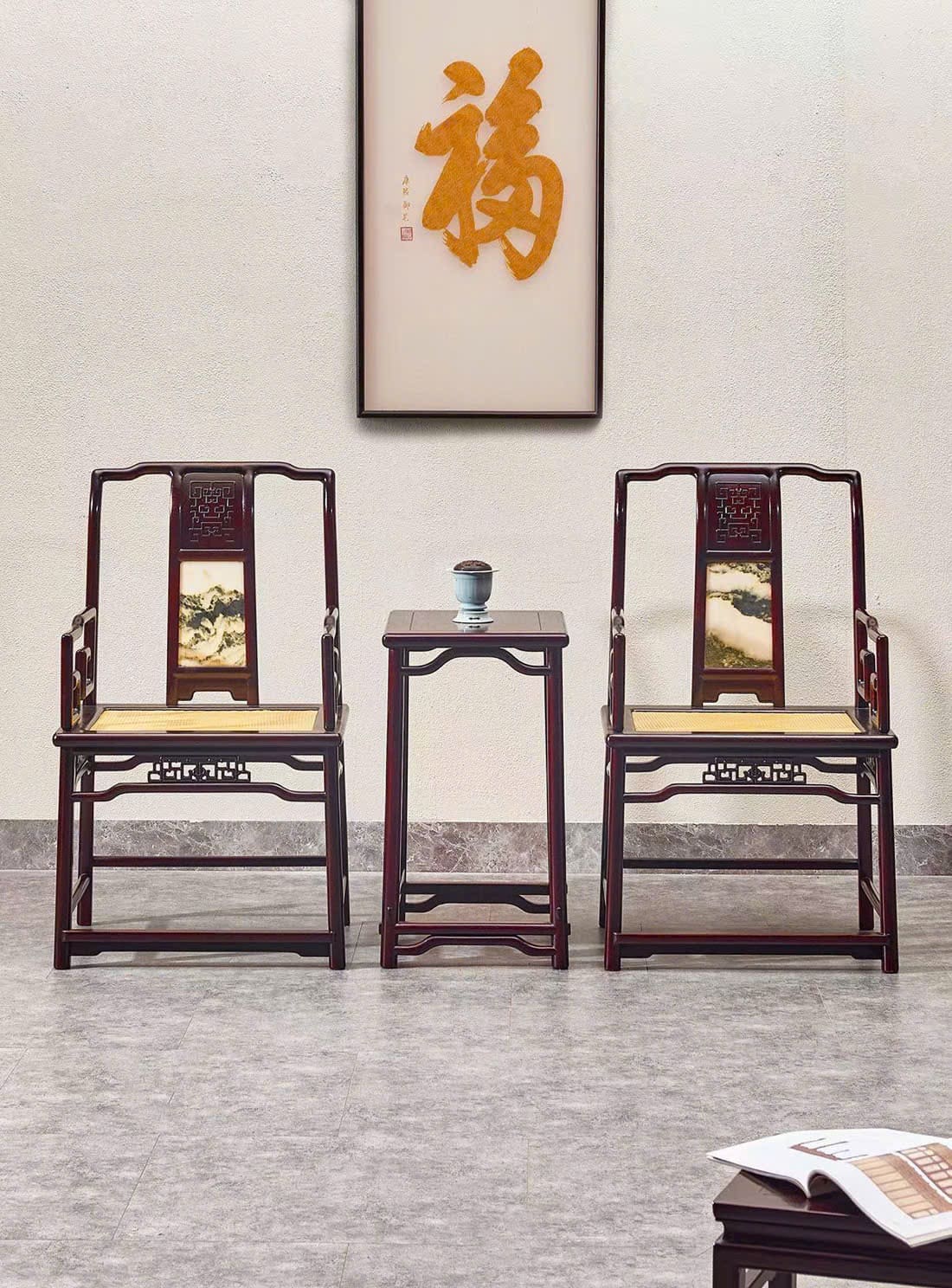 Thiết kế tay vịn cong hình “kim câu” mềm mại, kết hợp mặt ngồi đan mây thoáng khí, tạo cảm giác nhẹ nhàng và thoải mái. Tổng thể thanh thoát, vừa cổ điển vừa tinh tế, thích hợp bài trí phòng trà, phòng khách hoặc không gian nghỉ ngơi thư giãn.