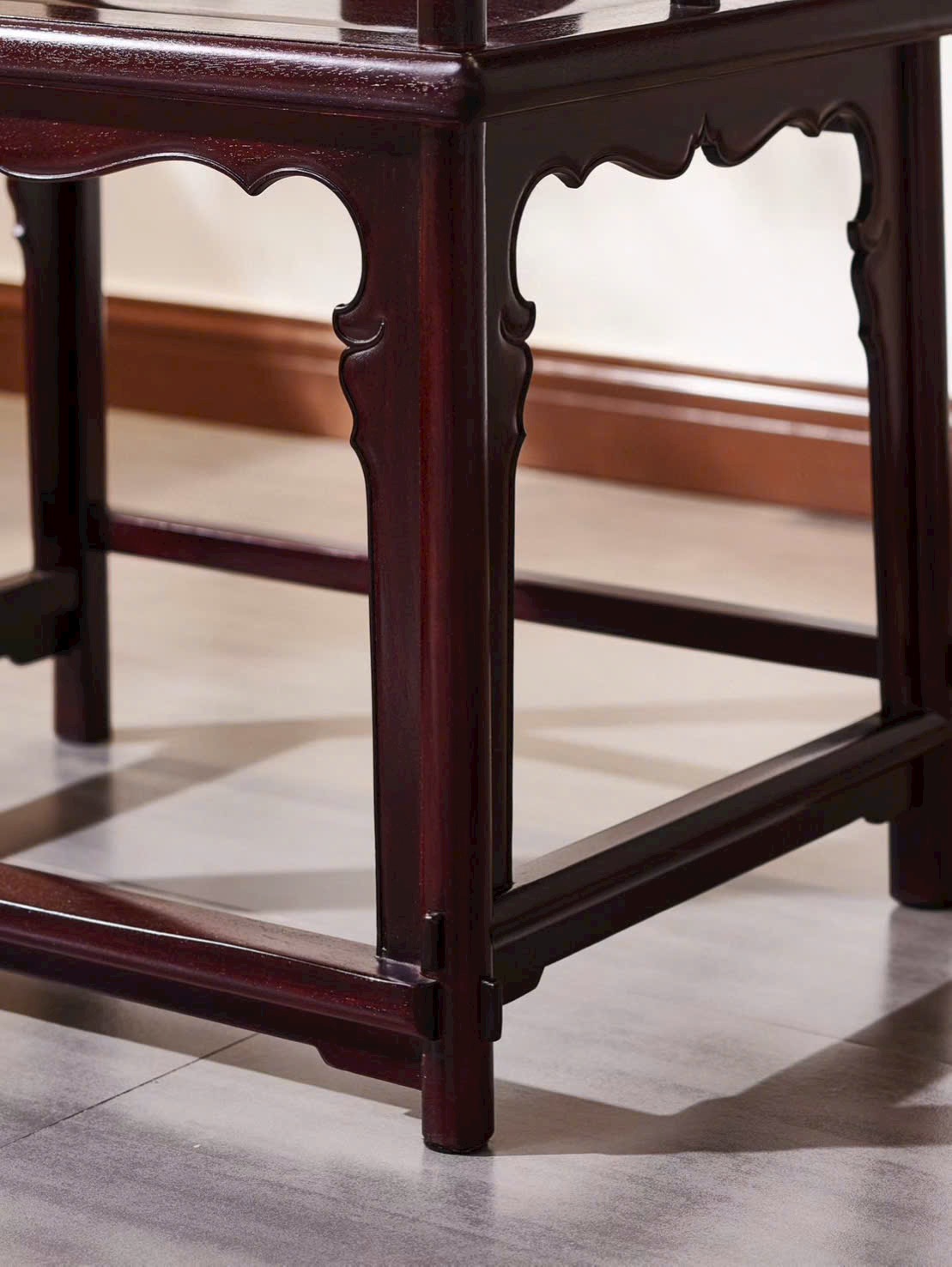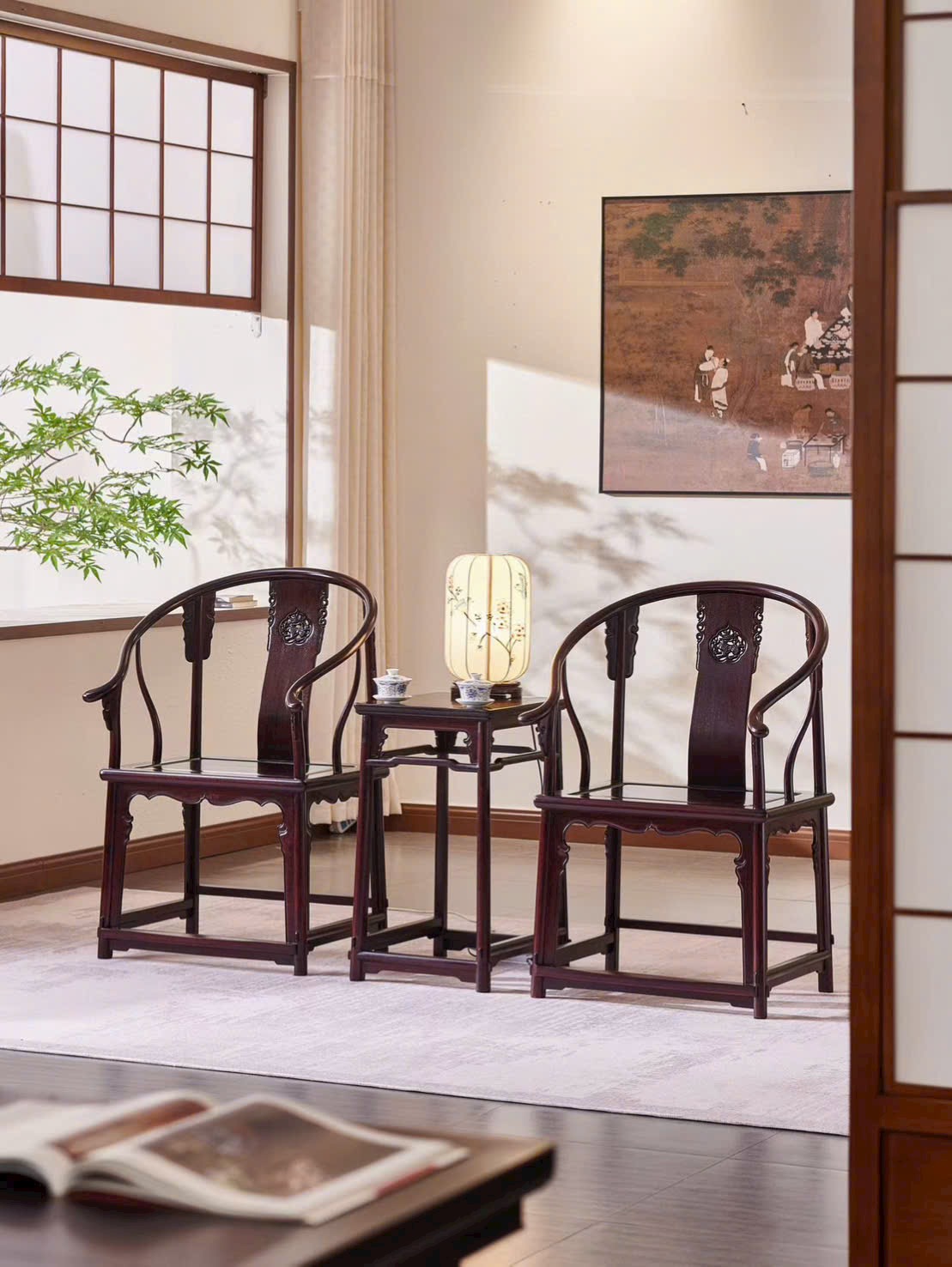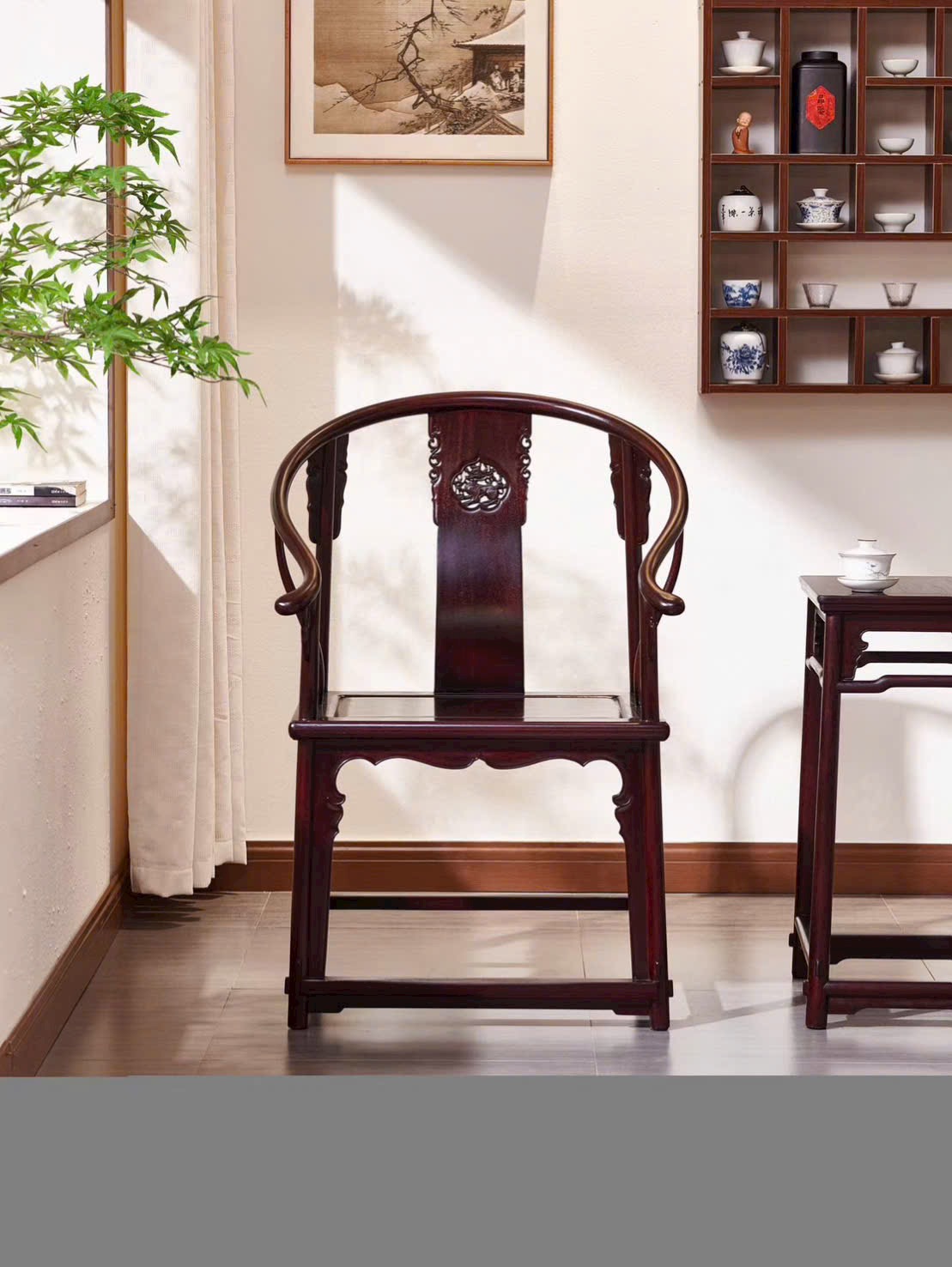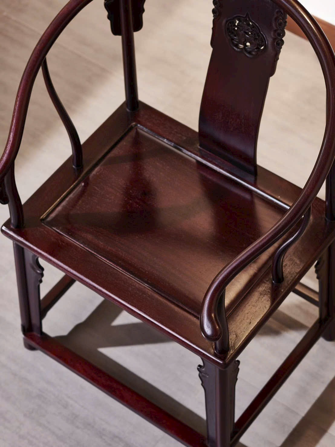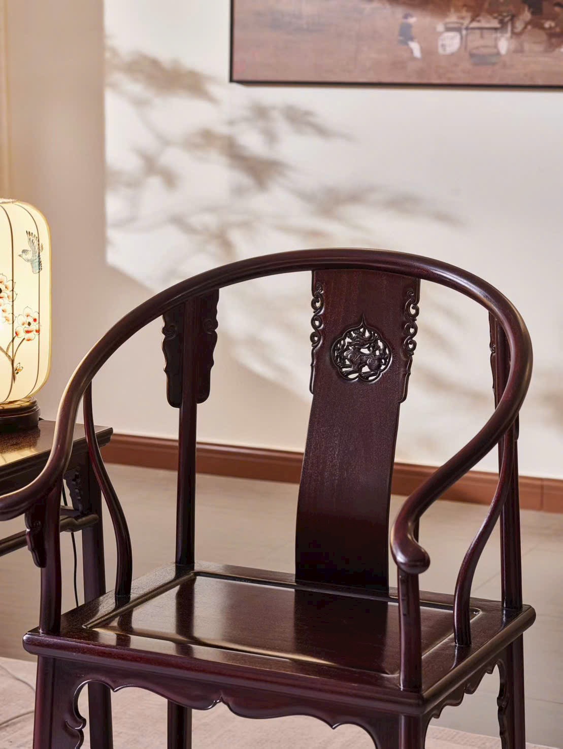 Thiết kế vòng tay liền lưng uốn cong mềm mại, điểm nhấn họa tiết Kỳ Lân mang ý nghĩa cát tường, bảo hộ và thịnh vượng. Dáng ghế bề thế nhưng vẫn thanh thoát, thích hợp bài trí phòng khách, phòng trà hoặc không gian tiếp khách trang trọng.