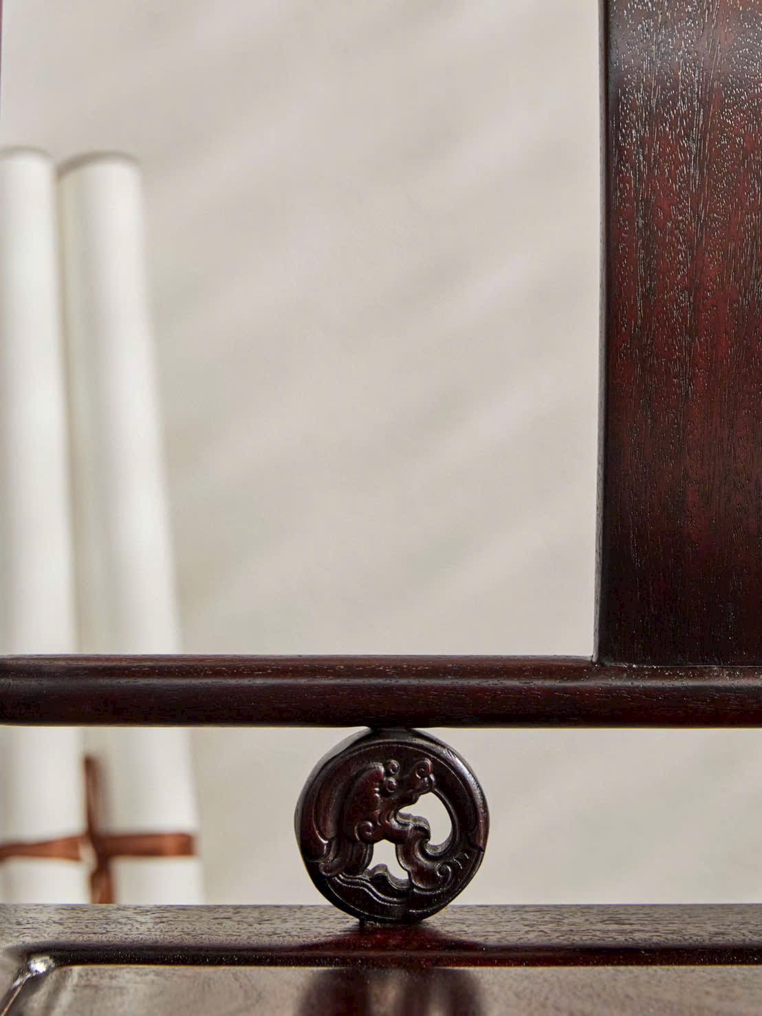 Dáng ghế nhỏ gọn, lưng tựa thanh thoát, tổng thể cân đối và trang nhã. Phù hợp không gian phòng khách, phòng trà hoặc góc thư giãn, vừa tiết kiệm diện tích vừa giữ được nét cổ điển tinh tế.