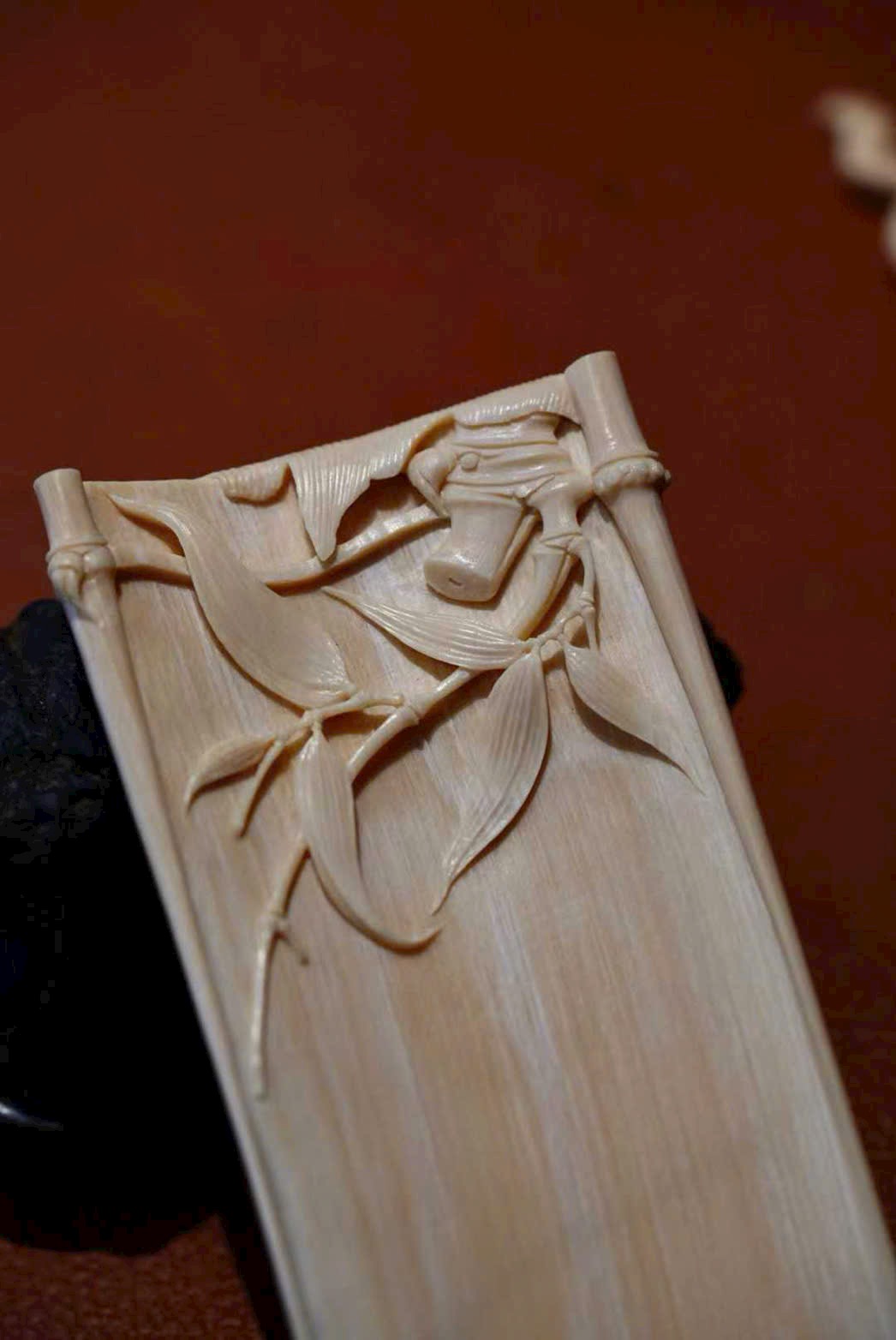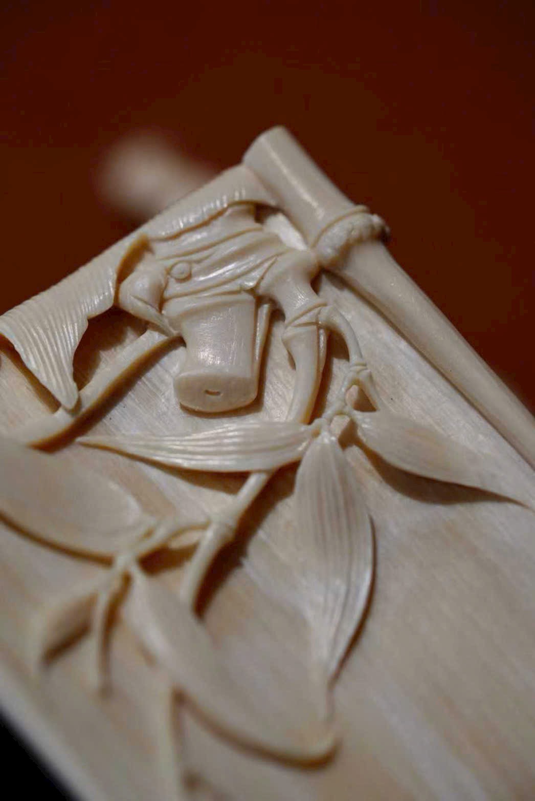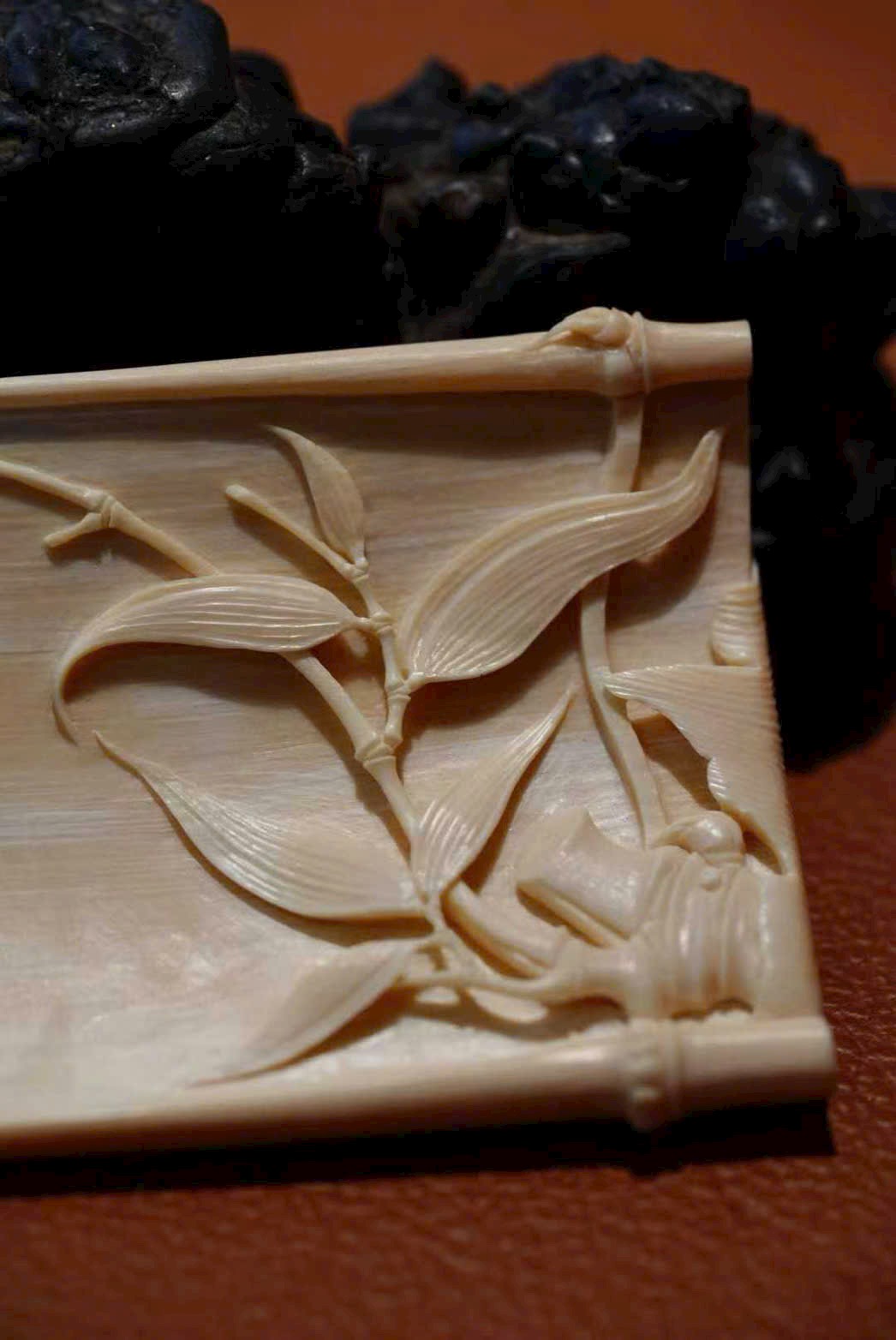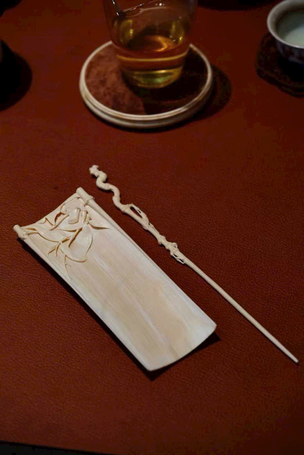 Ng.à ma mút vạn năm, lớp da cổ tự nhiên, bao bóng sáng ngời, chạm khắc mộc mạc cổ kính, ý cảnh thâm sâu, phóng khoáng tự nhiên, phẩm trà tĩnh nhã.