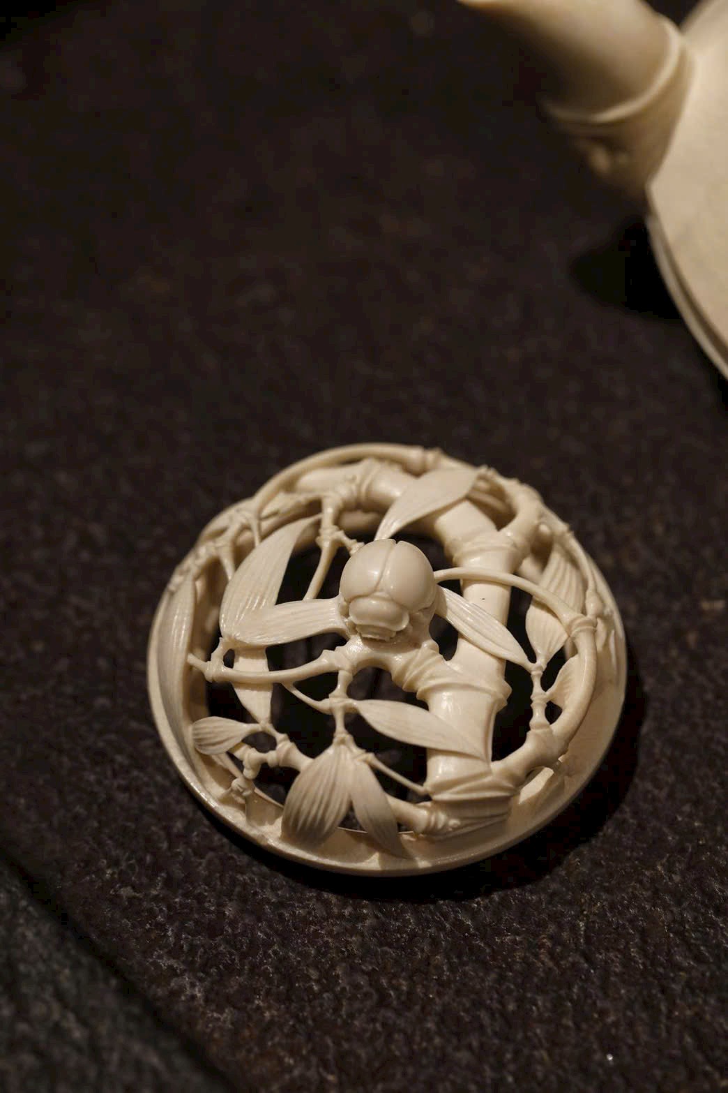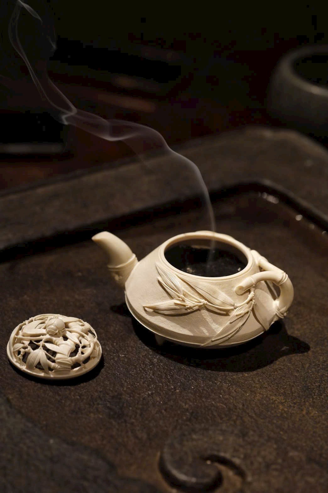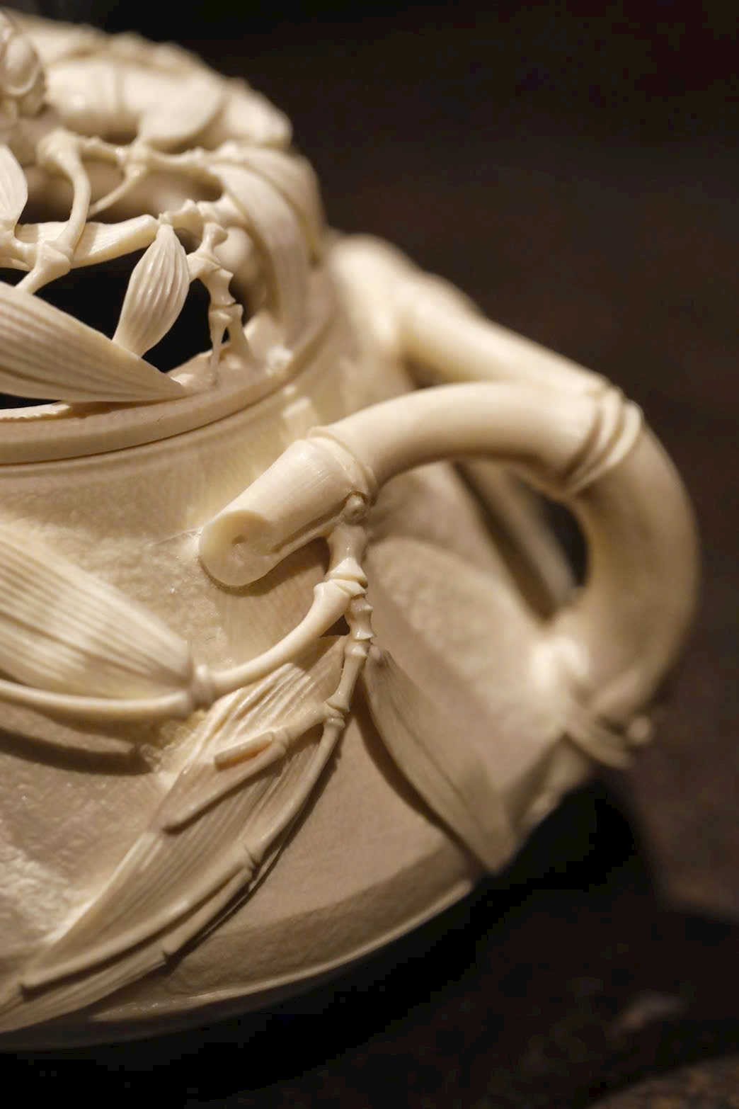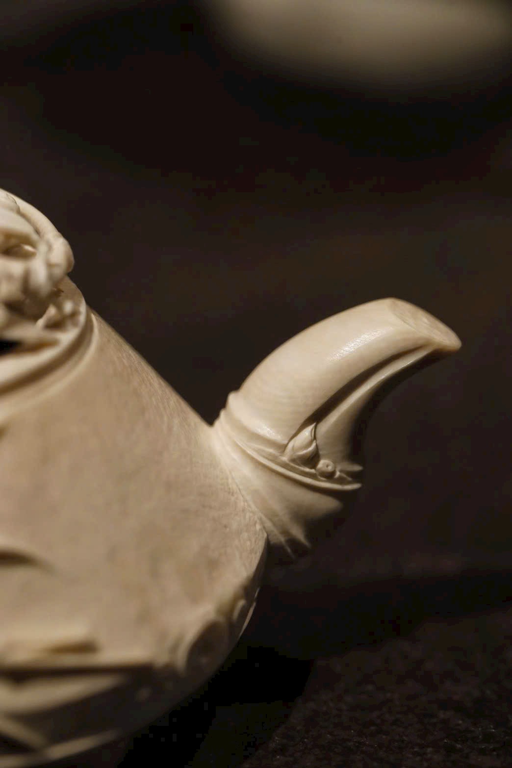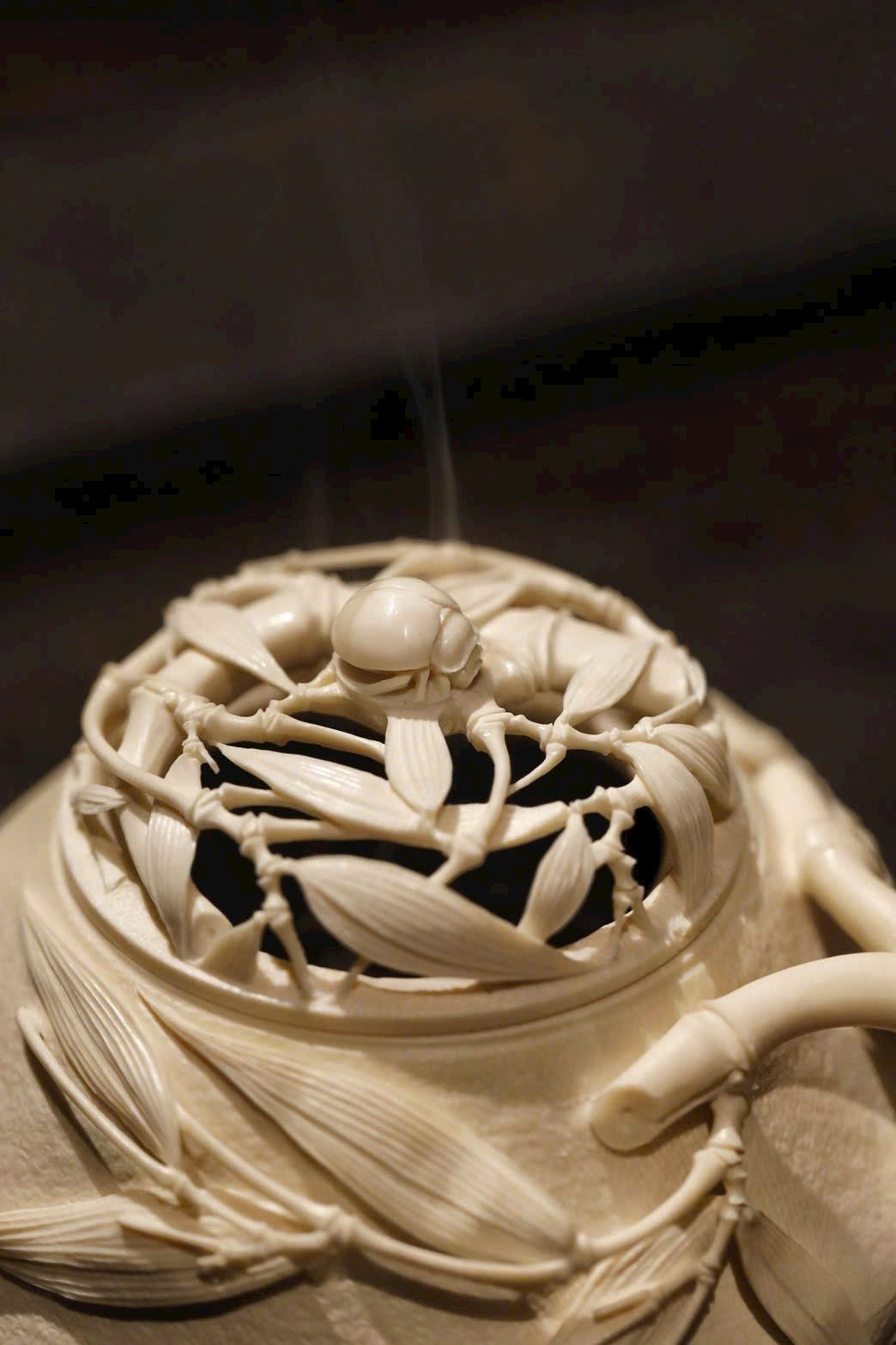 Dùng ng.à mamut làm chất liệu, nghệ nhân chạm khắc nên hình thân trúc sống động: