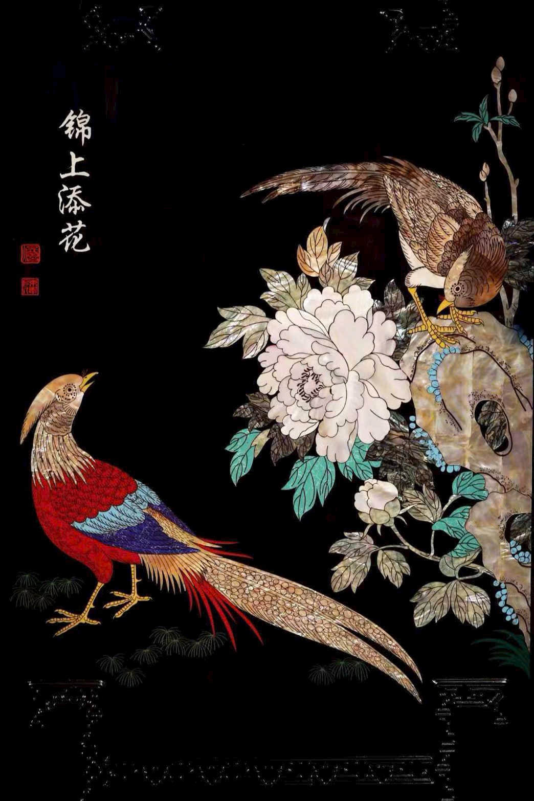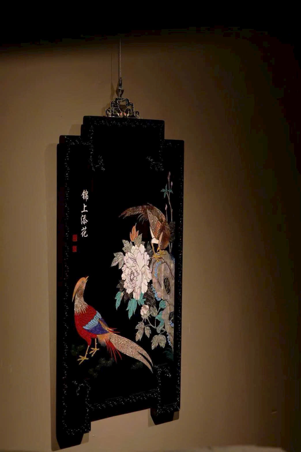 Tử quang đàn khảm xà cừ | Bức bình treo “Cẩm Thượng Thiêm Hoa”
