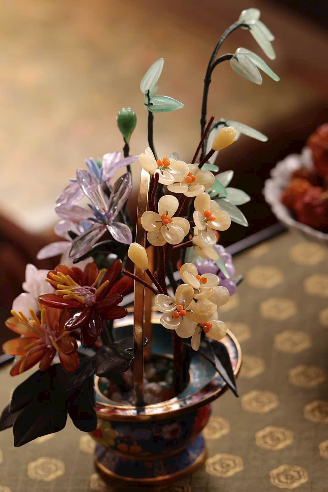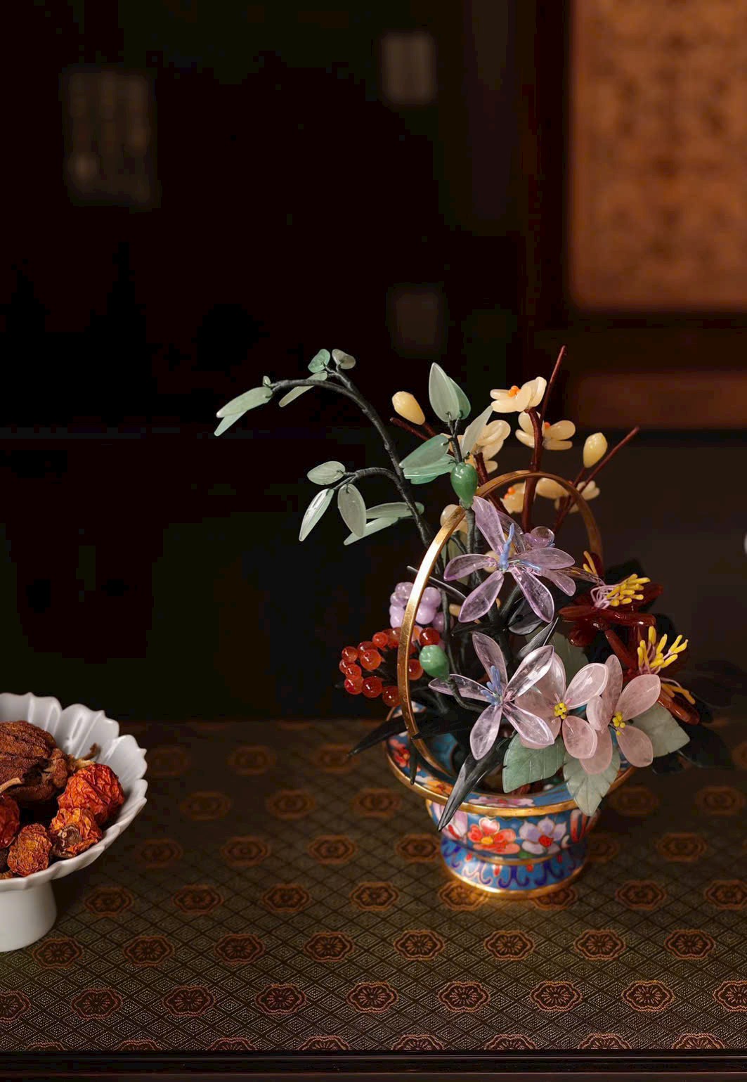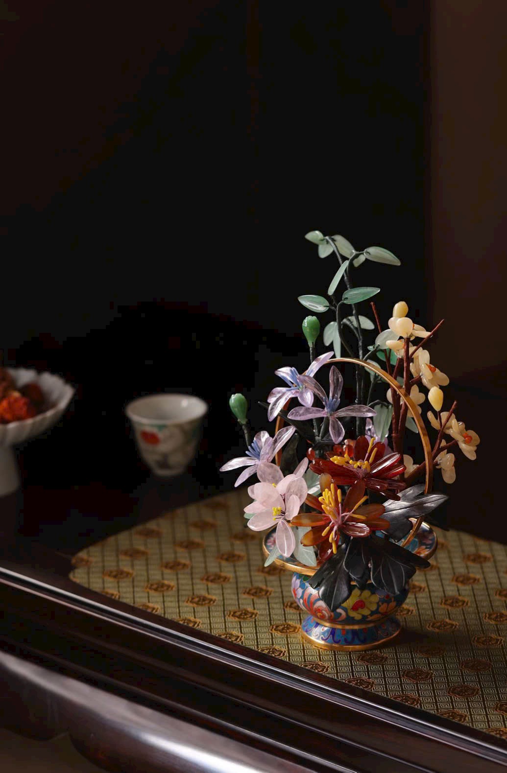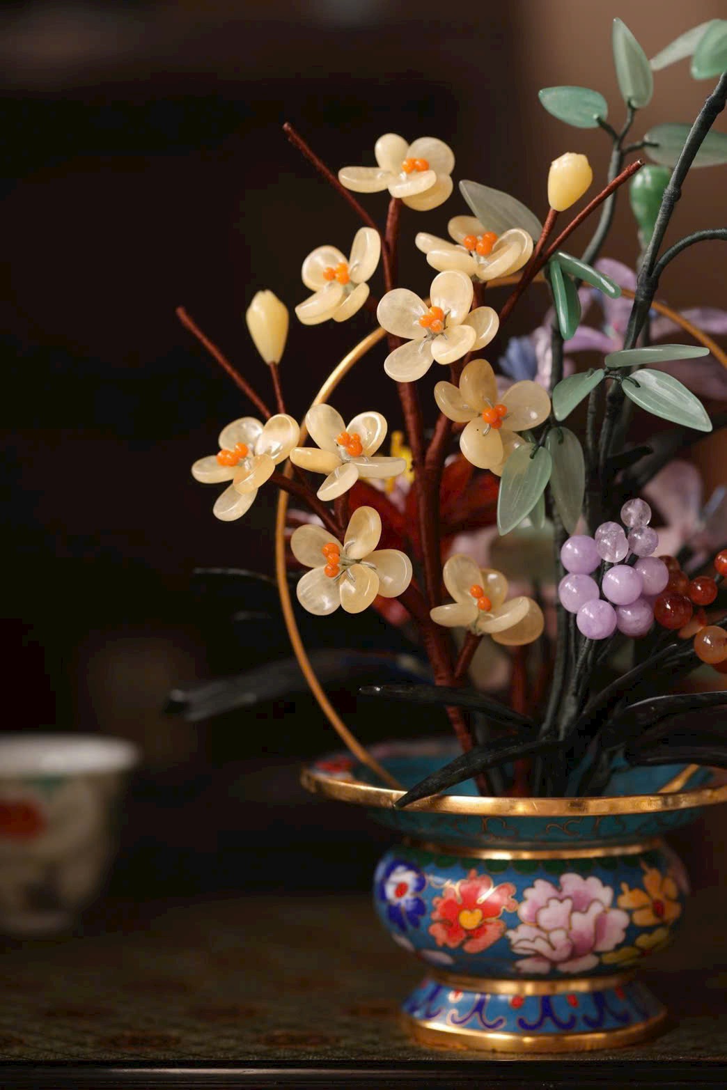 Tác phẩm: “Bước Bước Sinh Hoa” – Cảnh Thái Lam khảm sợi men màu · Chậu hoa ngọc