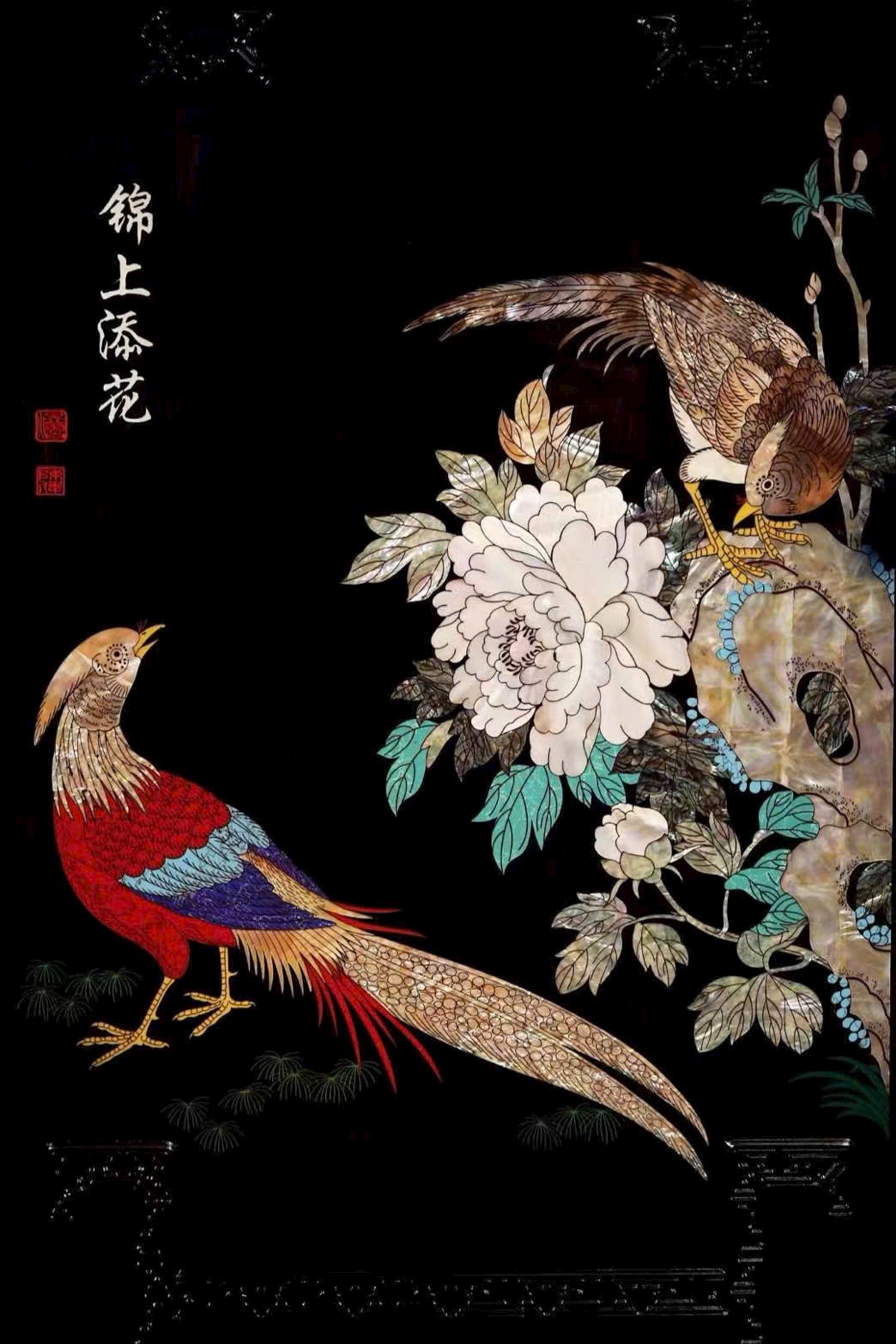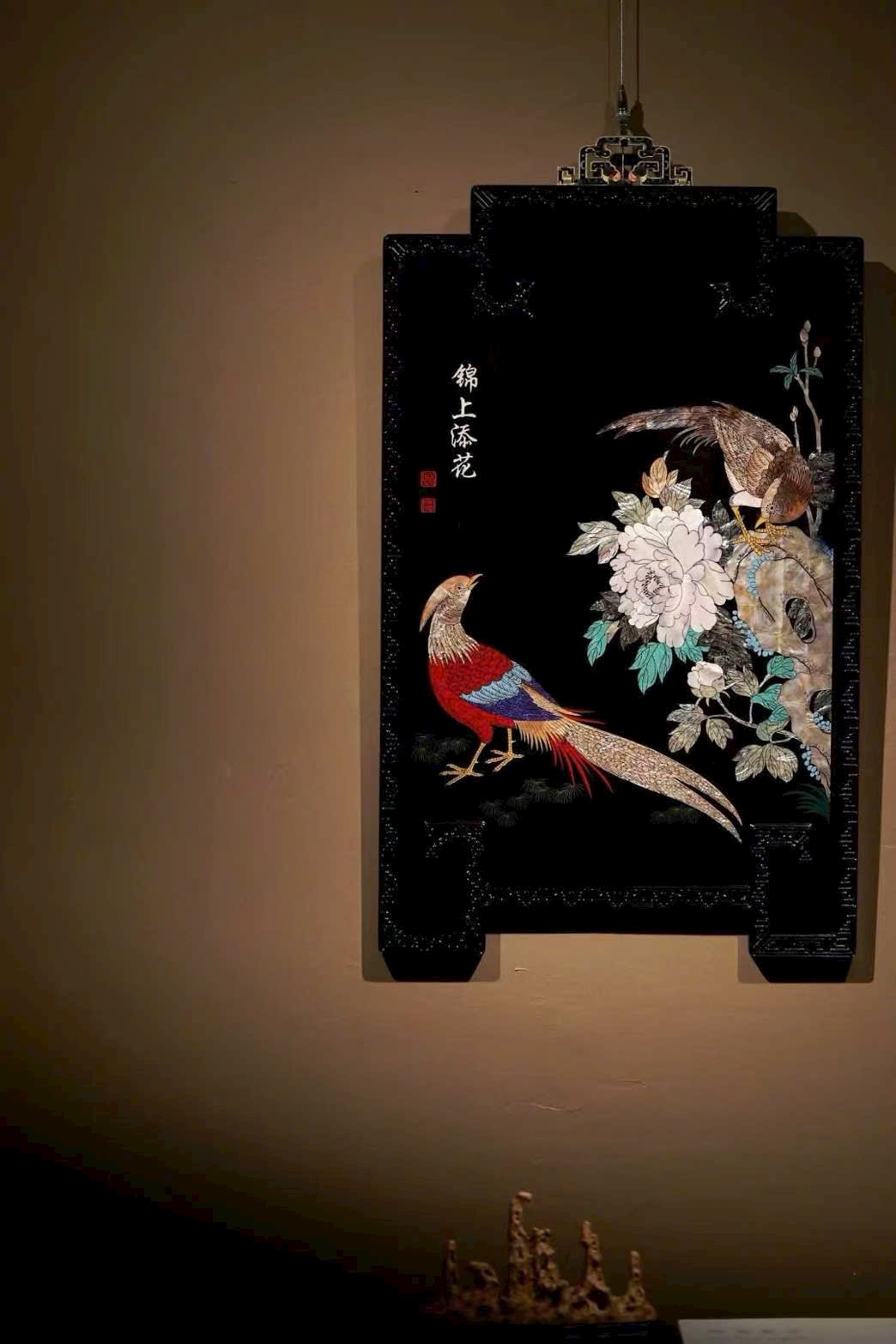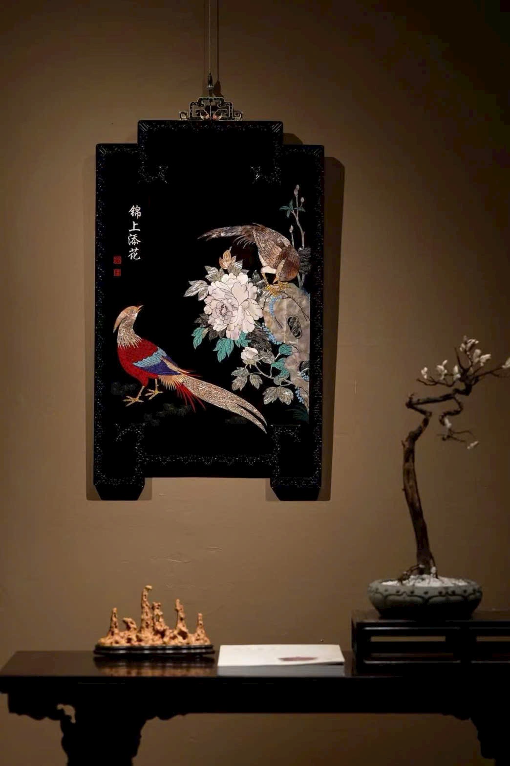 Tử quang đàn khảm xà cừ — “Cẩm Thượng Thiêm Hoa” (Tranh treo)
