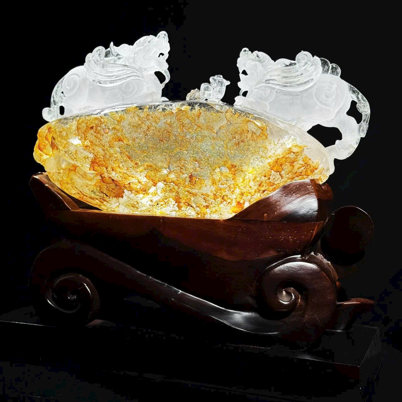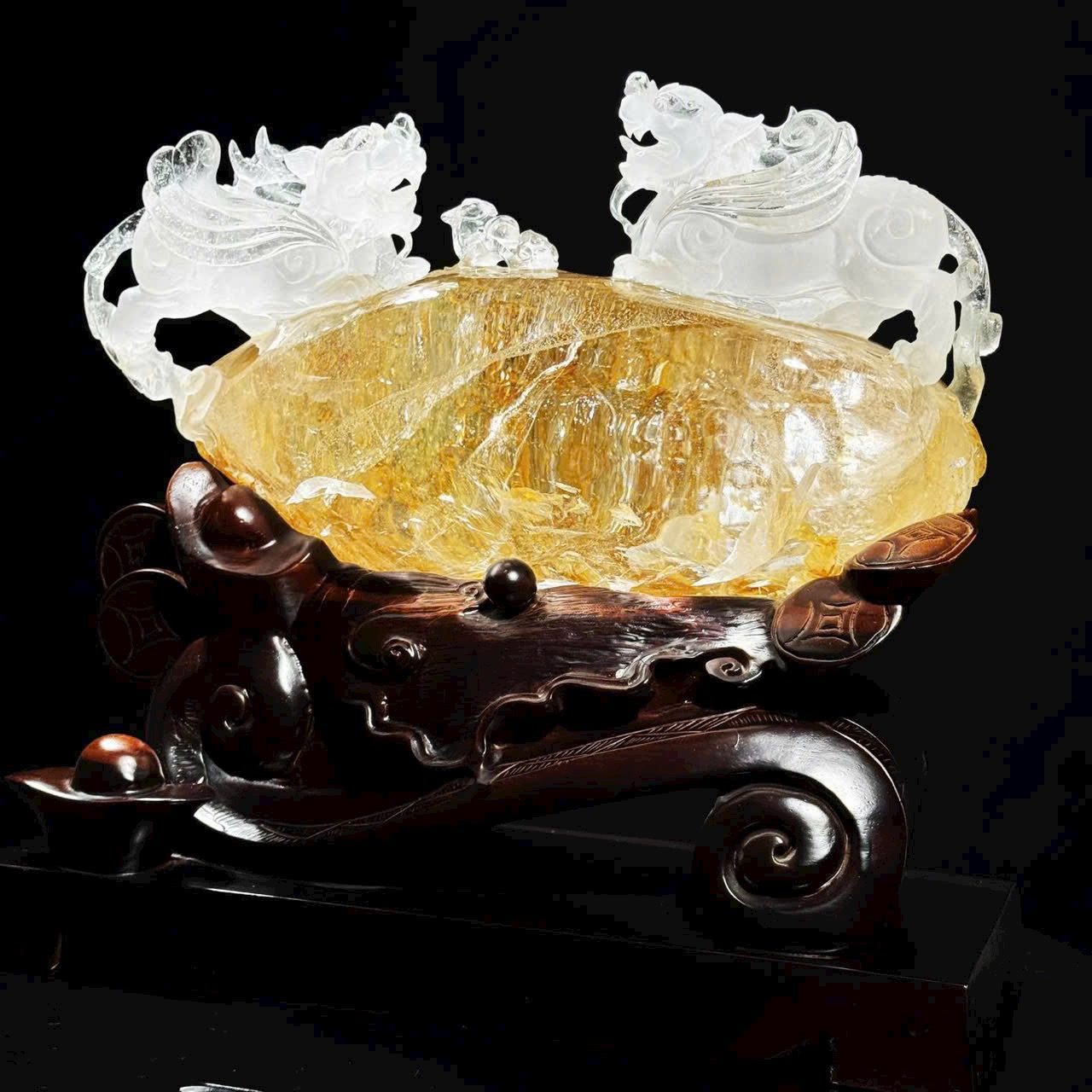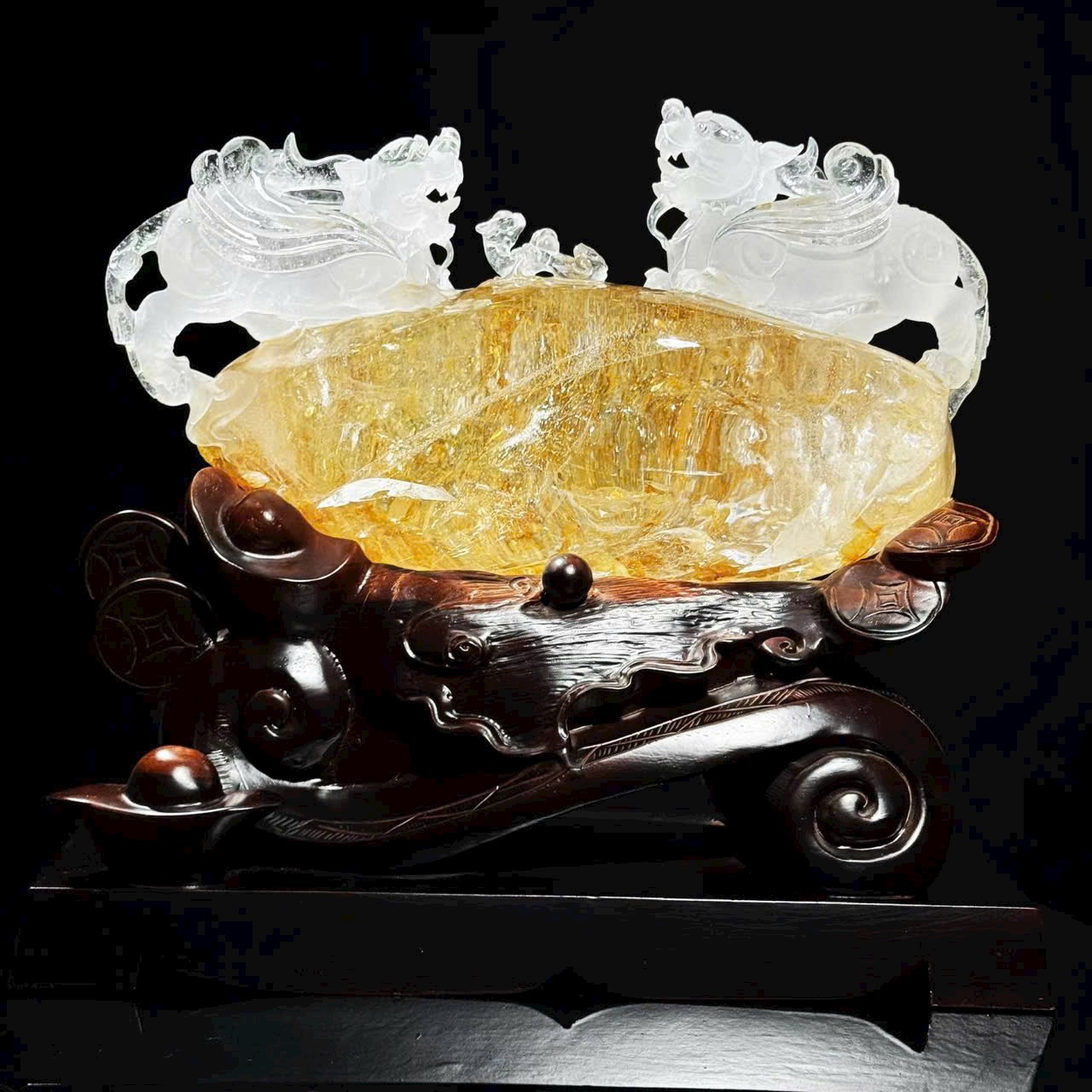 Cặp Tỳ Hưu phi thiên thạch anh trắng hoa keo vàng tự nhiên ✨