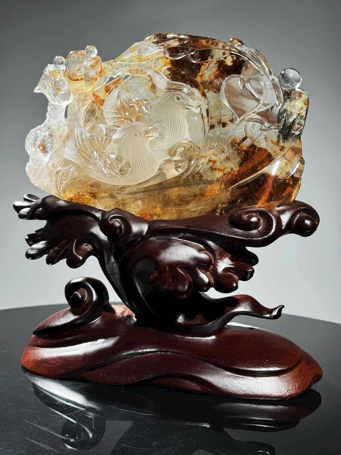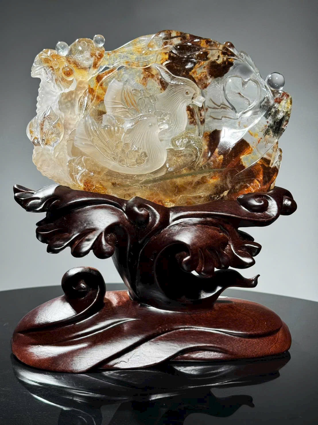 Chất liệu thạch anh trắng tự nhiên có u linh ngũ sắc, tạc hình cặp uyên ương – biểu tượng của tình yêu chung thủy, hạnh phúc lứa đôi và hòa hợp vợ chồng. Rất thích hợp trưng bày trong phòng ngủ hoặc làm quà tặng ý nghĩa cho các cặp đôi.
