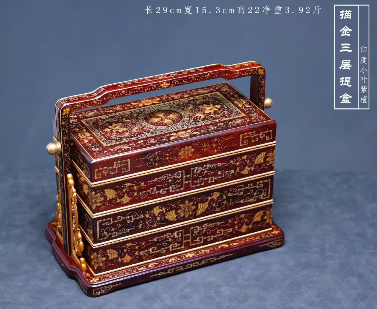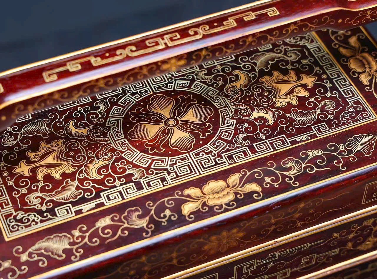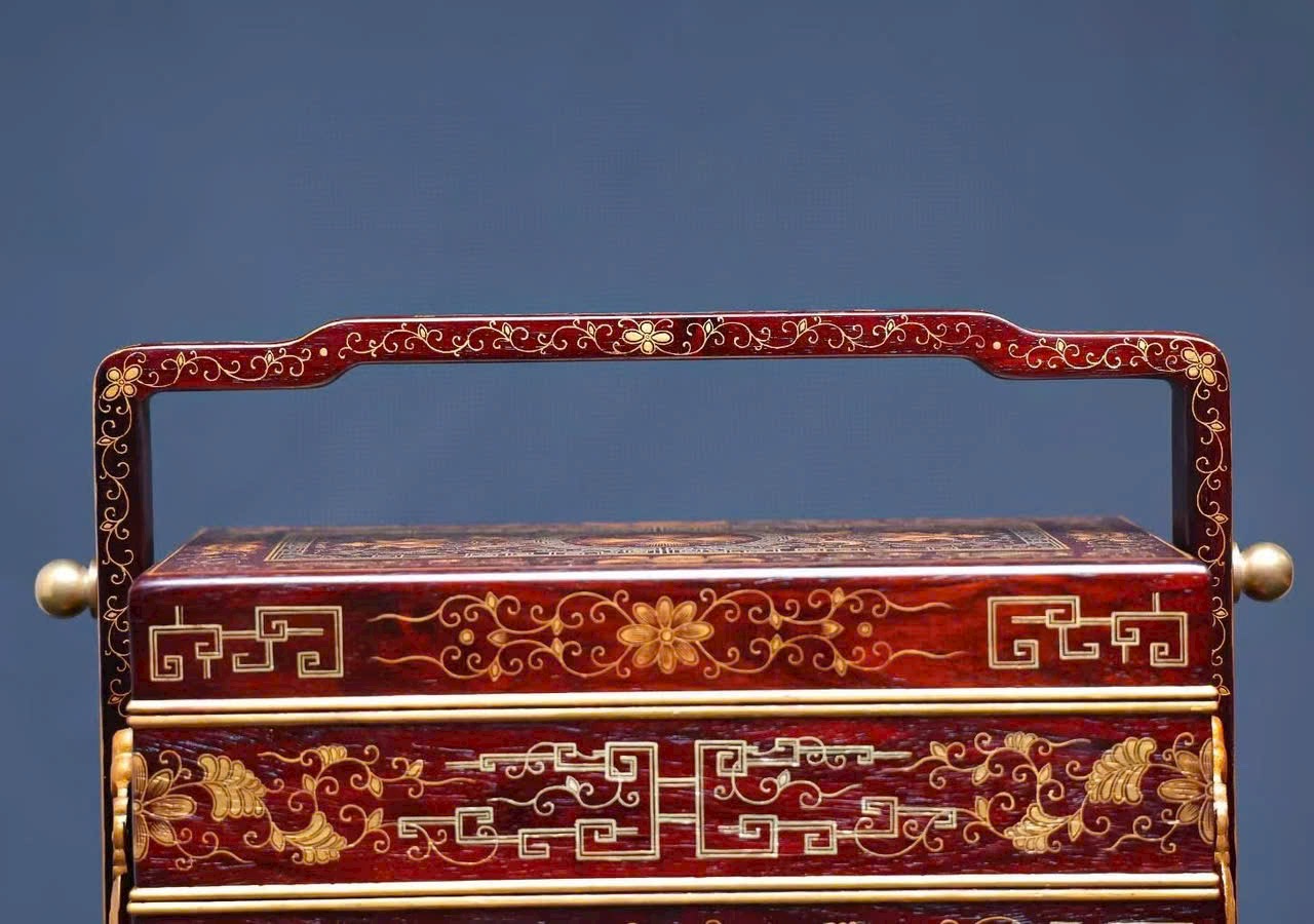 Hộp xách gỗ tử đàn lá nhỏ vẽ vàng "Cát Tường Như Ý"
