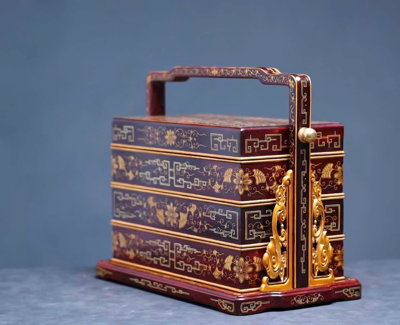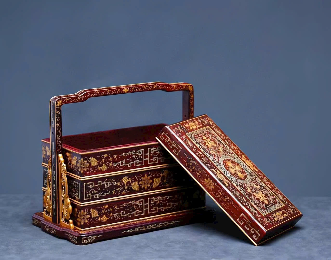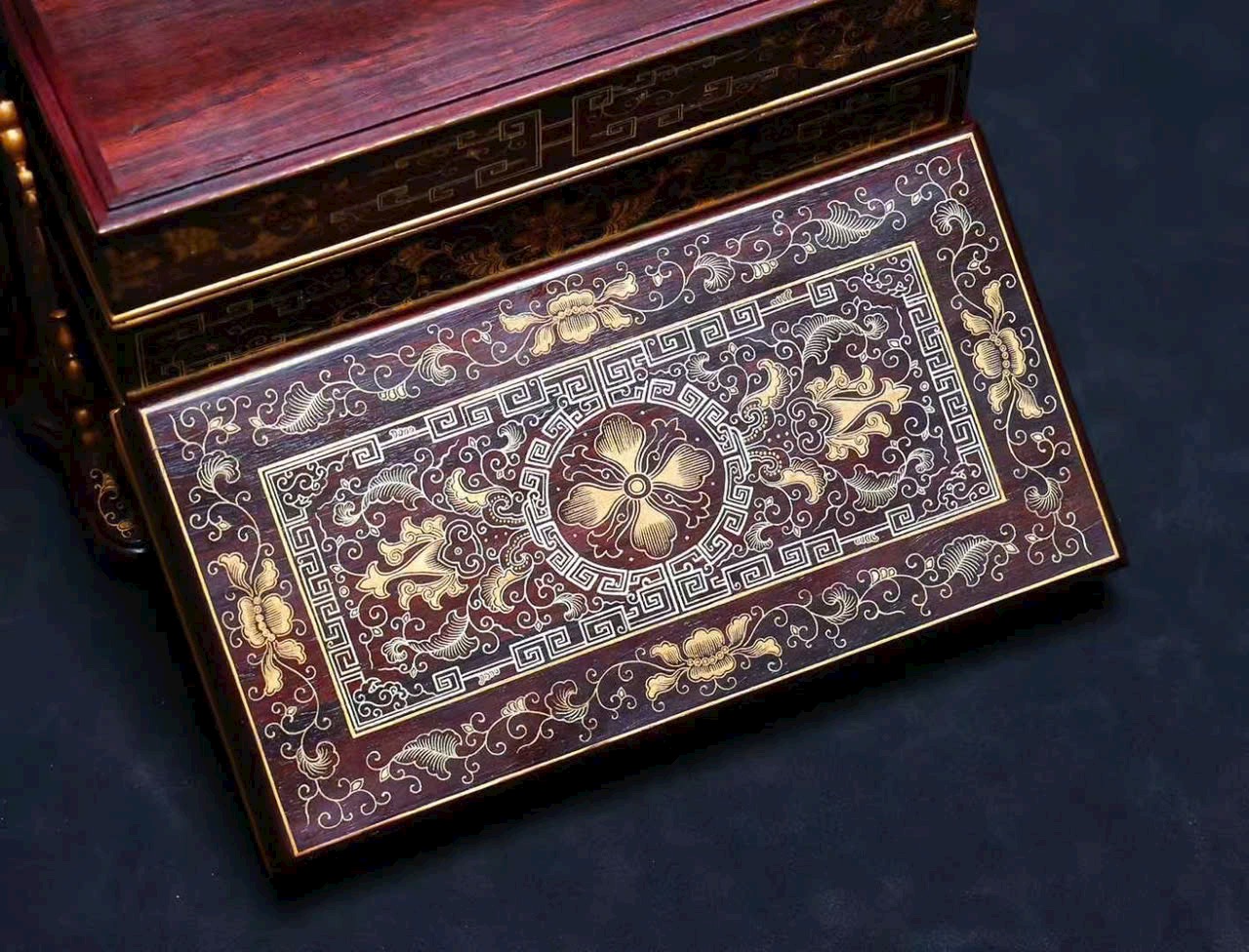 Hộp xách gỗ tử đàn lá nhỏ vẽ vàng "Cát Tường Như Ý"