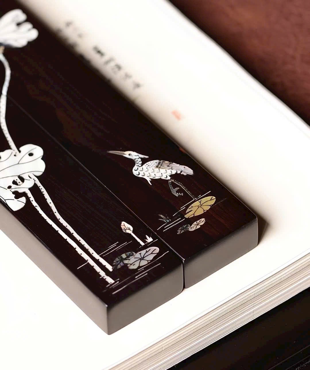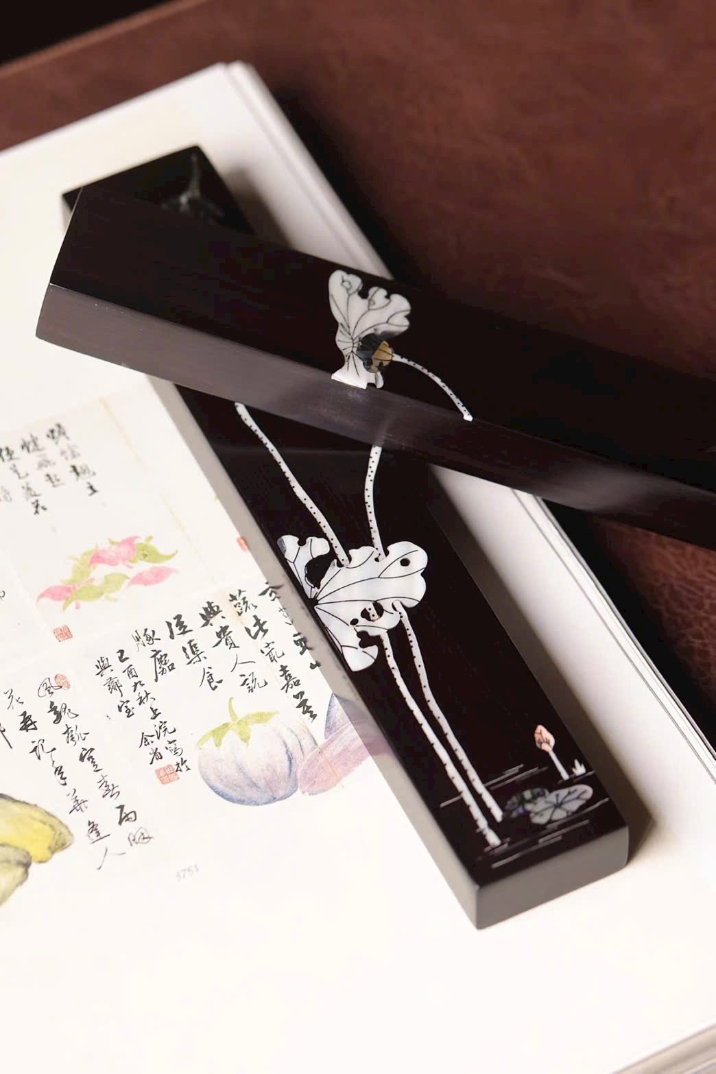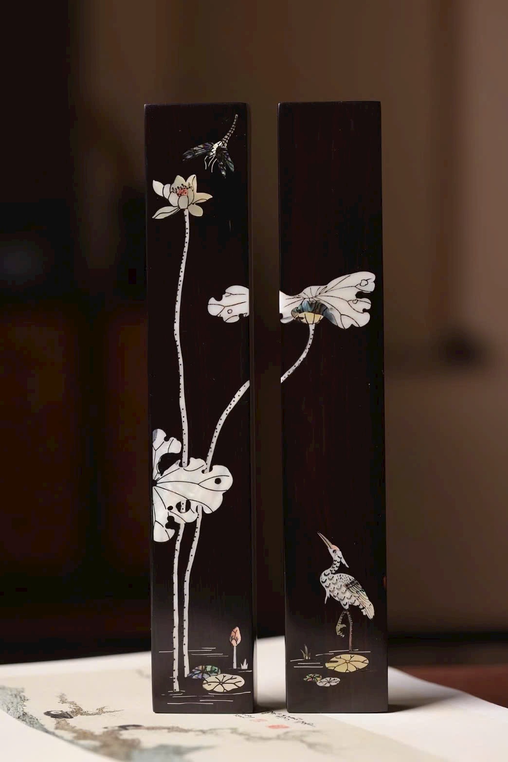 Chặn giấy Gỗ tử đàn quang đàn × khảm xà cừ “Liên khoa thăng tiến”