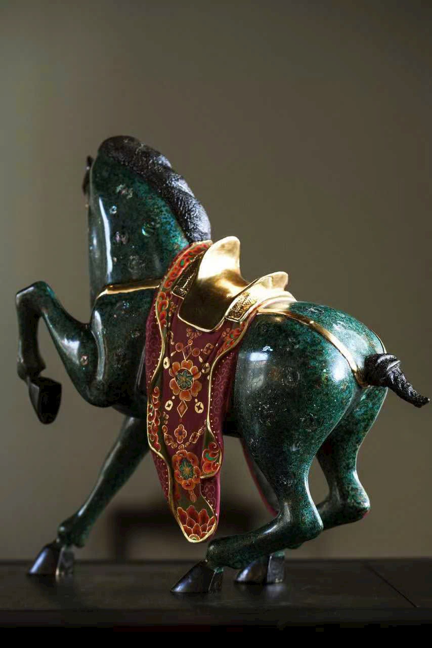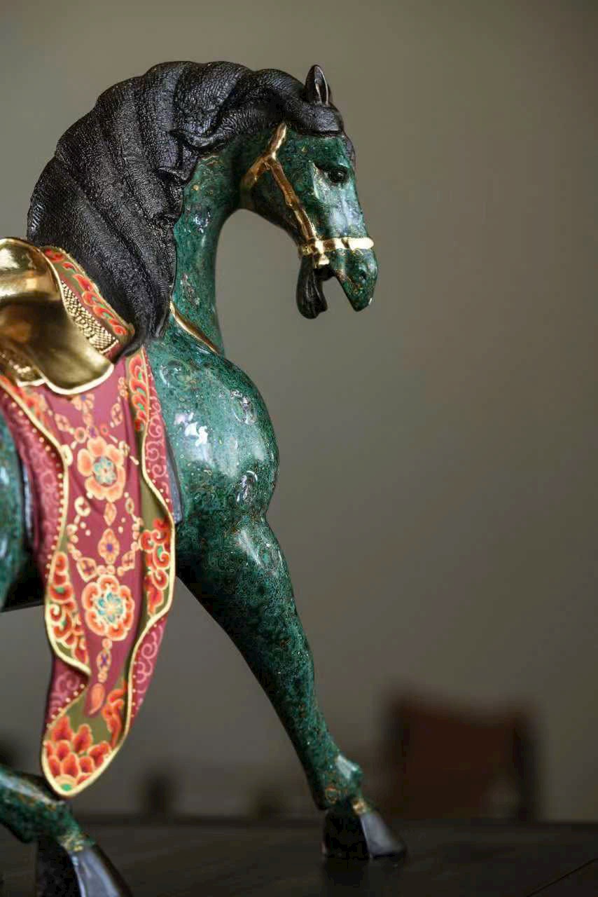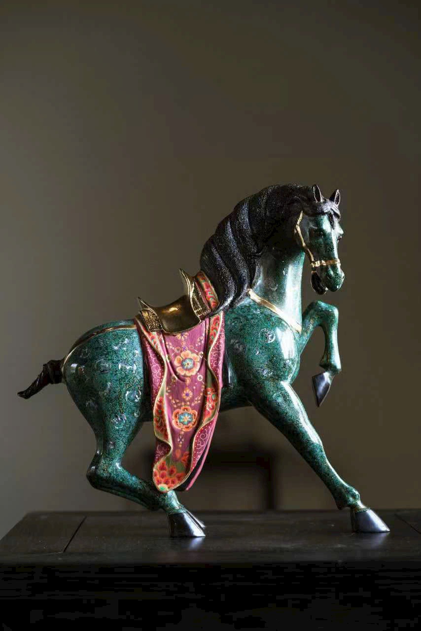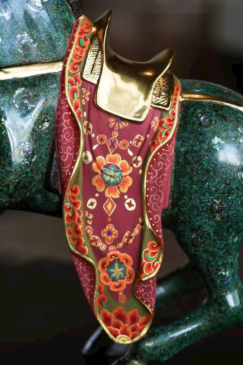Lấy cảm hứng từ khí vận thịnh thế nhà Đường, chiến mã mang dáng vẻ đầy đặn, uy nghi và mạnh mẽ, như bước ra từ Trường An xưa. Thân ngựa đúc bằng đồng thau theo kỹ thuật đúc sáp thất truyền cổ pháp, đường nét sống động, bờm và cơ thể đều ẩn chứa tinh thần thủ công tinh tế của thời Thịnh Đường.