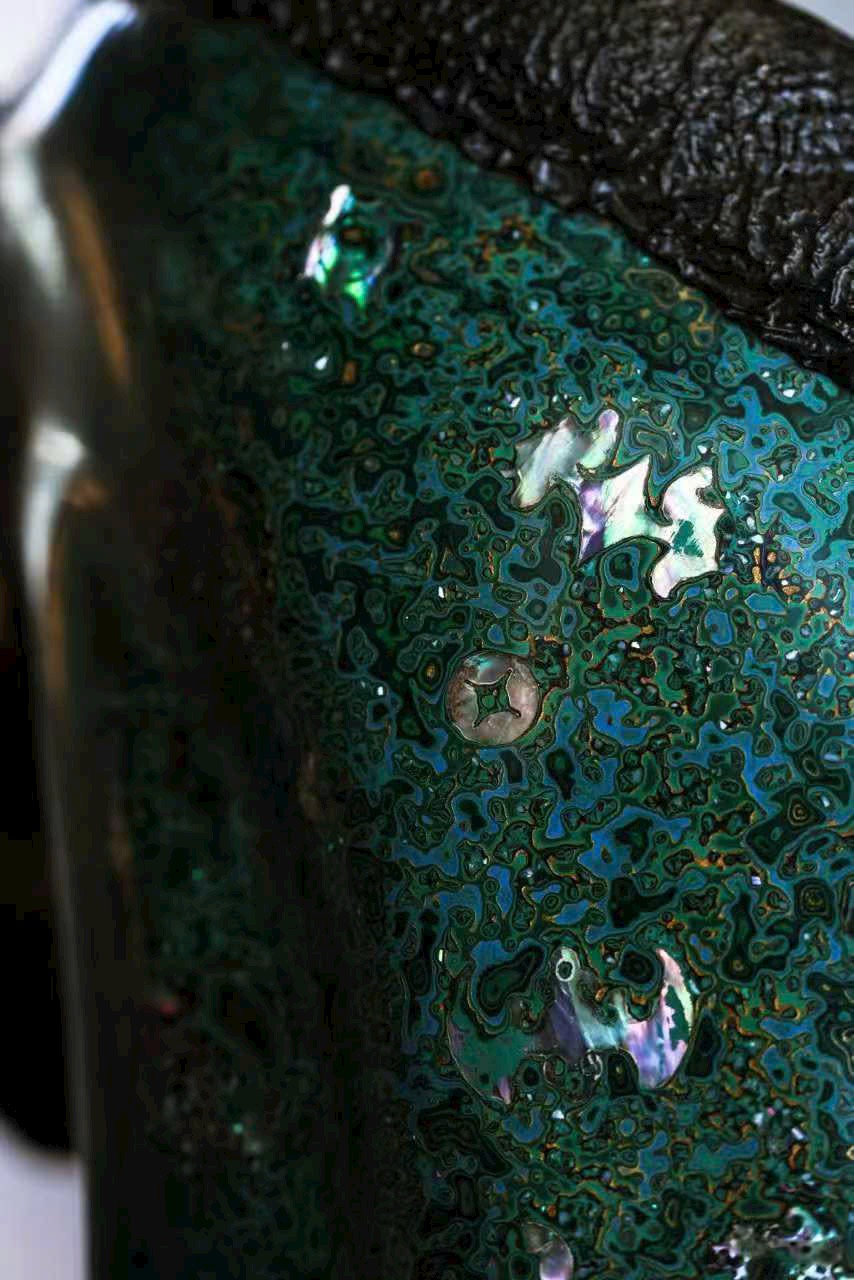 Bề mặt được phủ sơn mài nhiều lớp và đánh bóng tỉ mỉ, tạo nên sắc hổ phách ấm nhuận, sang trọng mà trầm tĩnh. Tác phẩm vừa mang khí thế chiến mã kim qua thiết mã, vừa toát lên vẻ thanh nhã khi trưng bày trên bàn.