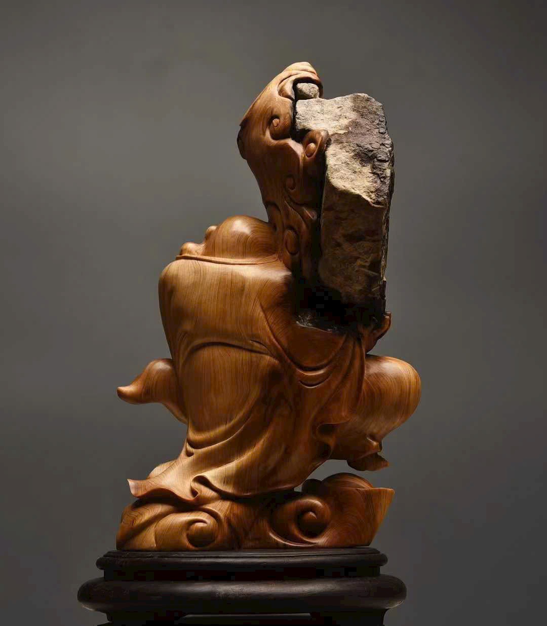 Gỗ lũa nhai bách ôm đá tự nhiên cực đẹp, thơm nức mũi, hàng liền khối nghệ nhân chế tác