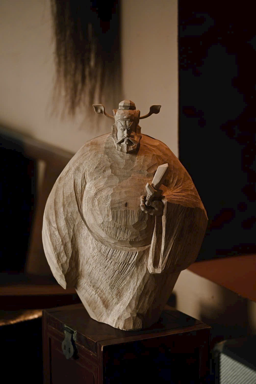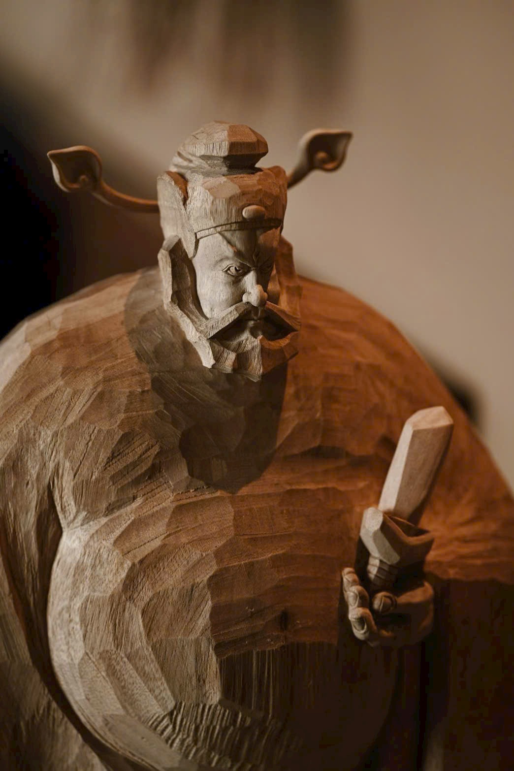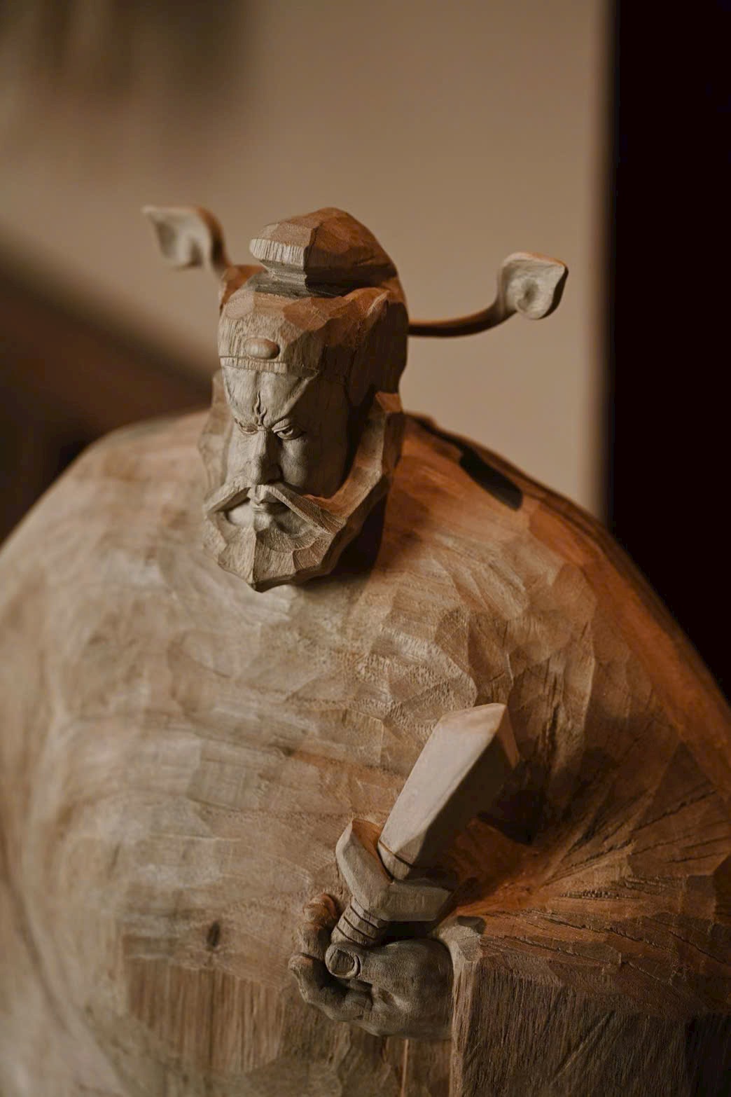 Người thợ thủ công lấy dao làm bút, chỉ với vài nhát khắc tinh luyện đã khắc họa nên gương mặt sắt và râu rậm của Chung Quỳ.