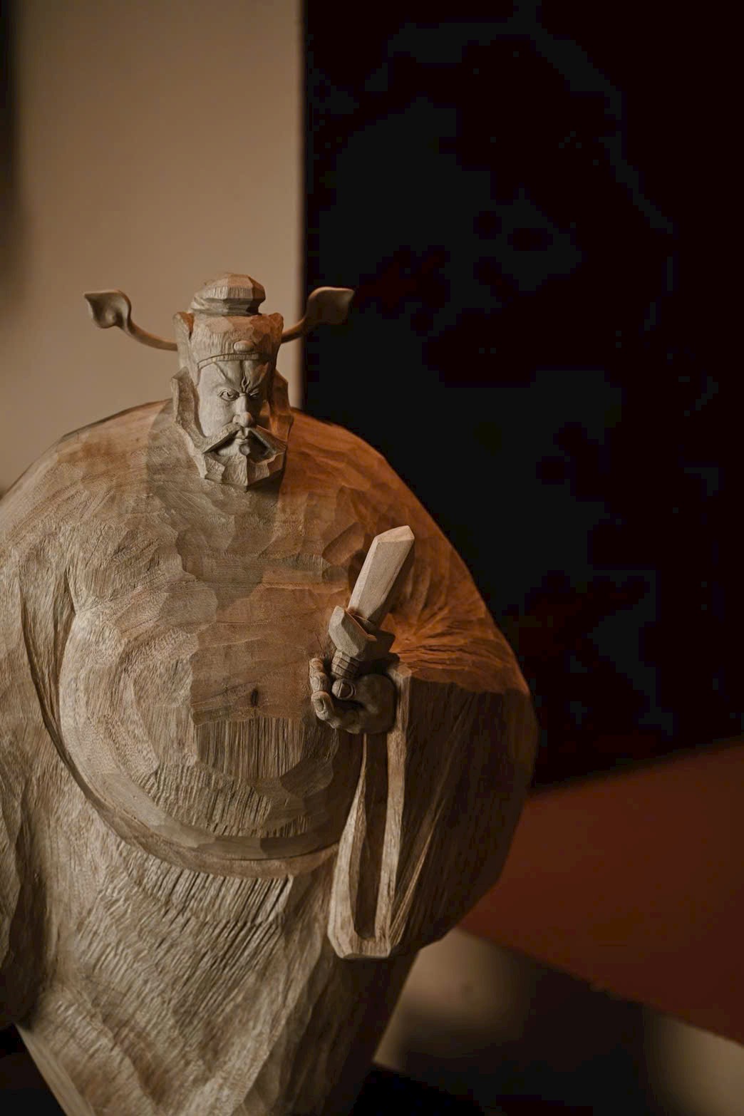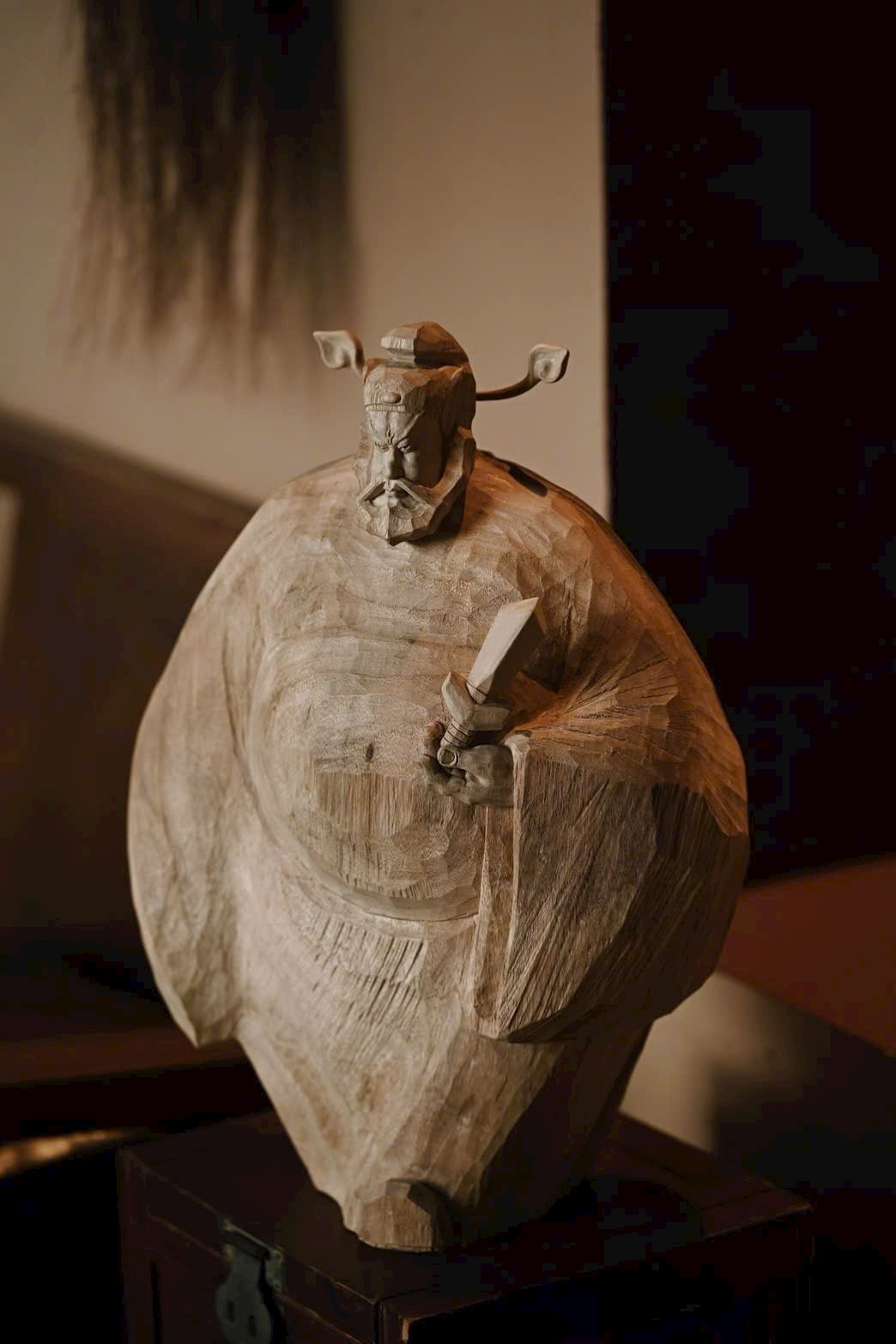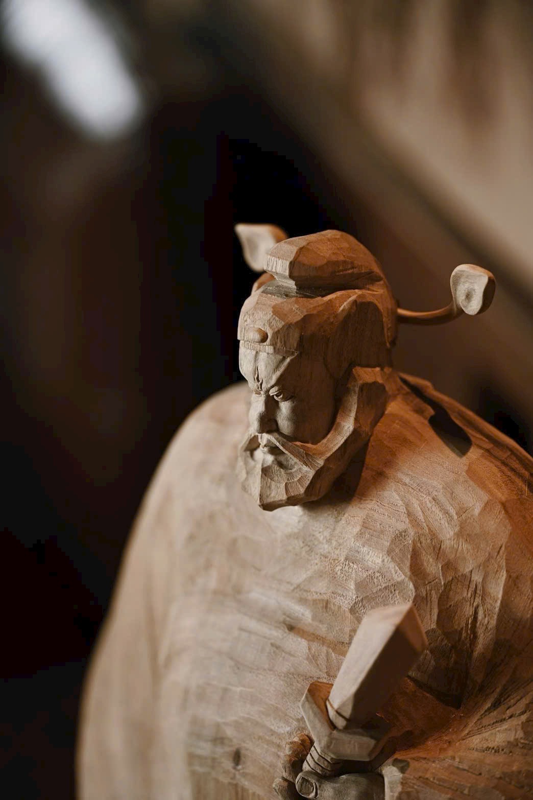 Người thợ thủ công lấy dao làm bút, chỉ với vài nhát khắc tinh luyện đã khắc họa nên gương mặt sắt và râu rậm của Chung Quỳ.