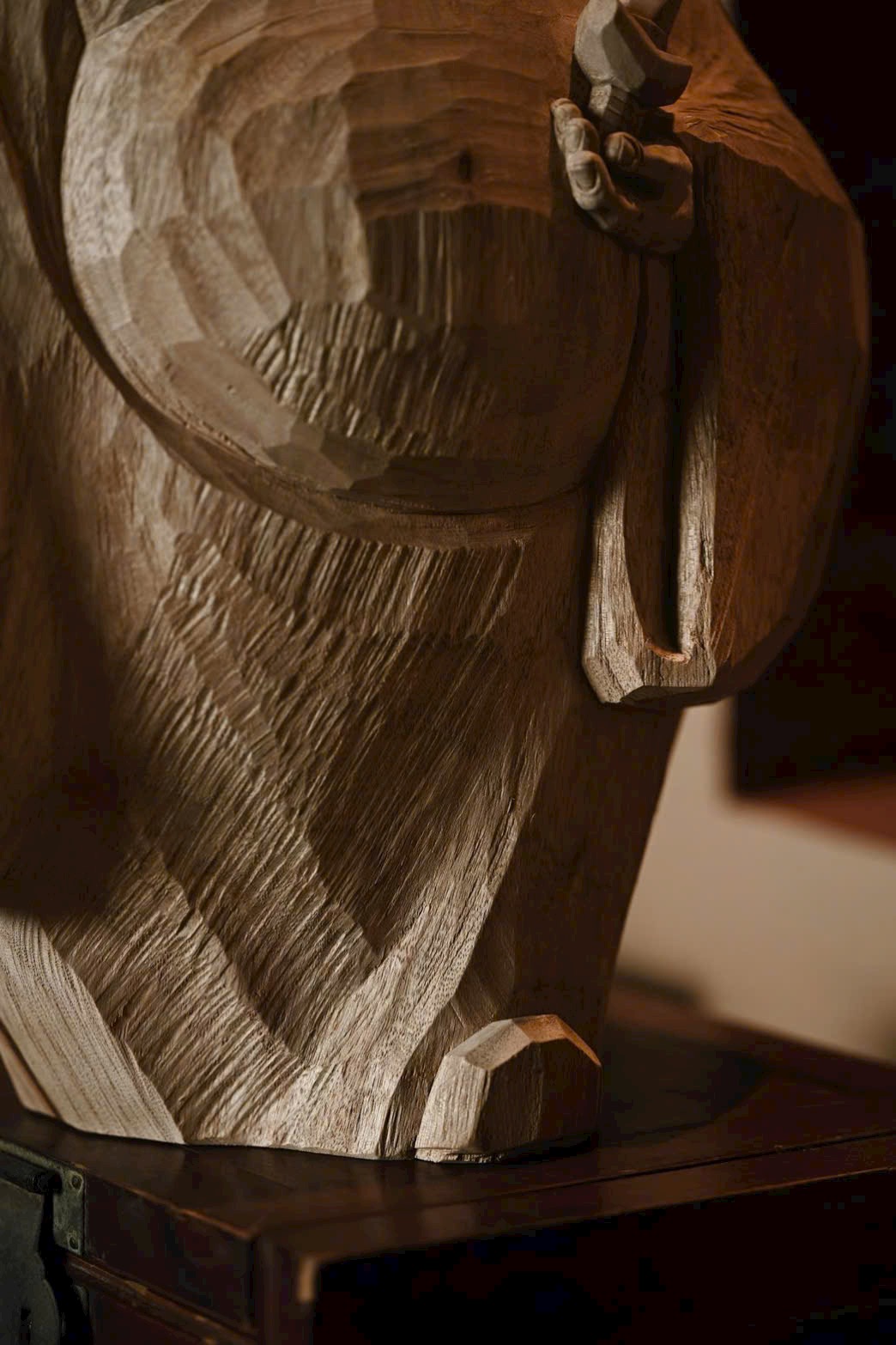 Một tấm áo rộng thùng thình bao bọc hơi thở của nghệ thuật truyền thống, từng đường vân gỗ đều là chú giải cho tấm lòng người thợ.