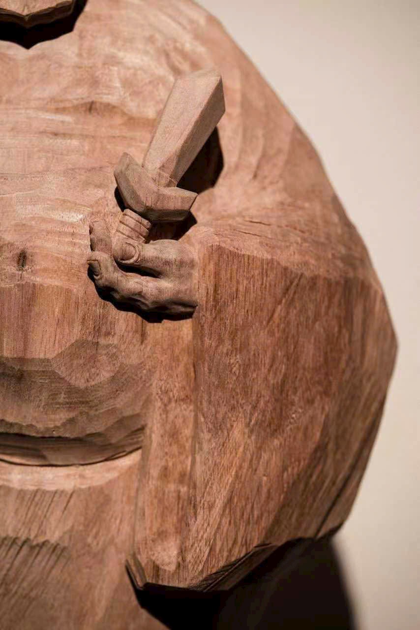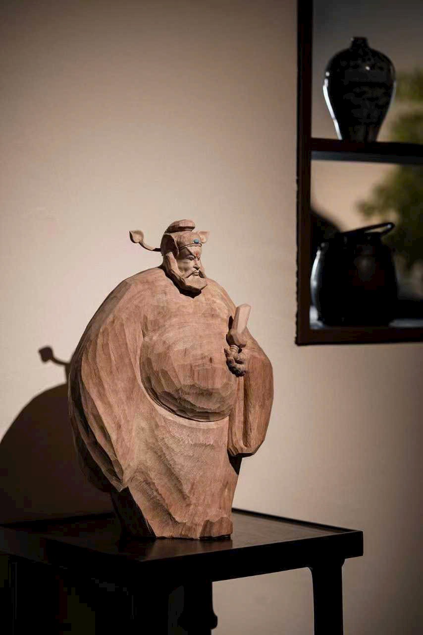 Vân gỗ già dặn, cứng cáp như tùng. Điêu khắc Chung Quỳ đứng uy nghi, mắt giận trừng tà khí. Râu xoắn tung bay phá trừ yêu quái, tay áo cuộn mở sinh mây gió. Đặt tại sảnh hoặc huyền quan, có thể trấn trạch an gia, chính khí lẫm liệt.