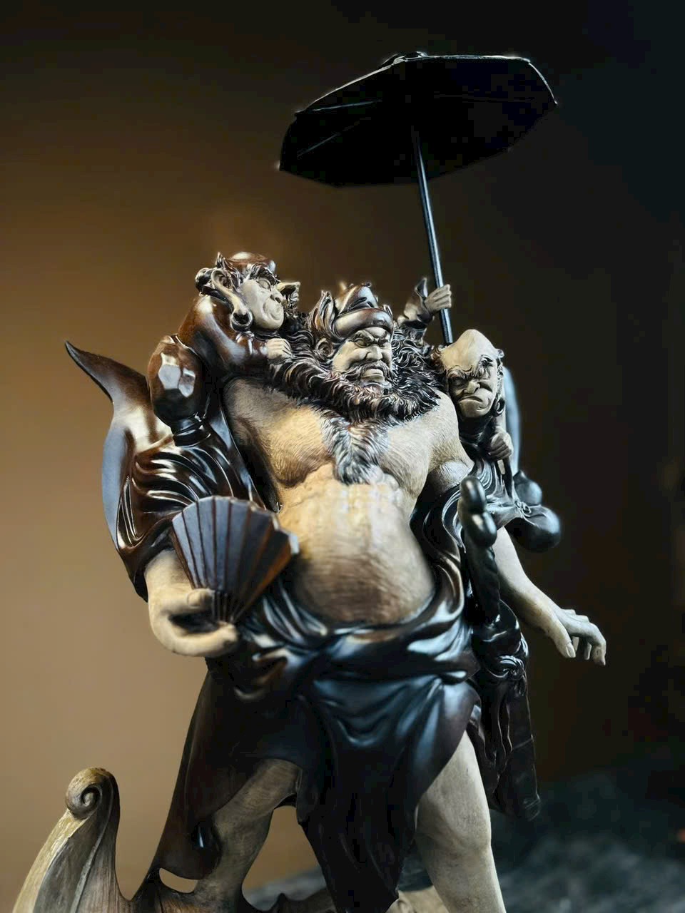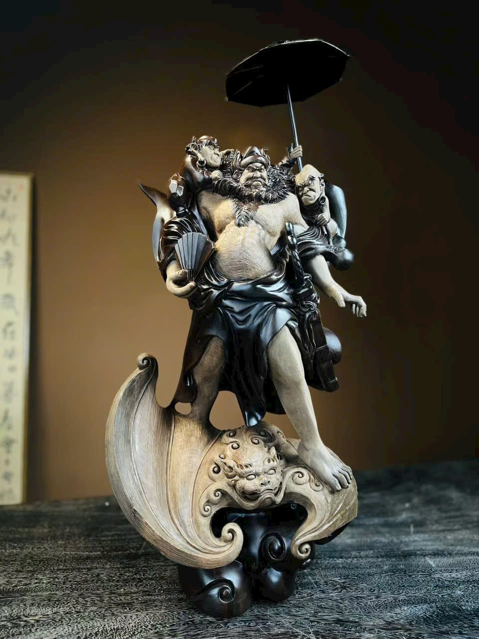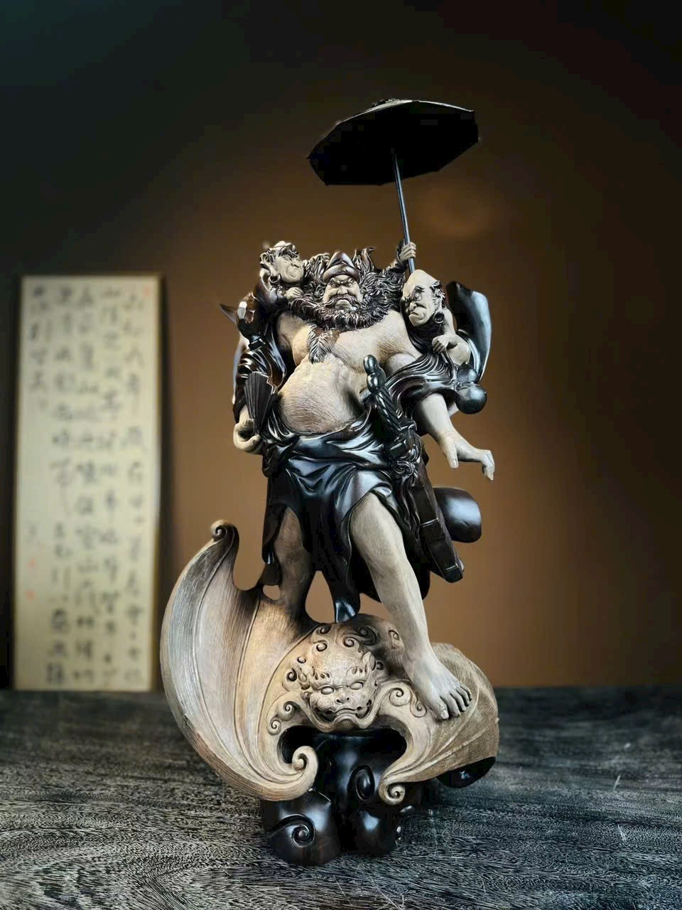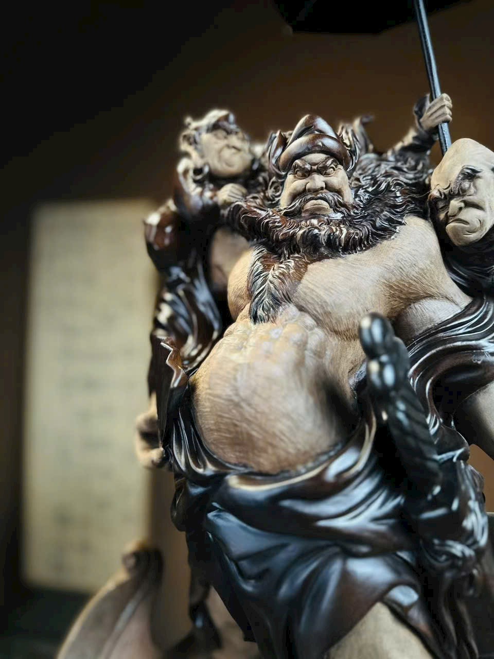 Tượng gỗ âm trầm tuyển chọn, tạo hình thần thái mạnh mẽ – trừ tà, chiêu phúc. Chế tác tinh xảo, mang đậm khí chất hộ gia bảo hộ.