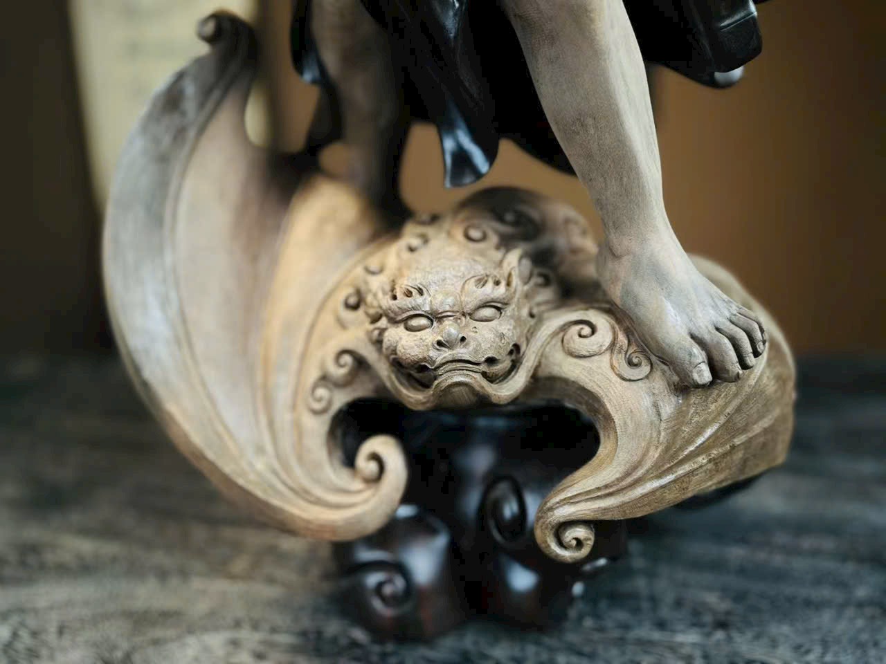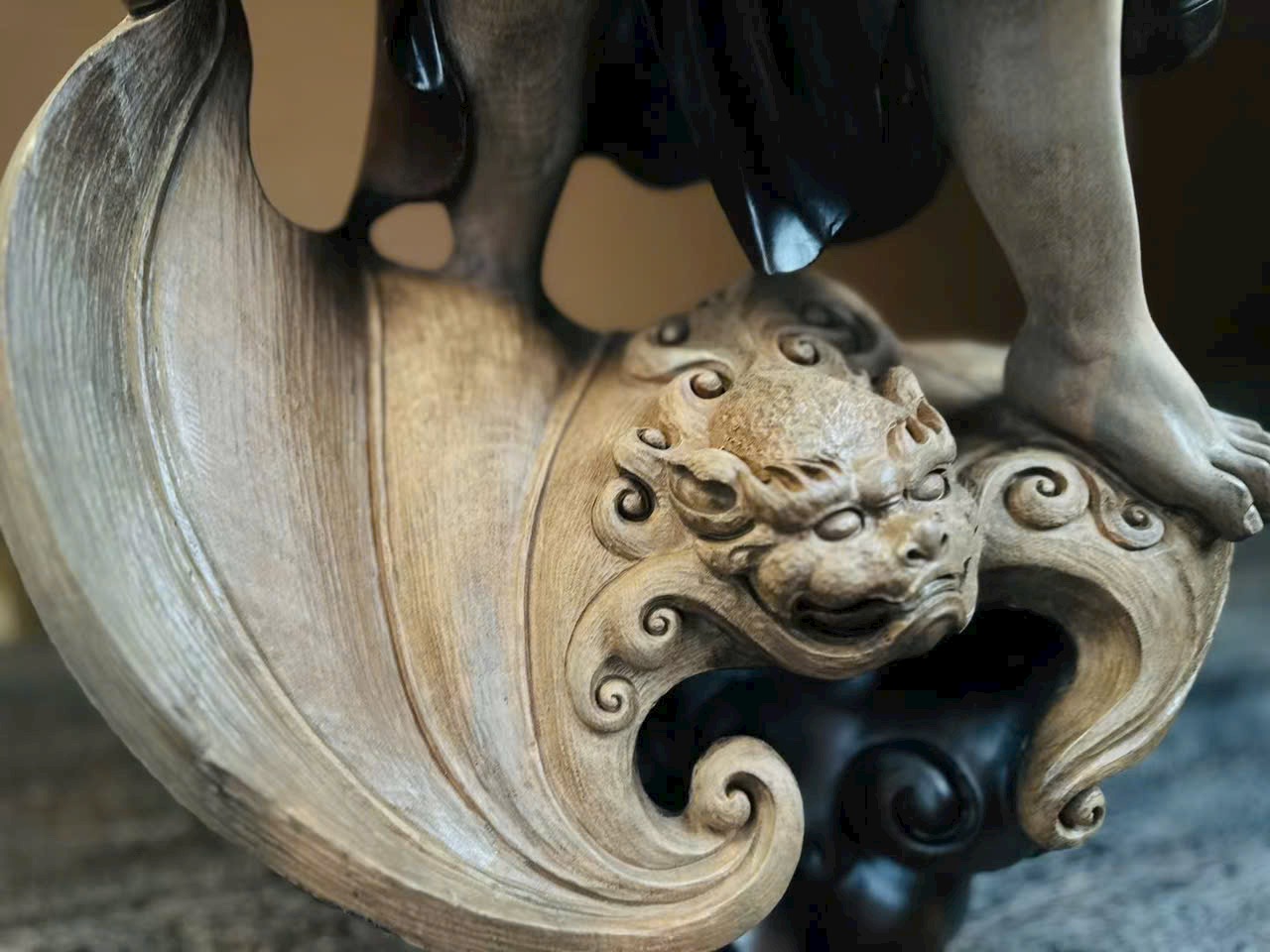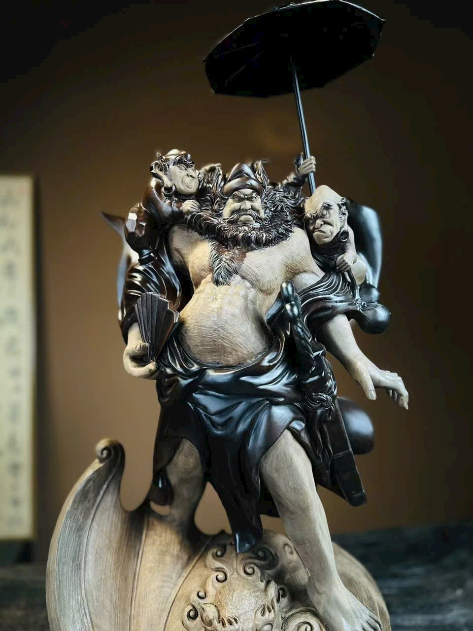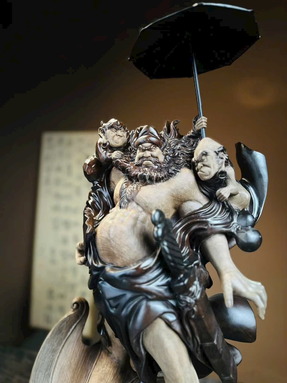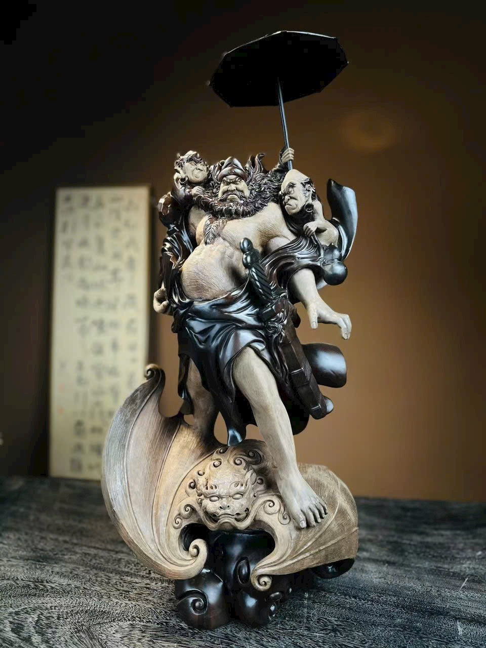 Tượng gỗ âm trầm tuyển chọn, tạo hình thần thái mạnh mẽ – trừ tà, chiêu phúc. Chế tác tinh xảo, mang đậm khí chất hộ gia bảo hộ.