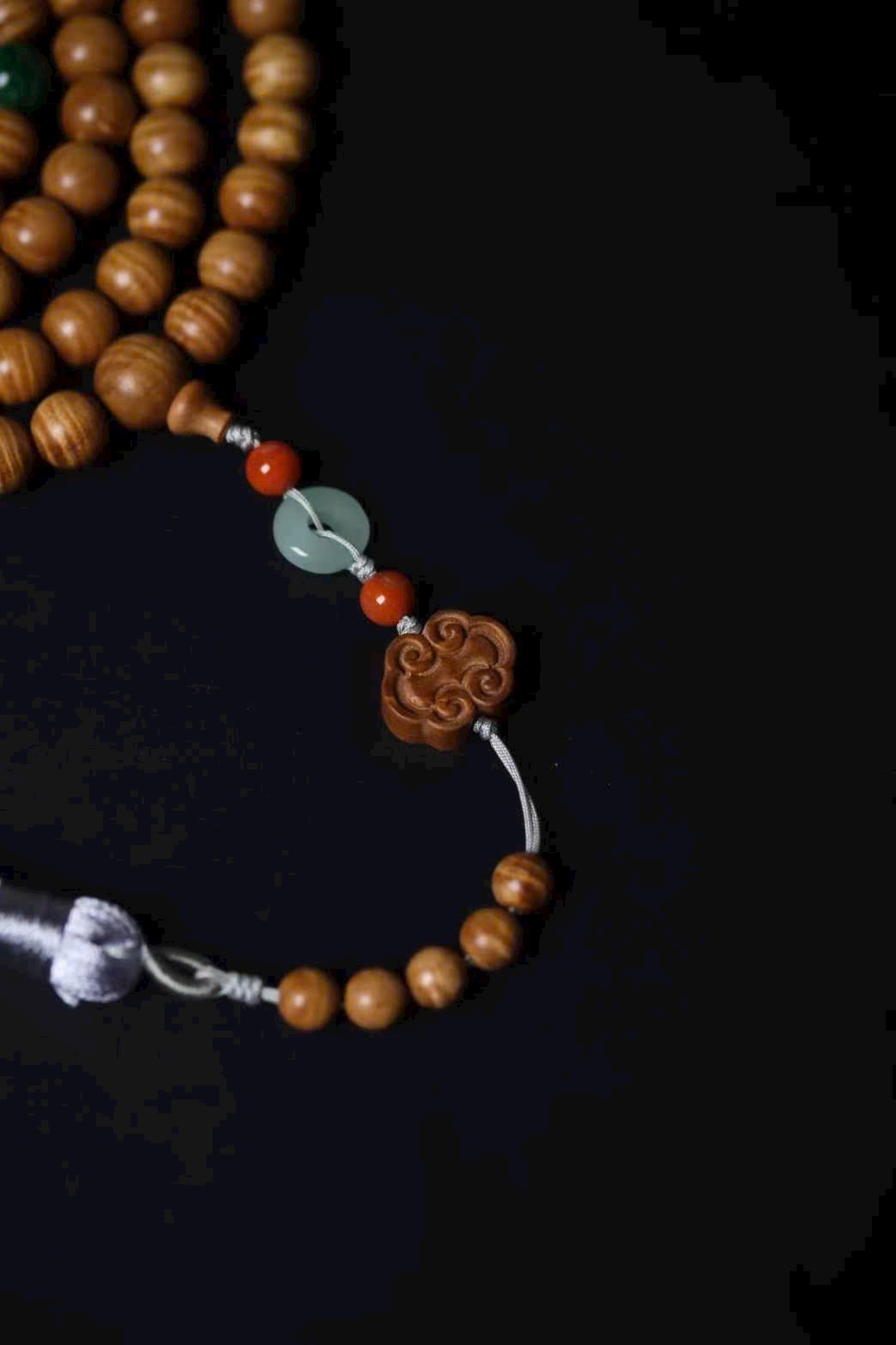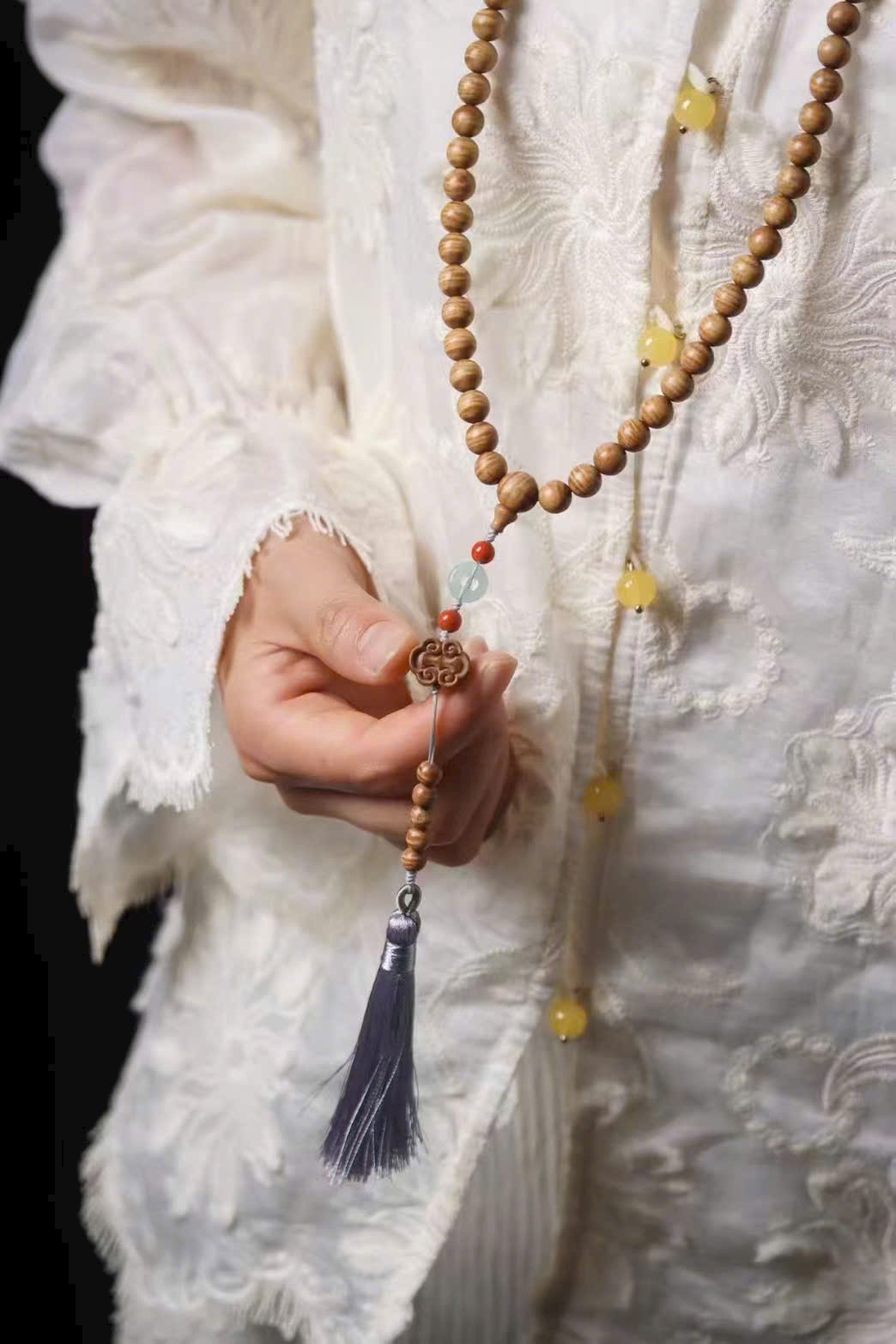 Gỗ đàn hương tỏa hương trầm mặc, đá sắc ẩn tình sâu lắng, tua rủ ngân nga nhịp điệu, tựa nhã vật bước ra từ tranh cổ phong.