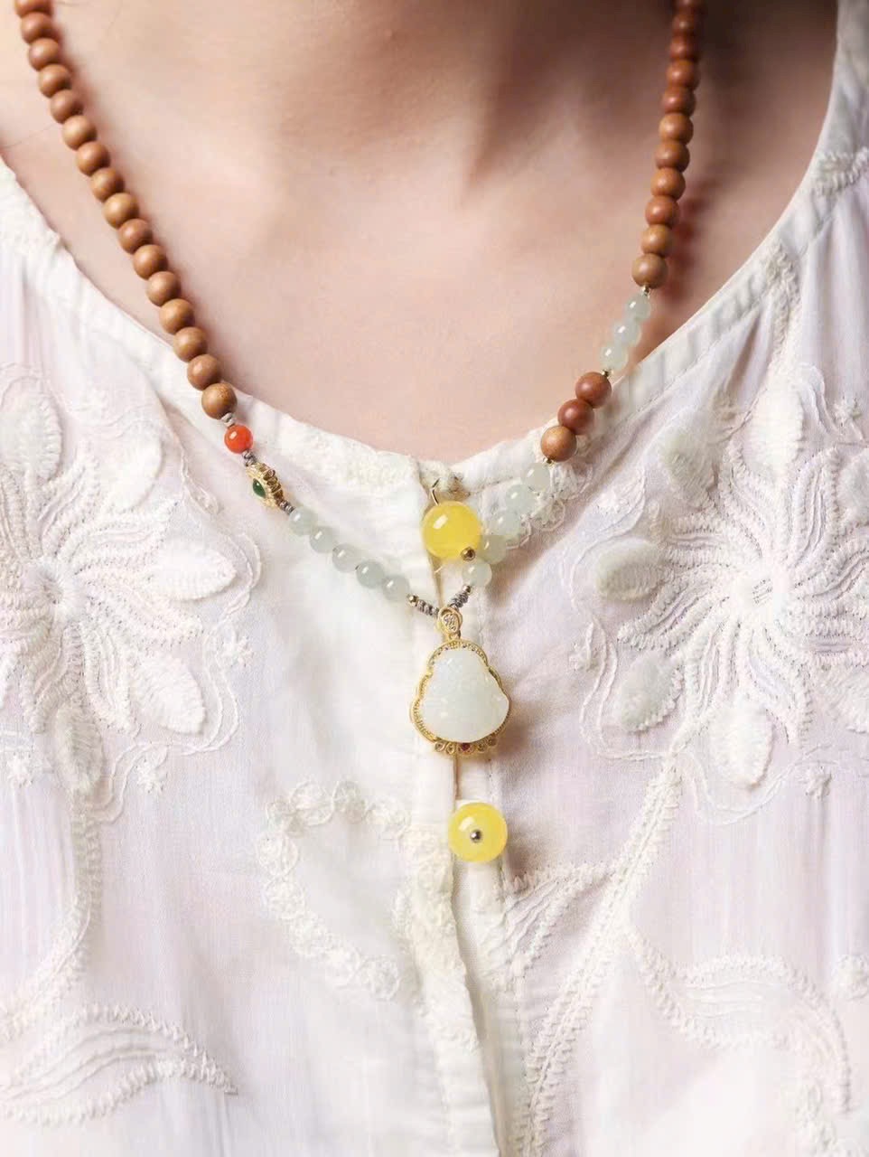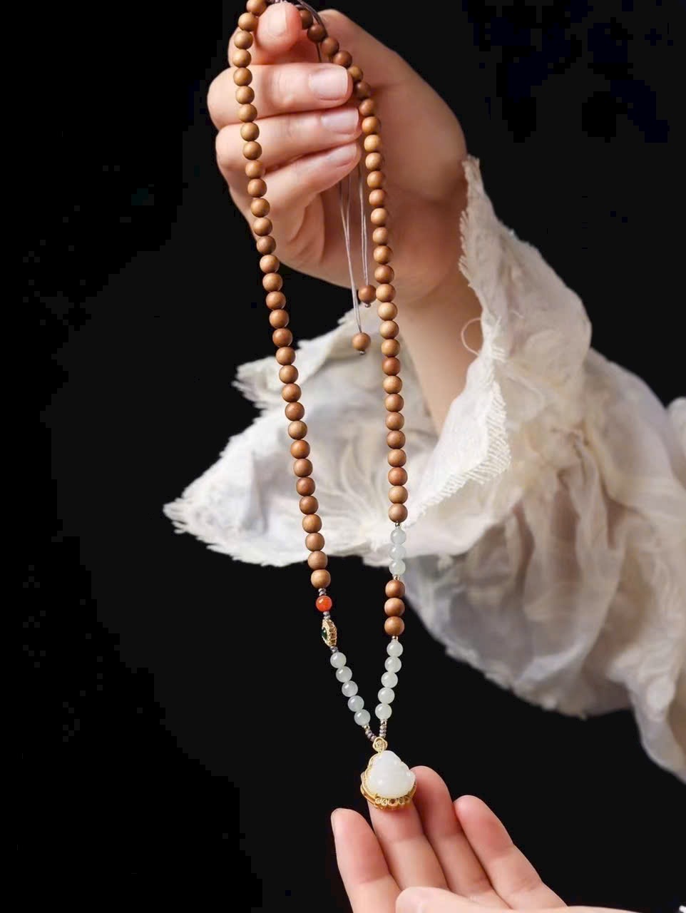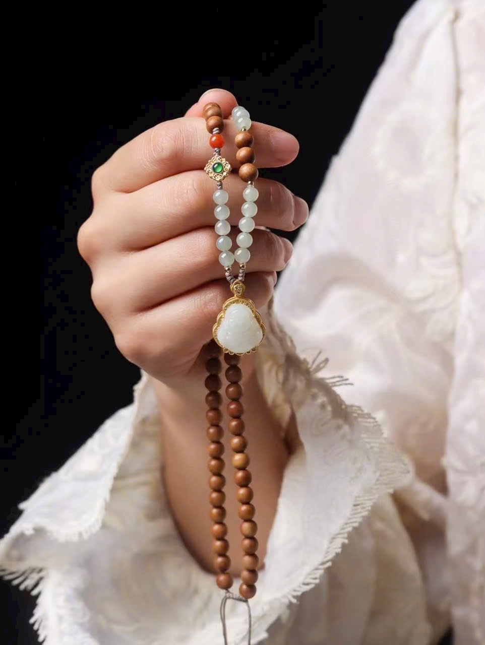 • Phụ kiện: nam hồng, ngọc Hòa Điền, bạc 925 mạ vàng