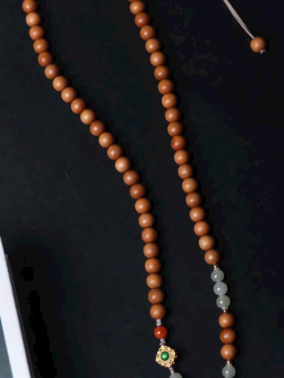 • Chất liệu: gỗ đàn hương lão sơn 0,6mm / 64 hạt
