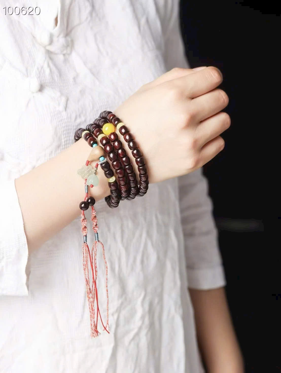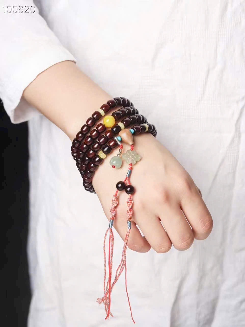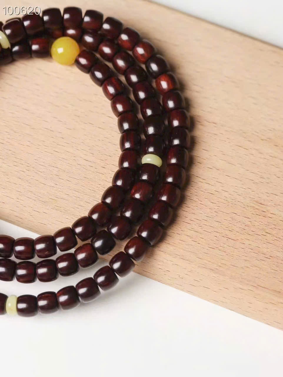 • Size: hạt cắt thẳng 7×8 + ngọc Hòa Điền + tam thông liền khối gỗ đàn hương + mã não vàng