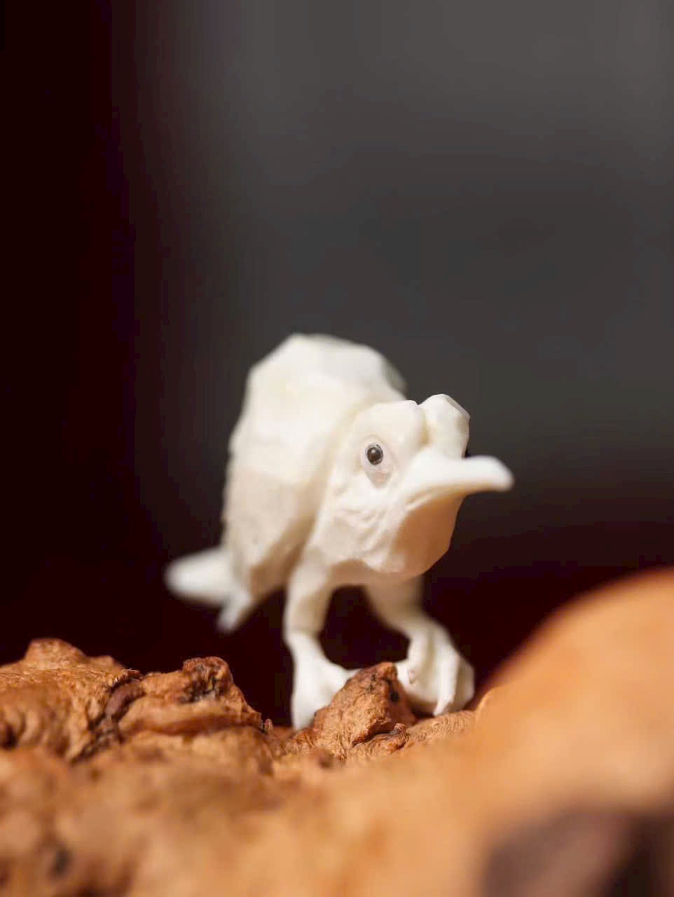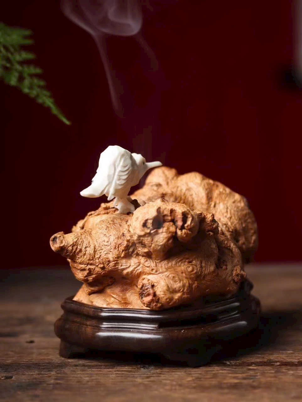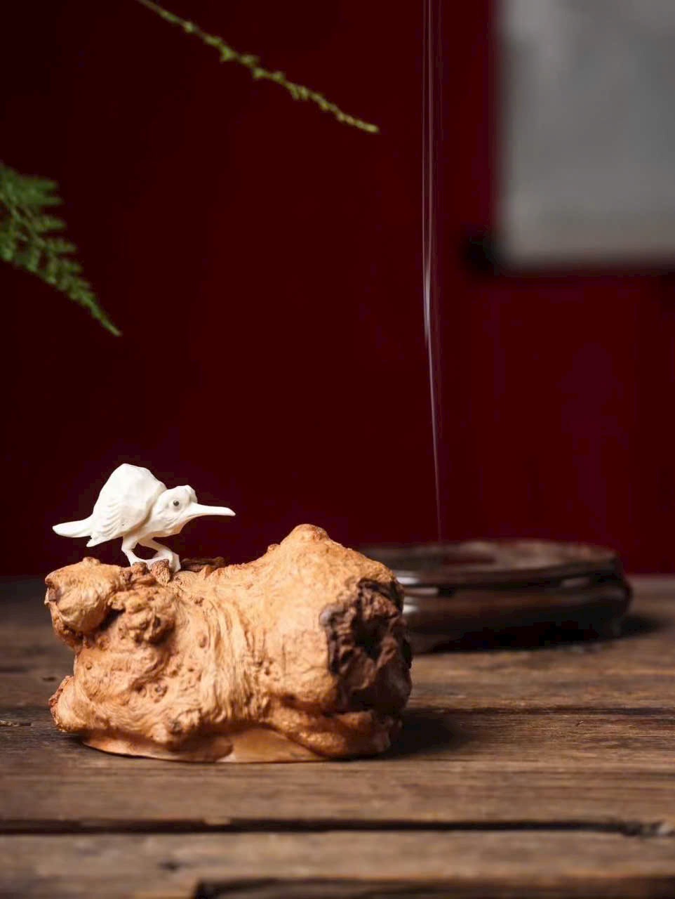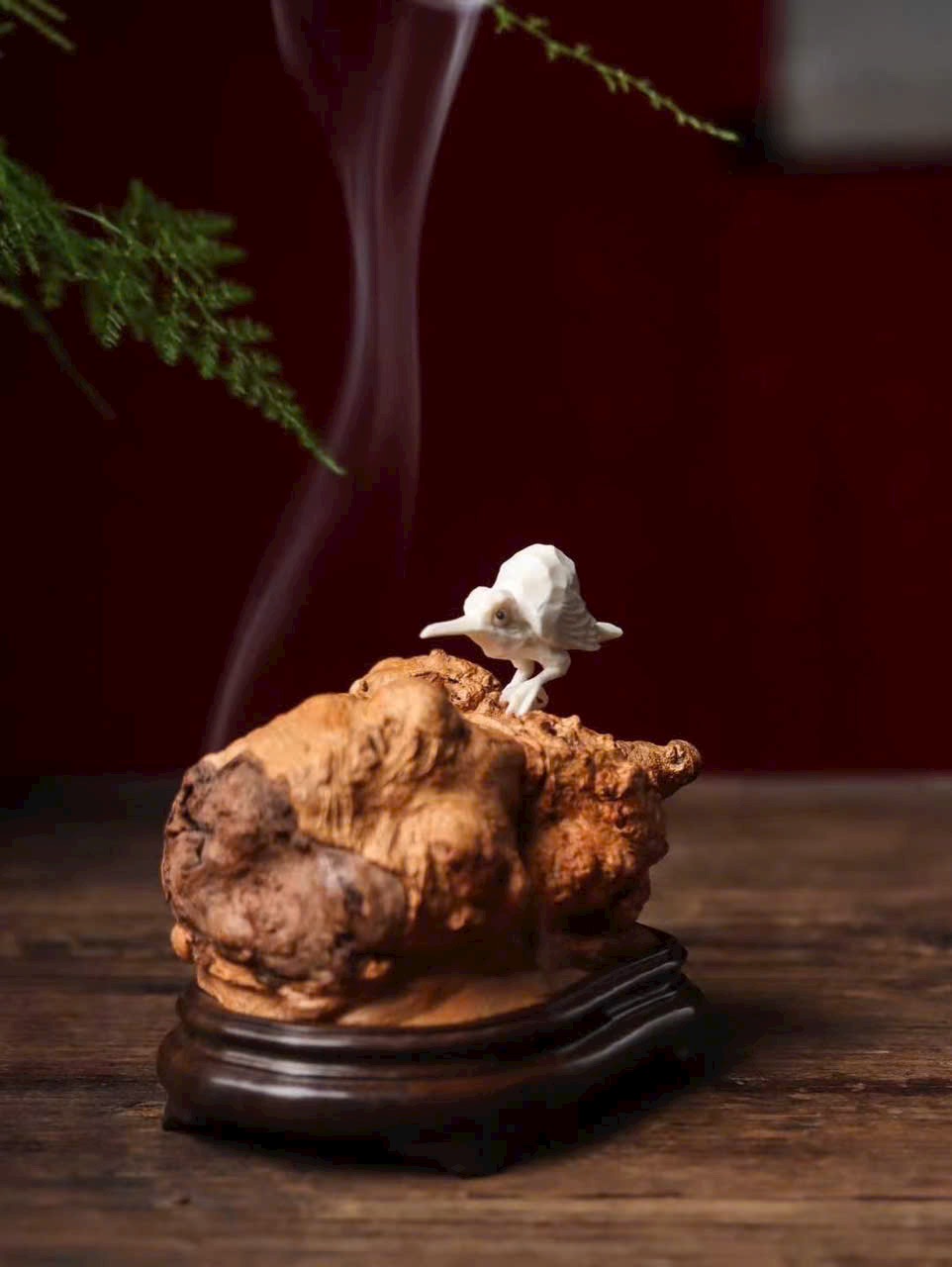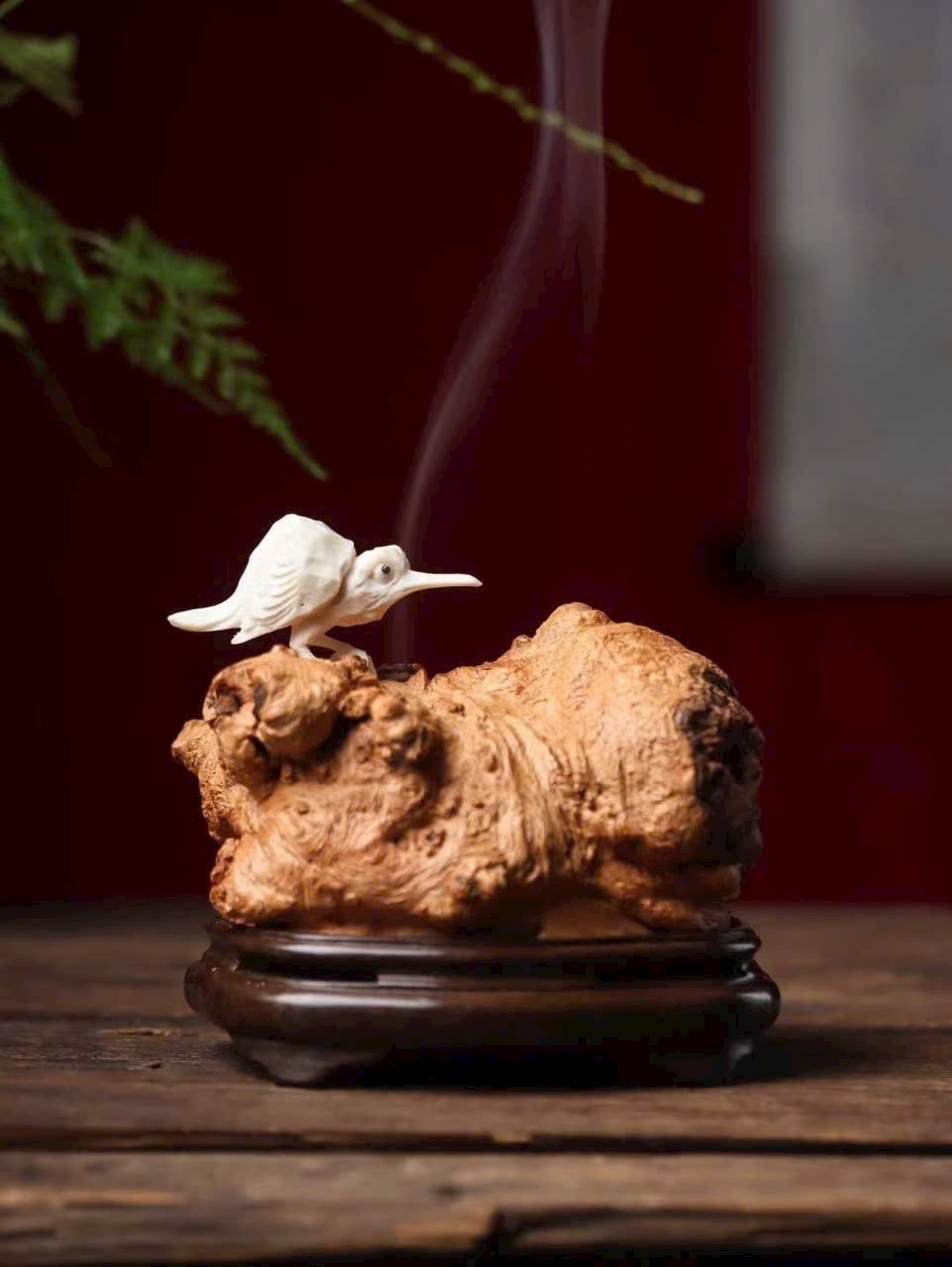Đề tài lấy cảm hứng từ tác phẩm của Bát Đại Sơn Nhân, áp dụng kỹ pháp chạm khắc lộc giác phóng khoáng, tùy vật mà thành. Kết hợp đế gỗ lệ chi
