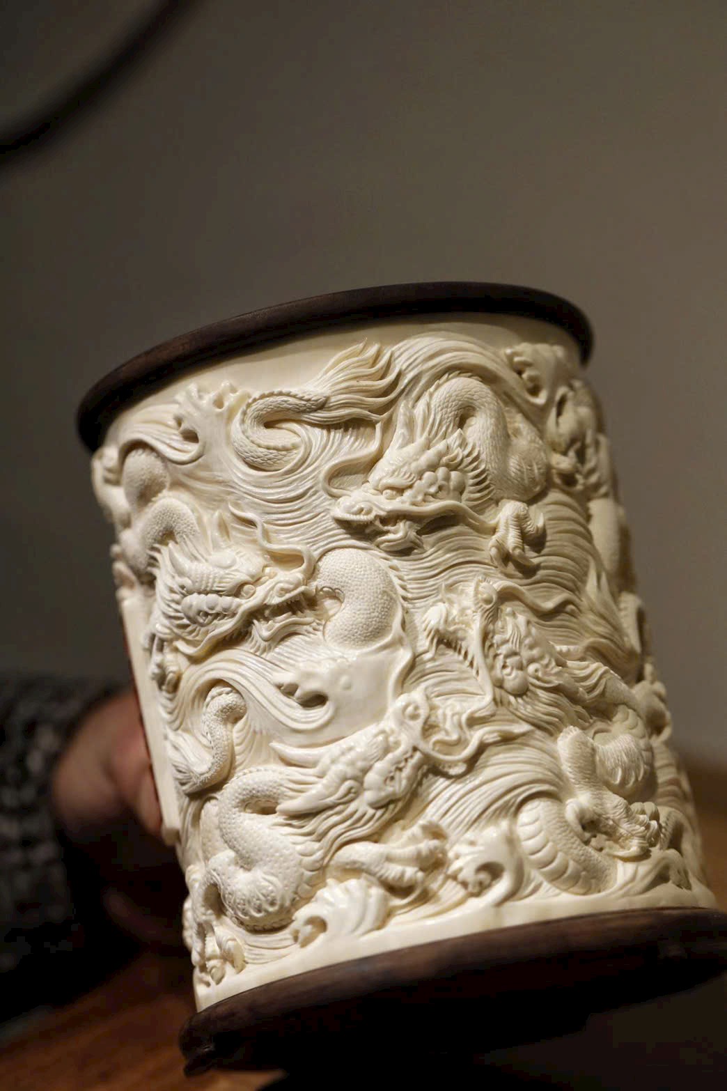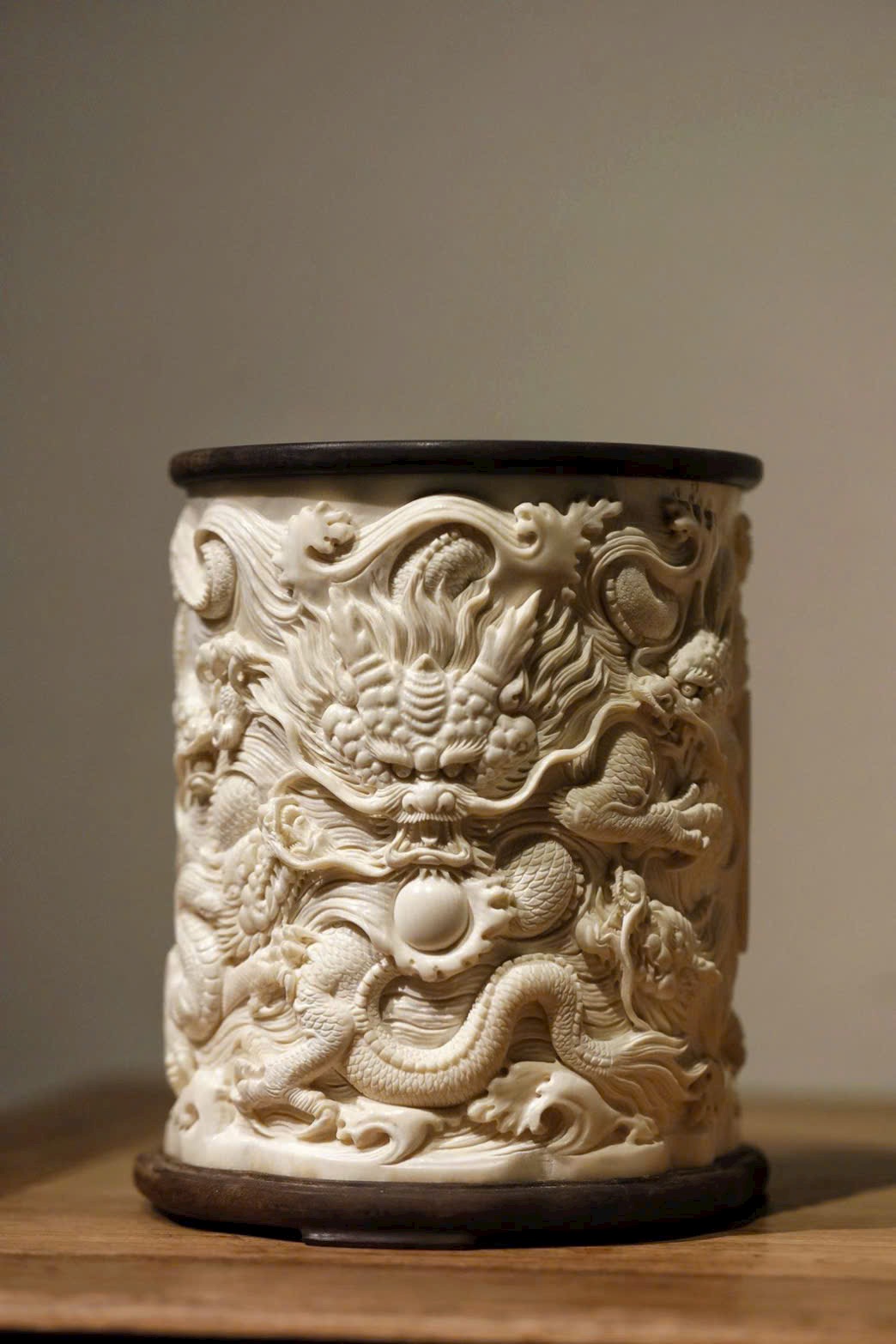 Mamut vạn năm “Cửu Long Hiến Thụy” – ống đựng bút