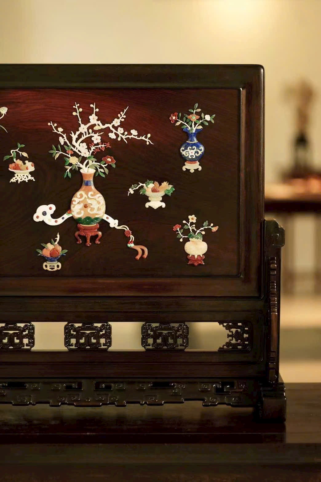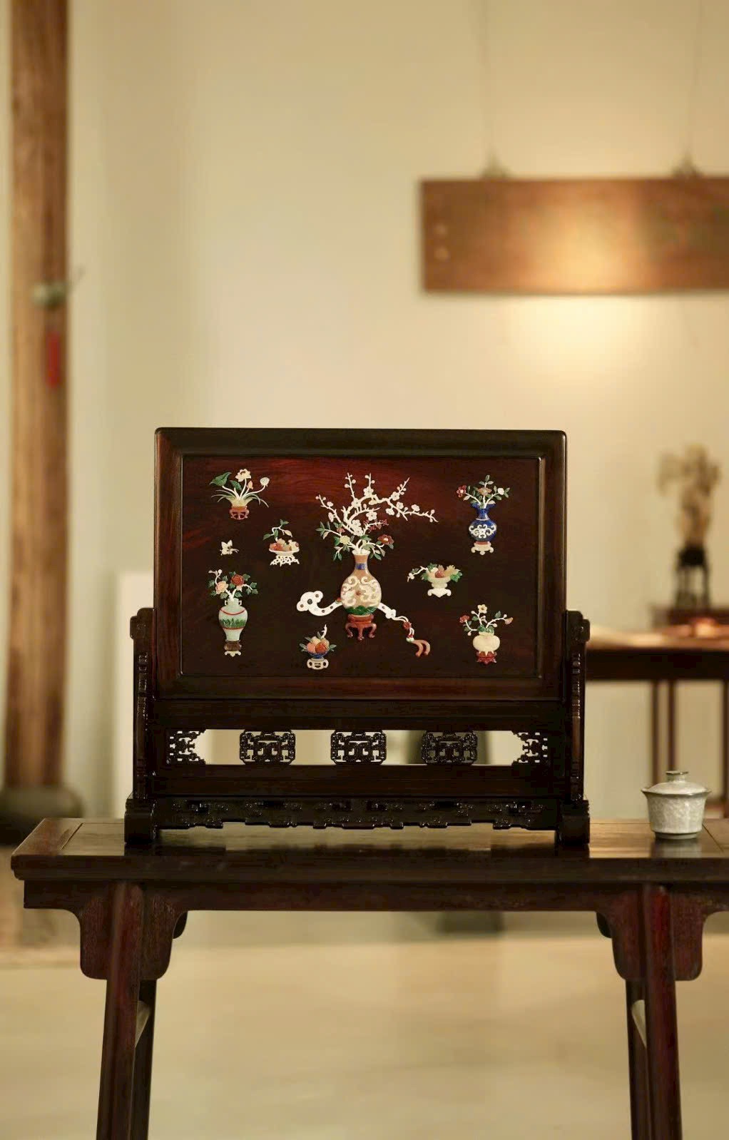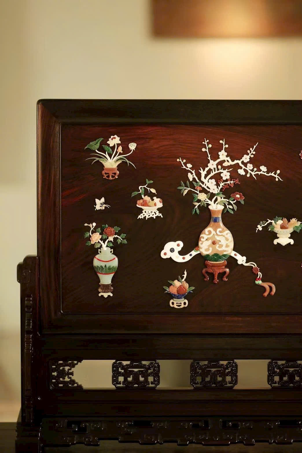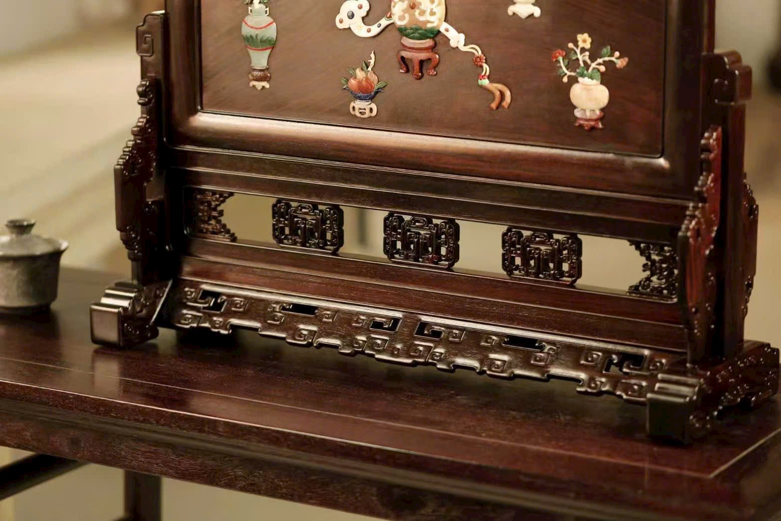 Gỗ Trắc đỏ × Khảm bách bảo · Đại bình phong “Thanh Cung Đồ”